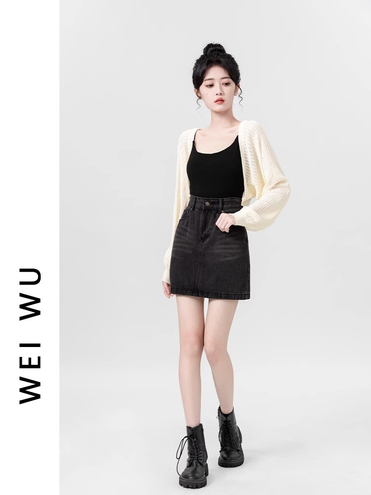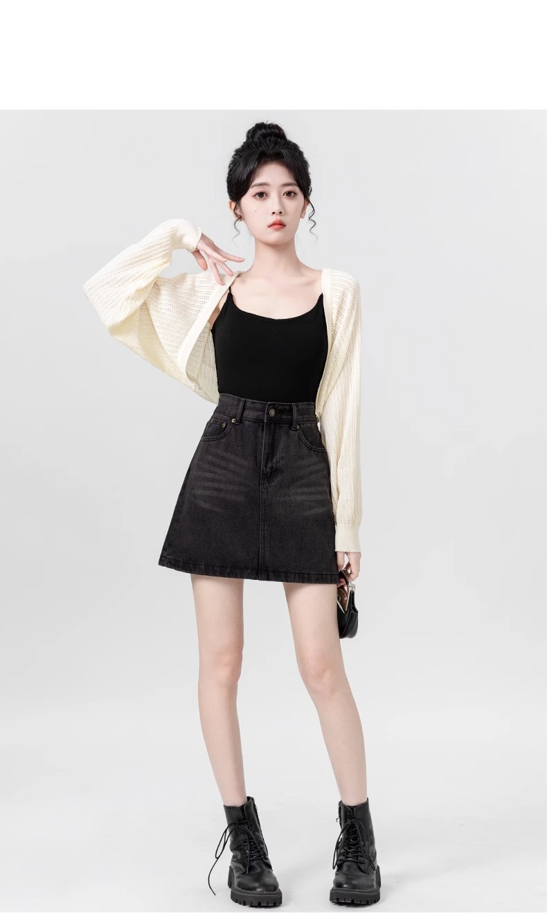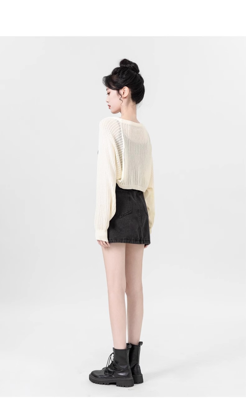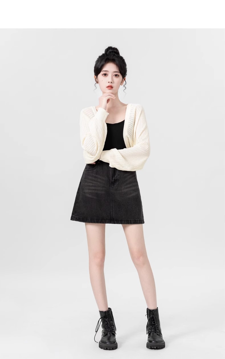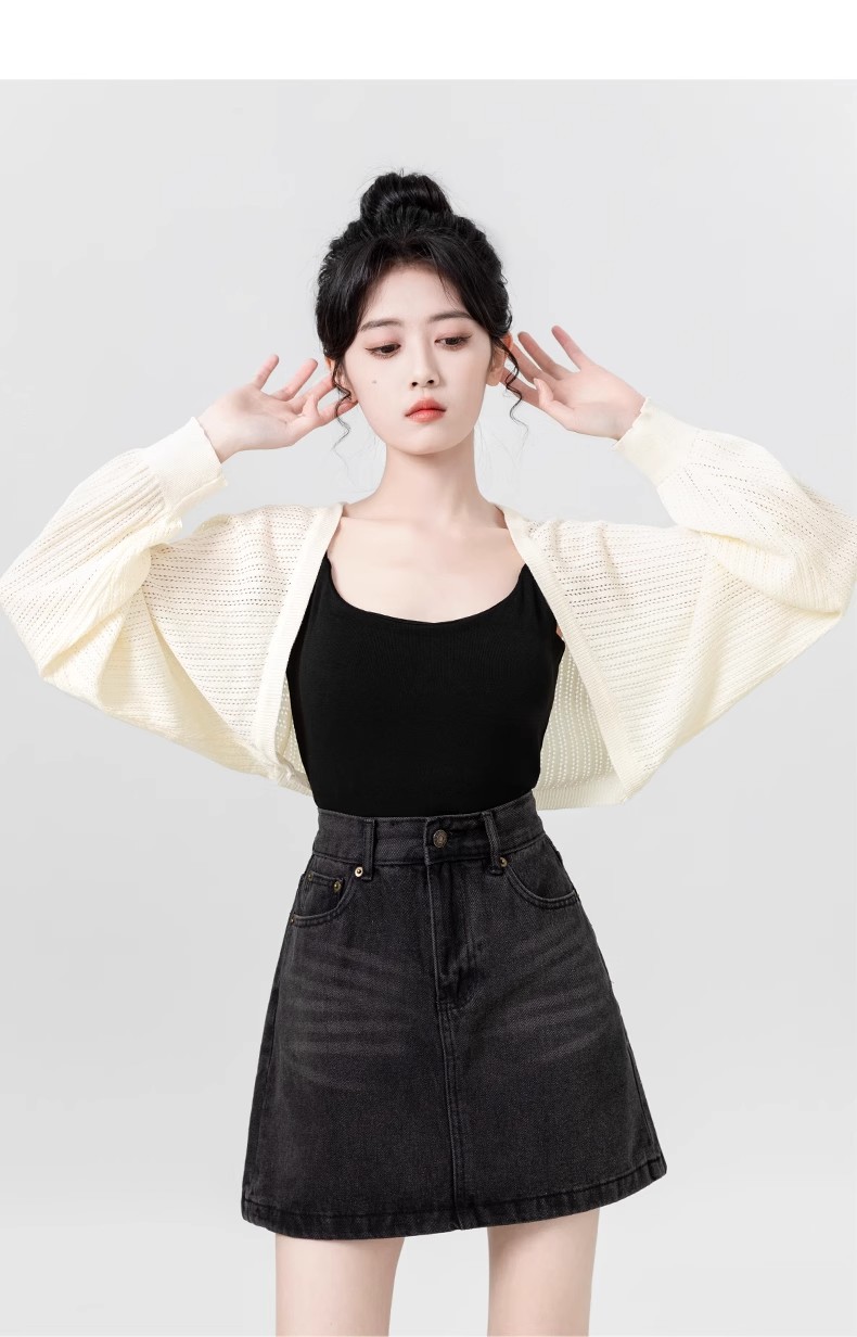 살구색 속이 비치는 긴팔 니트 가디건 여성용 여름 2026 신상품 자외선 차단 블라우스 탑 숏 스타일 조끼형 탑