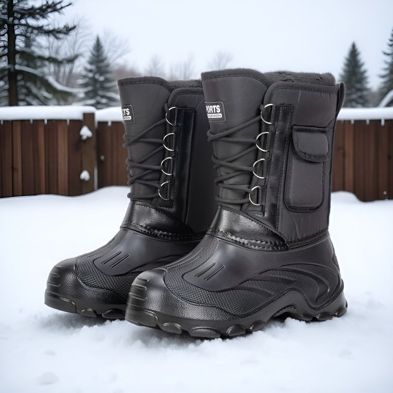 테무 인기 겨울 방수 남성용 아웃도어 작업용 스노우 부츠 낚시 방한 라이딩 하이탑 방한 낚시 부츠