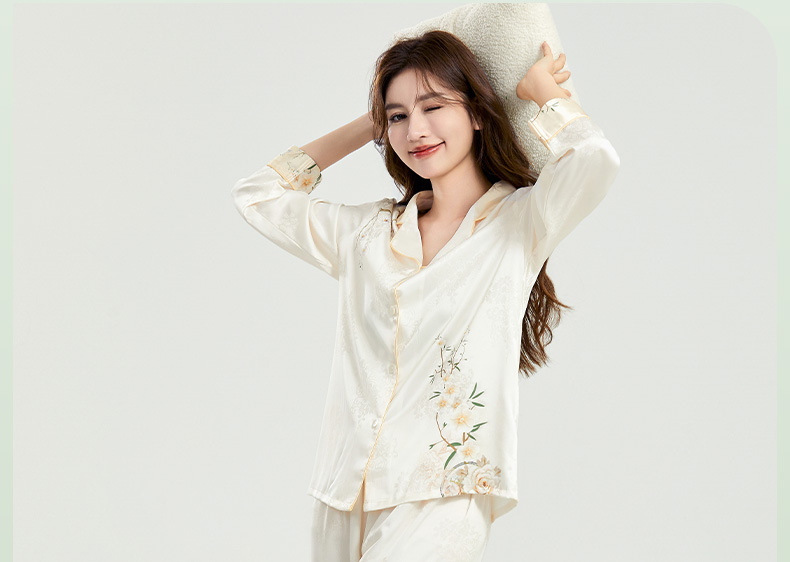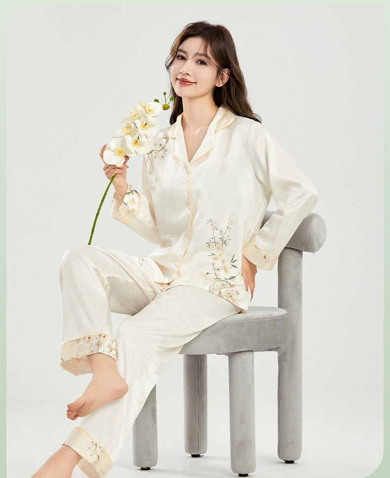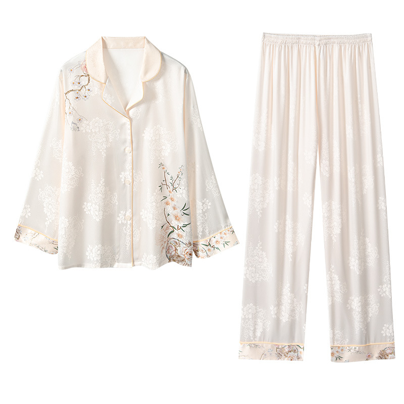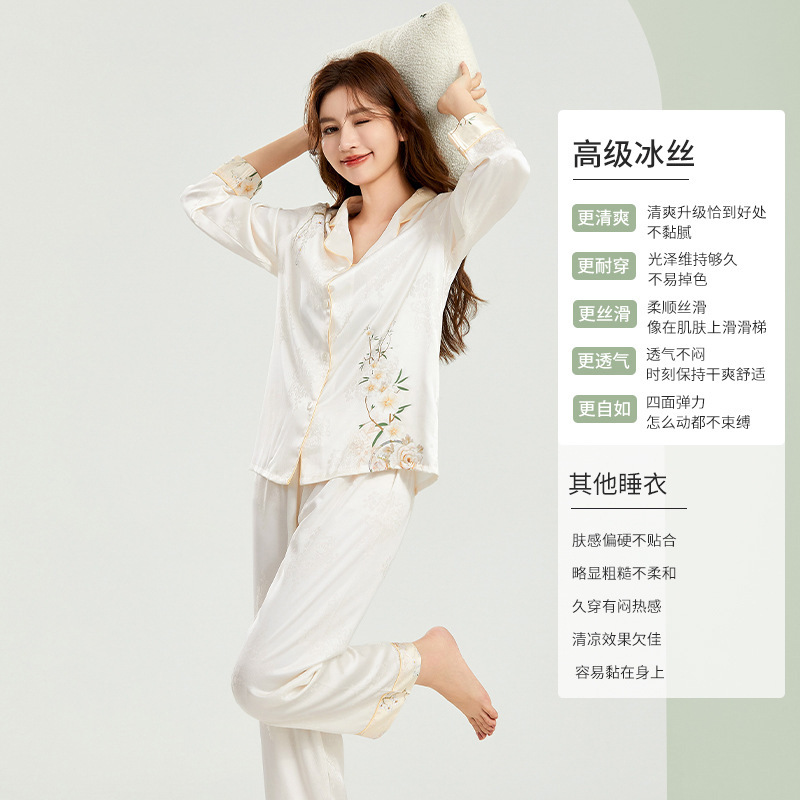 [자카드 실크] 여성을 위한 새로운 중국 스타일 아이스 실크 잠옷 여름 하이 엔드 라이트 럭셔리 봄 여름 홈웨어 여성을 위한 아내를 위한 선물
