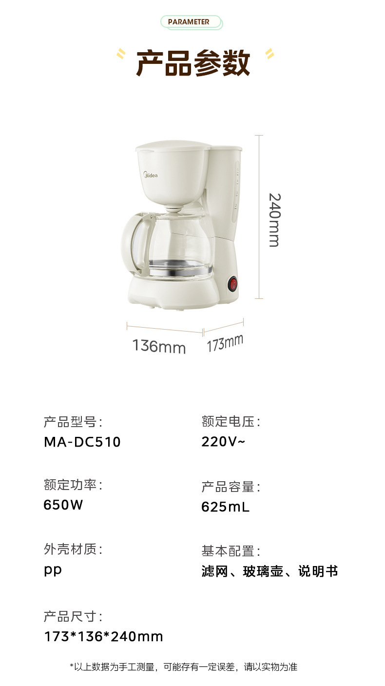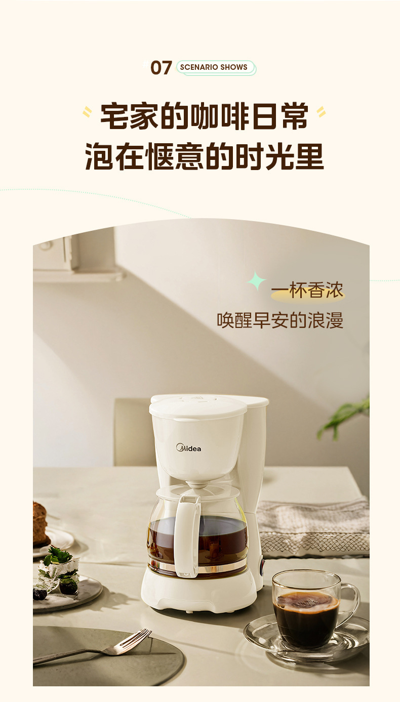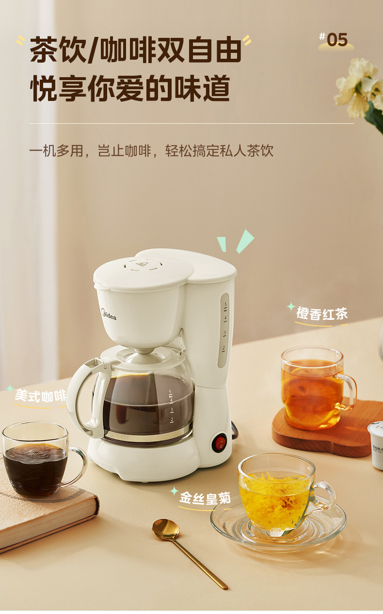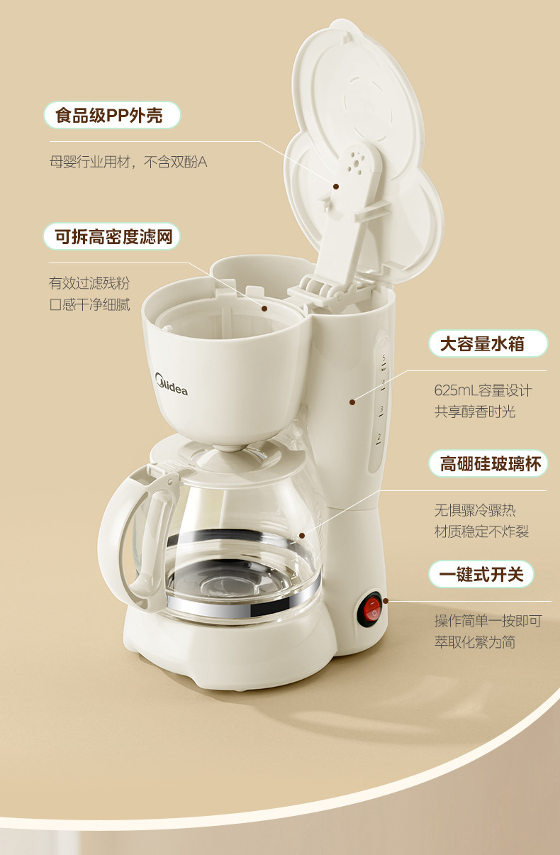 Midea 커피 머신 가정용 소형 드립 필터 드립 자동 사무실 차 메이커 끓는 냄비 차 카페 MA-DC510