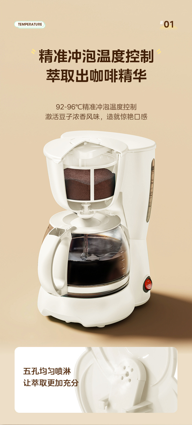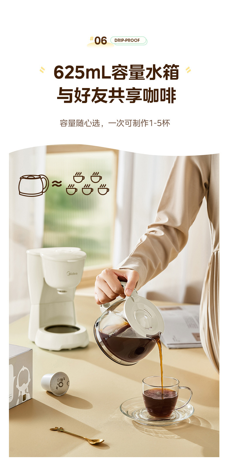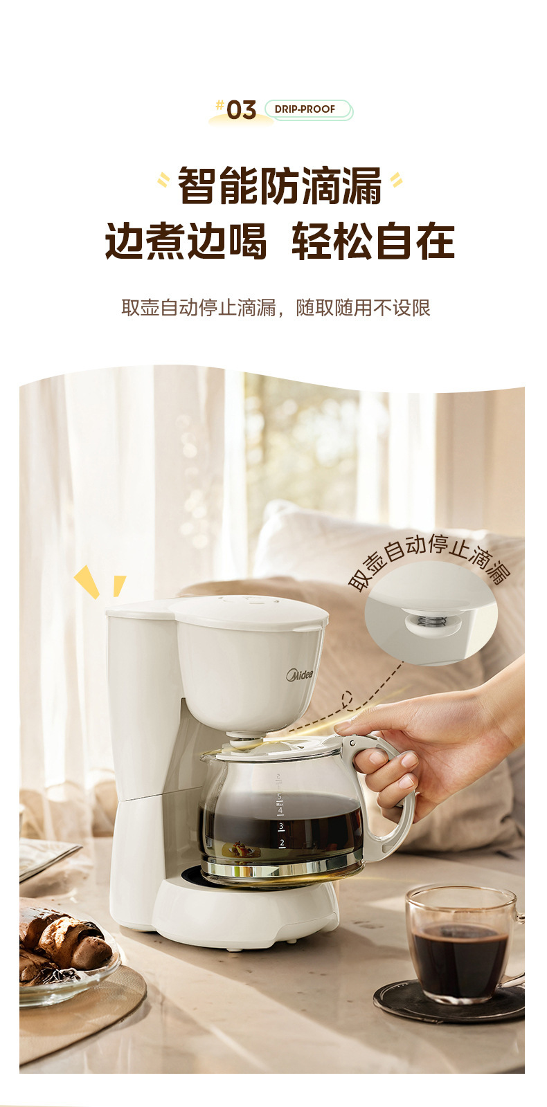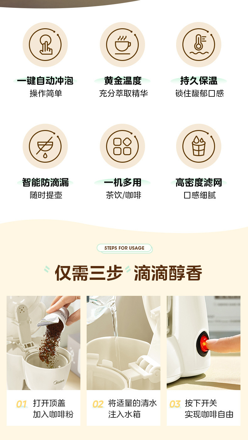 Midea 커피 머신 가정용 소형 드립 필터 드립 자동 사무실 차 메이커 끓는 냄비 차 카페 MA-DC510