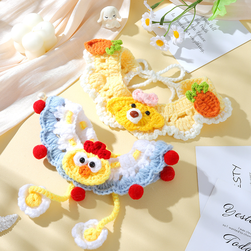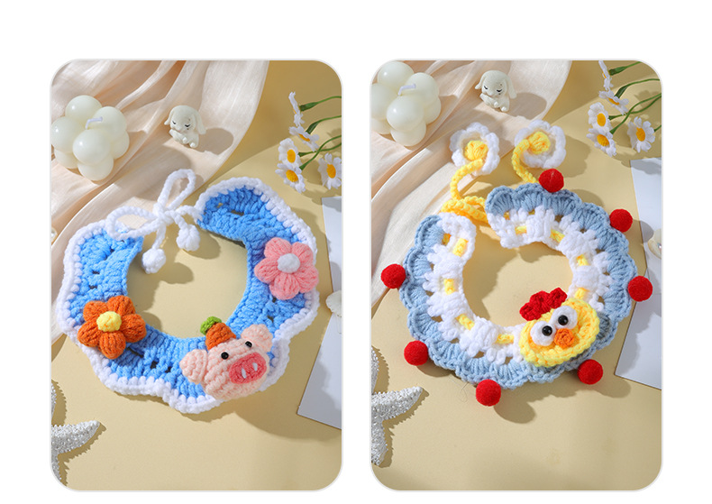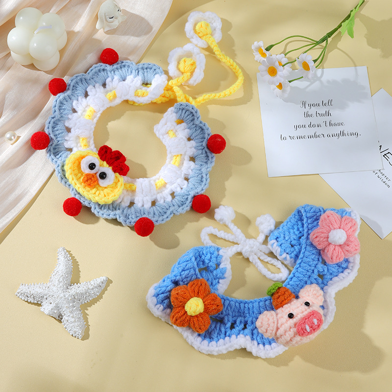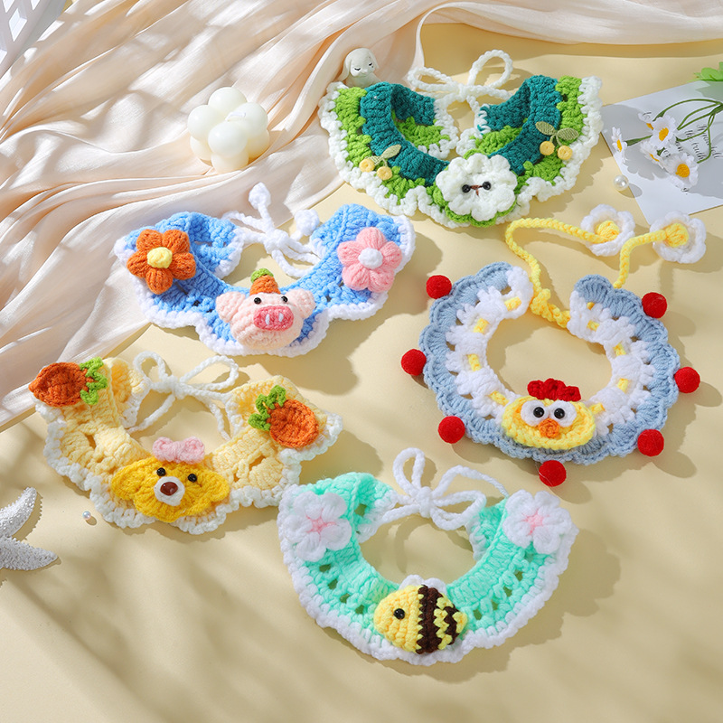 애완 동물 수제 니트 목걸이 고양이 양모 장식 칼라 니트 귀여운 개 턱받이 턱받이 입 사이퍼