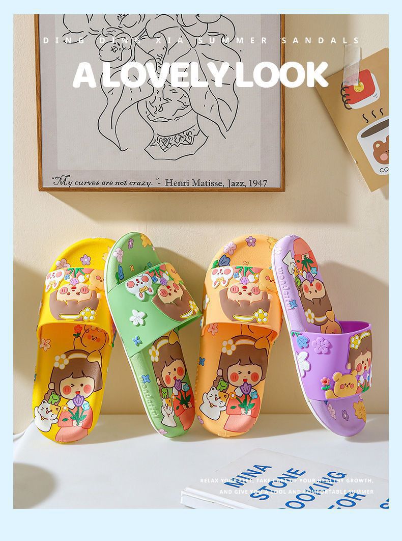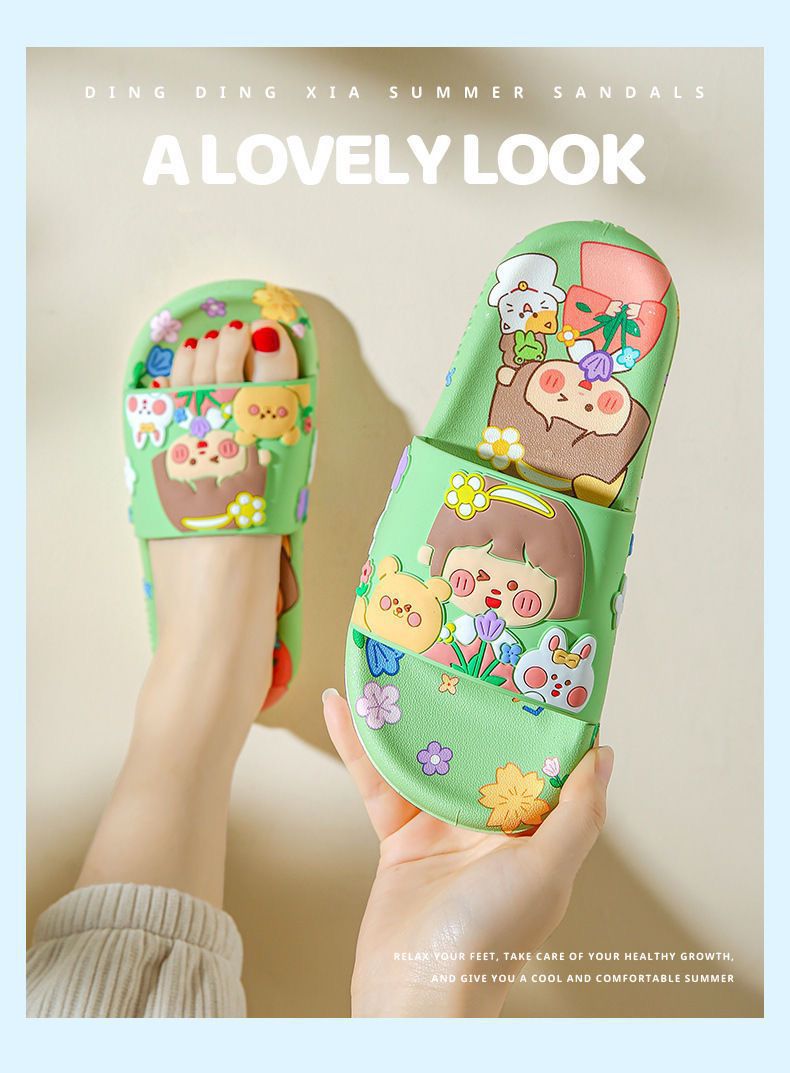 슬리퍼 여성의 여름 외부 착용 귀여운 만화 욕실 홈 목욕 미끄럼 방지 새로운 귀여운 요정 샌들과 슬리퍼