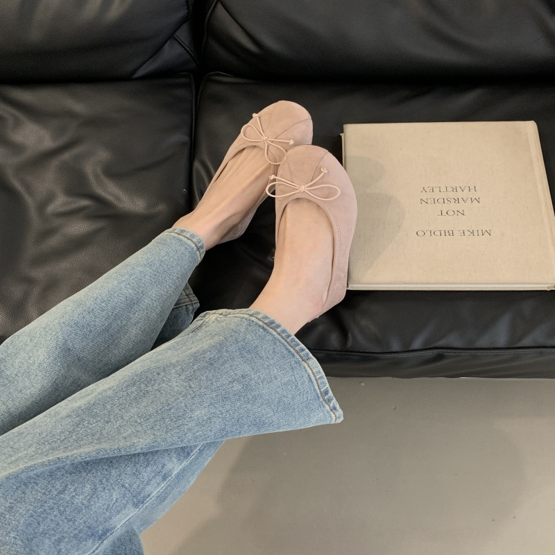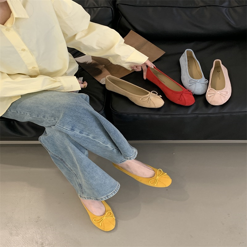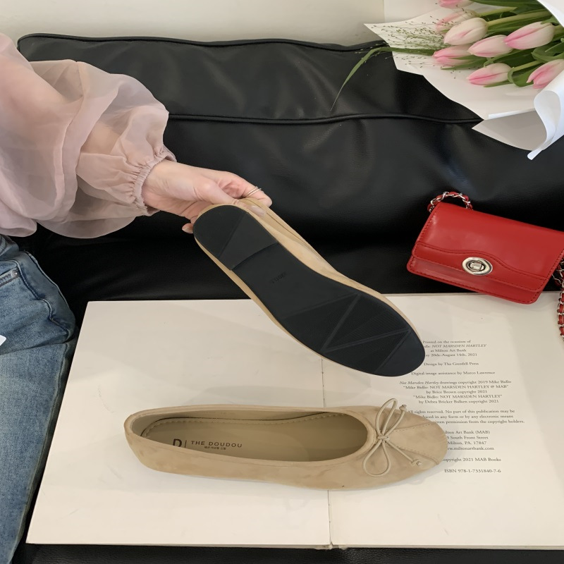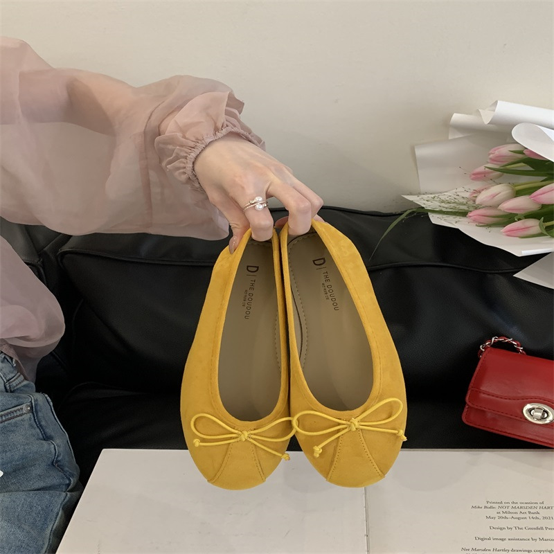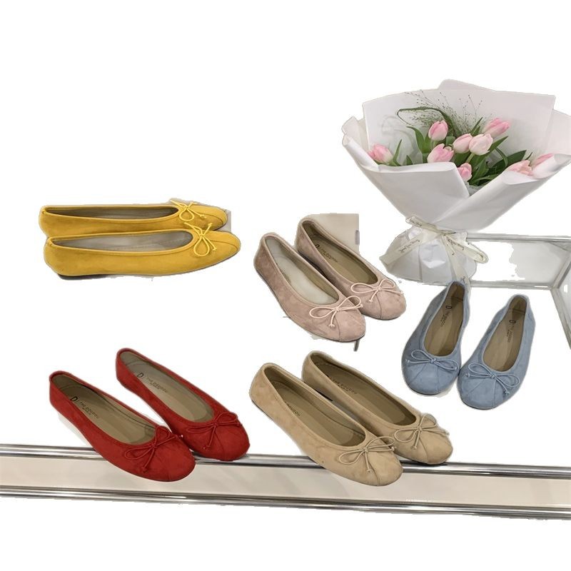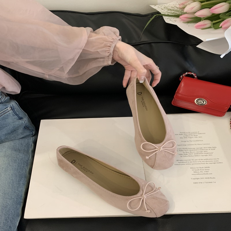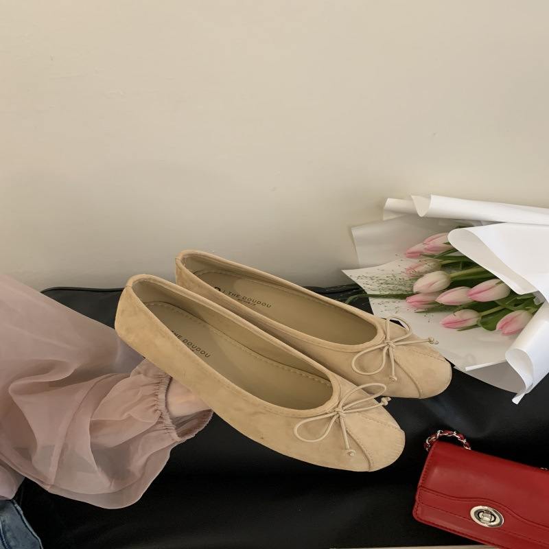 의상 2025 봄 새로운 부드러운 스타일 얕은 입 플랫 신발 프랑스 레트로 활 발레 신발