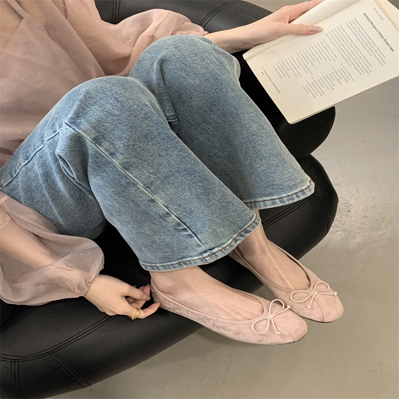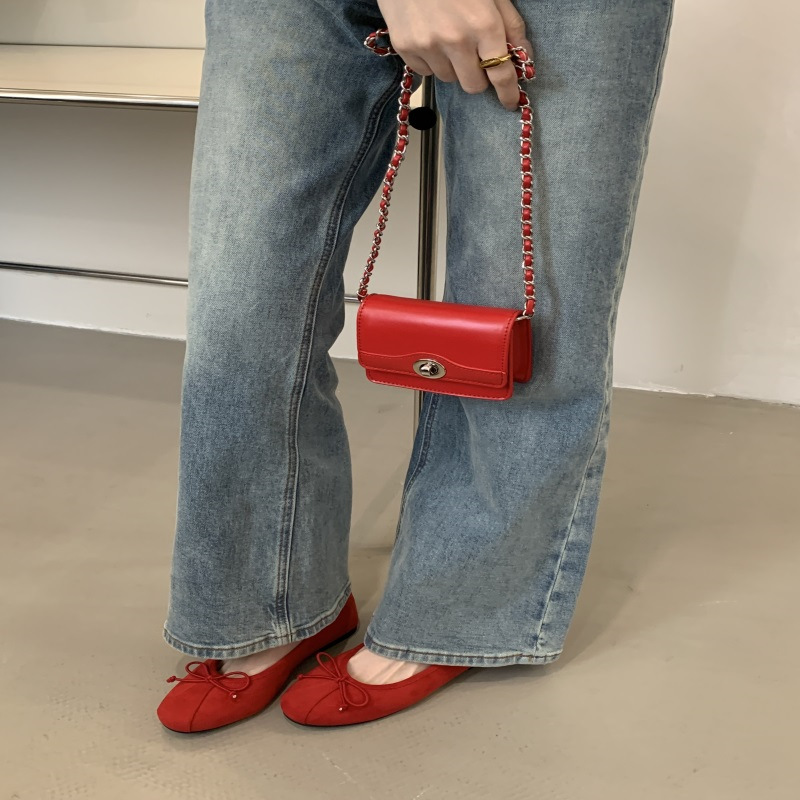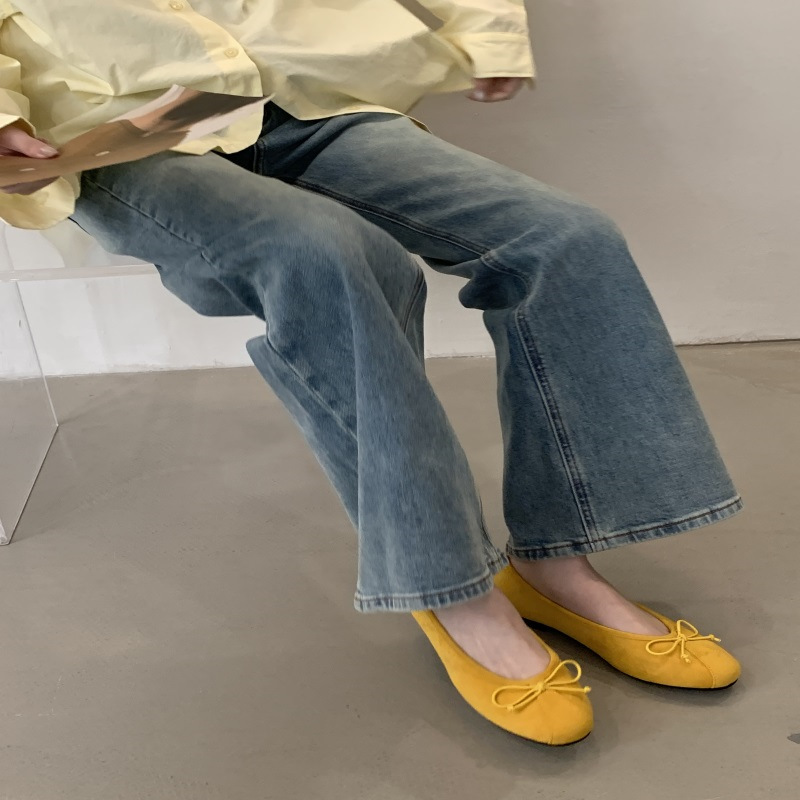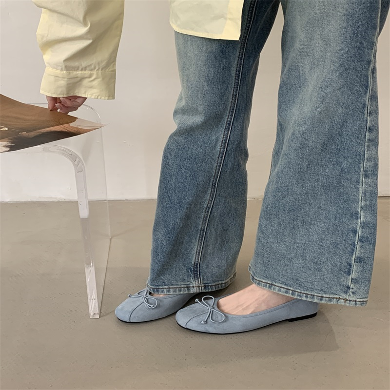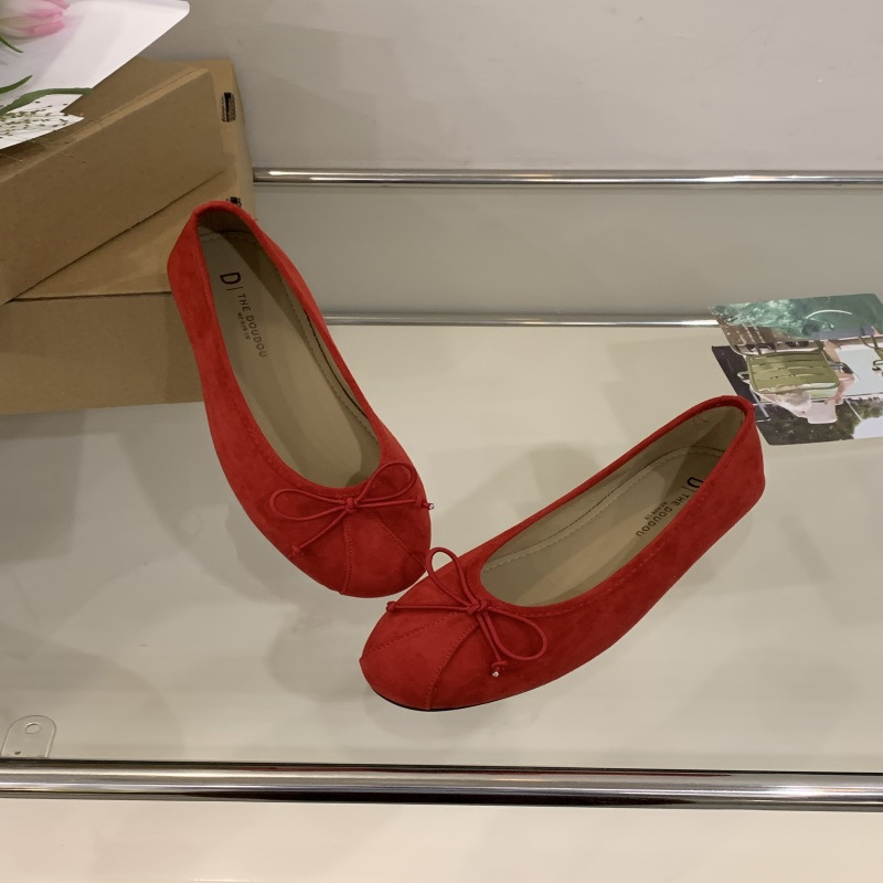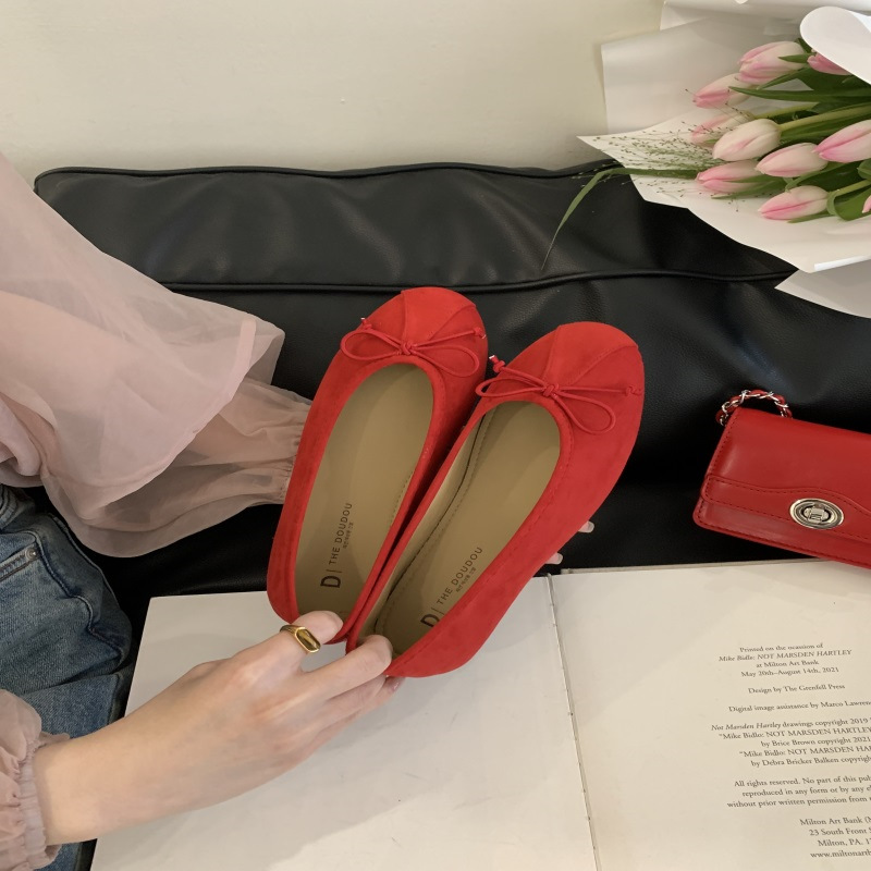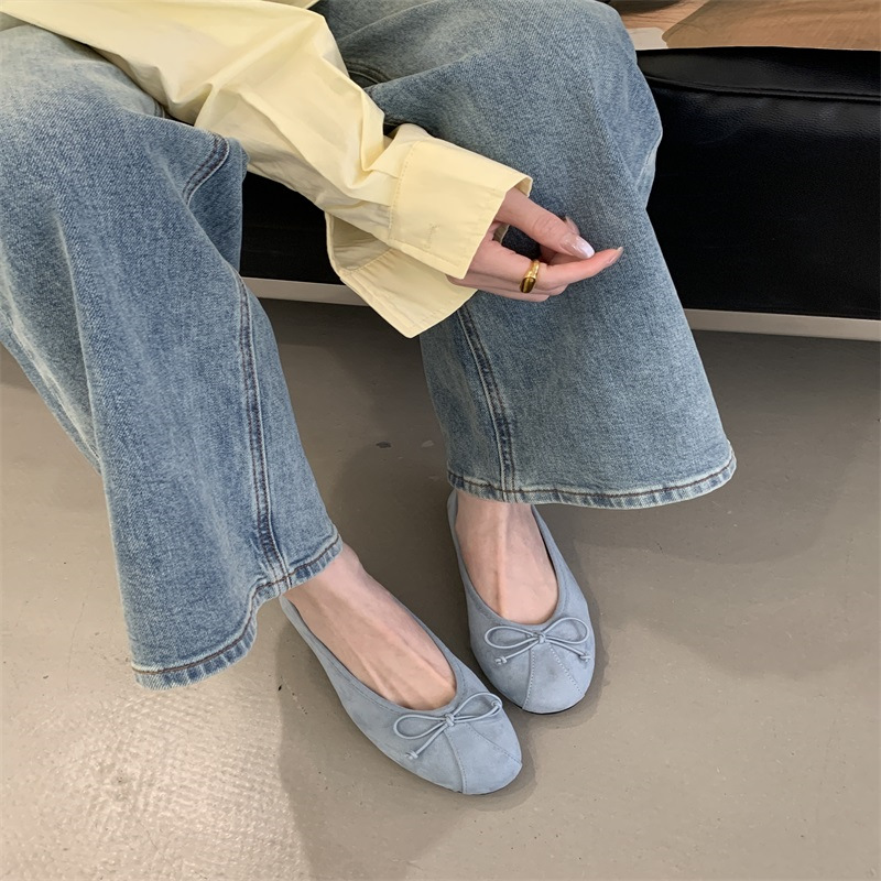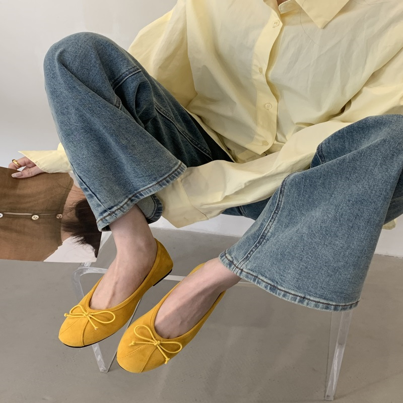 의상 2025 봄 새로운 부드러운 스타일 얕은 입 플랫 신발 프랑스 레트로 활 발레 신발
