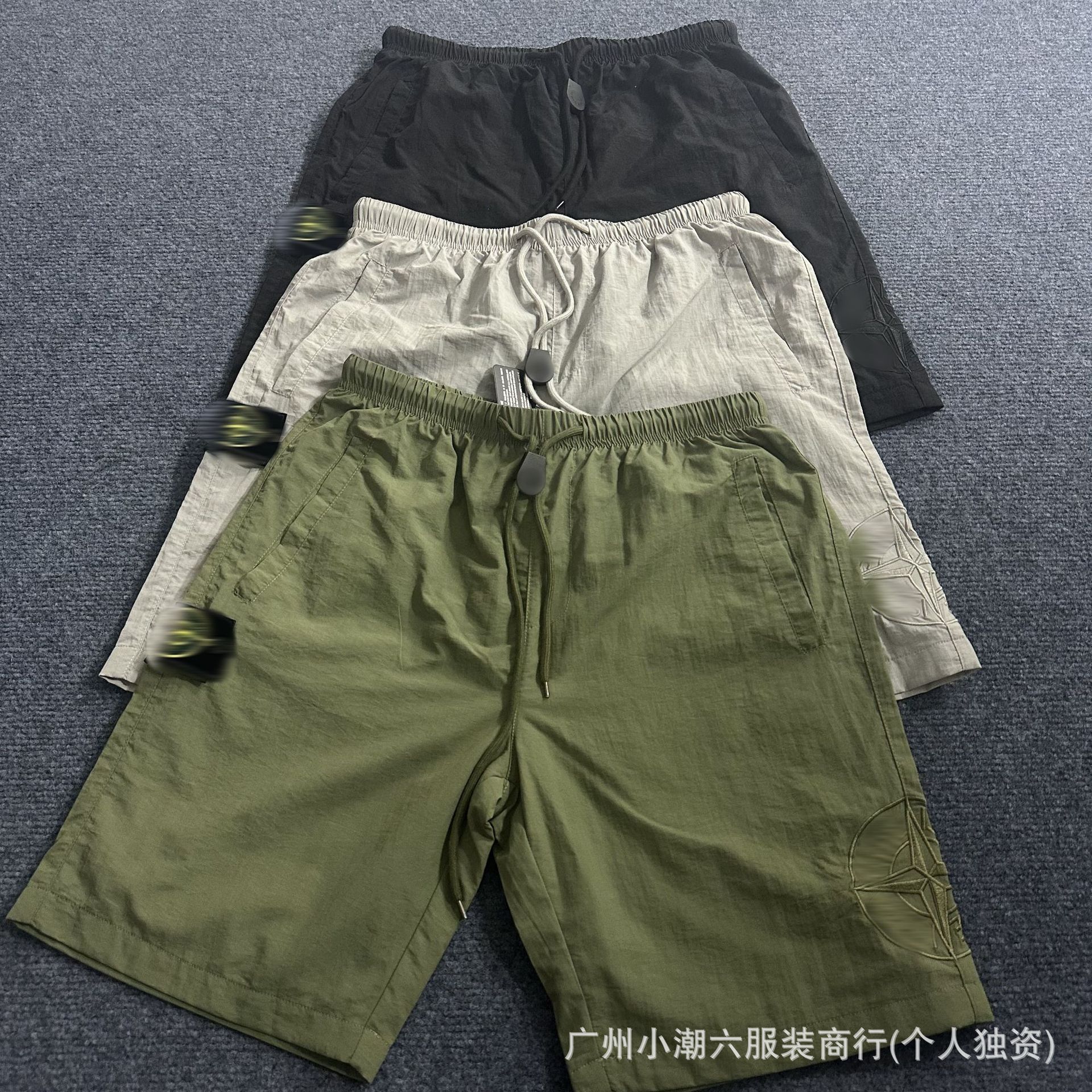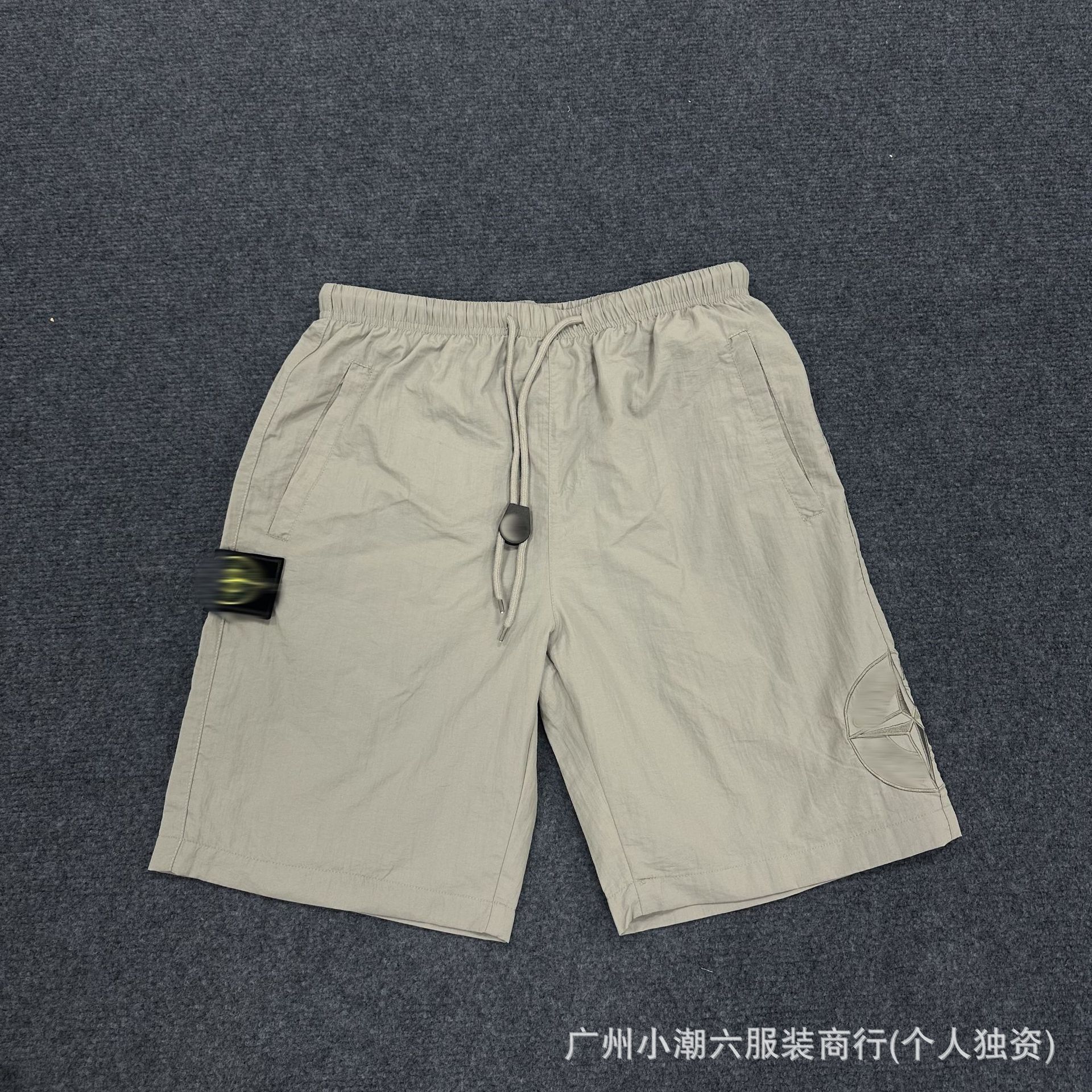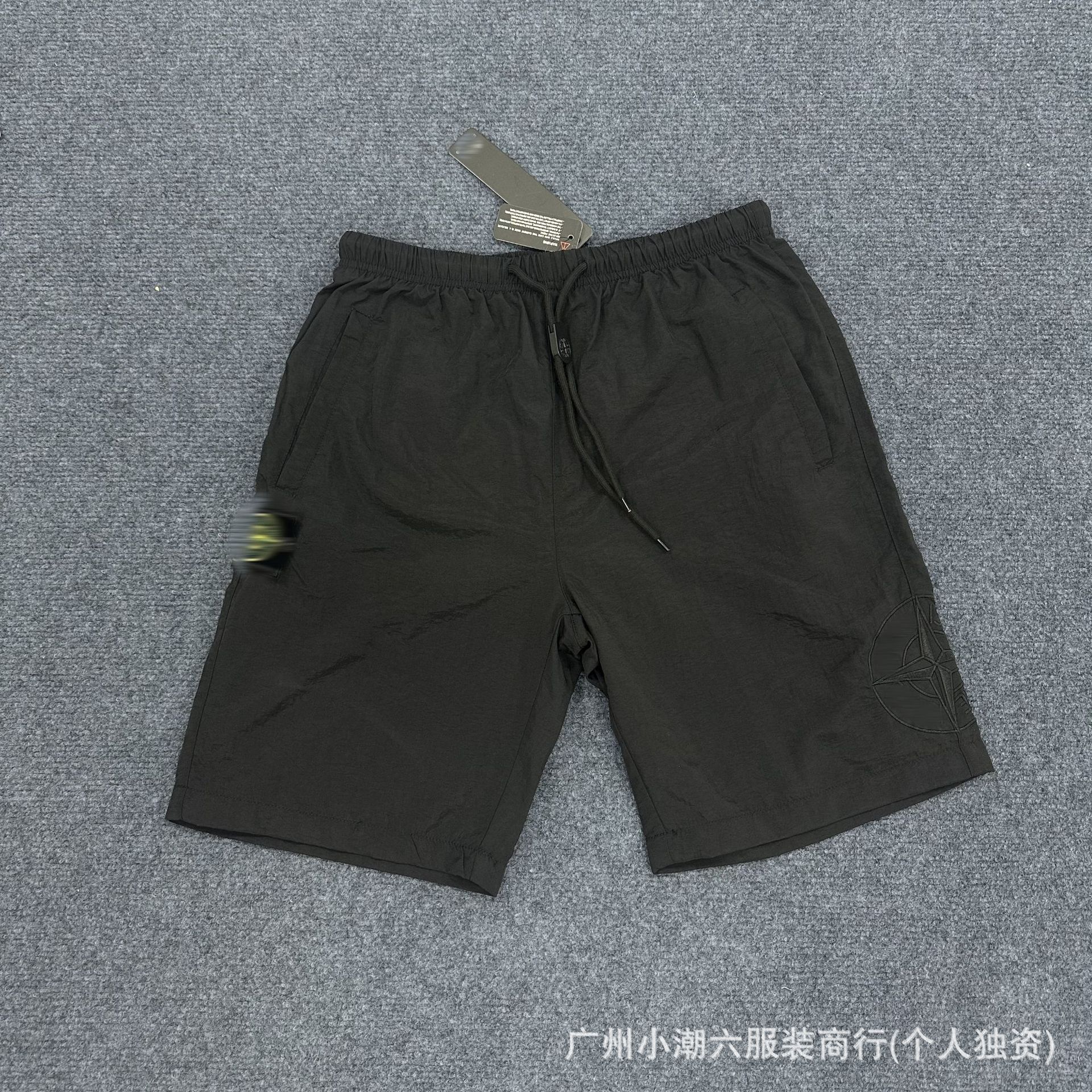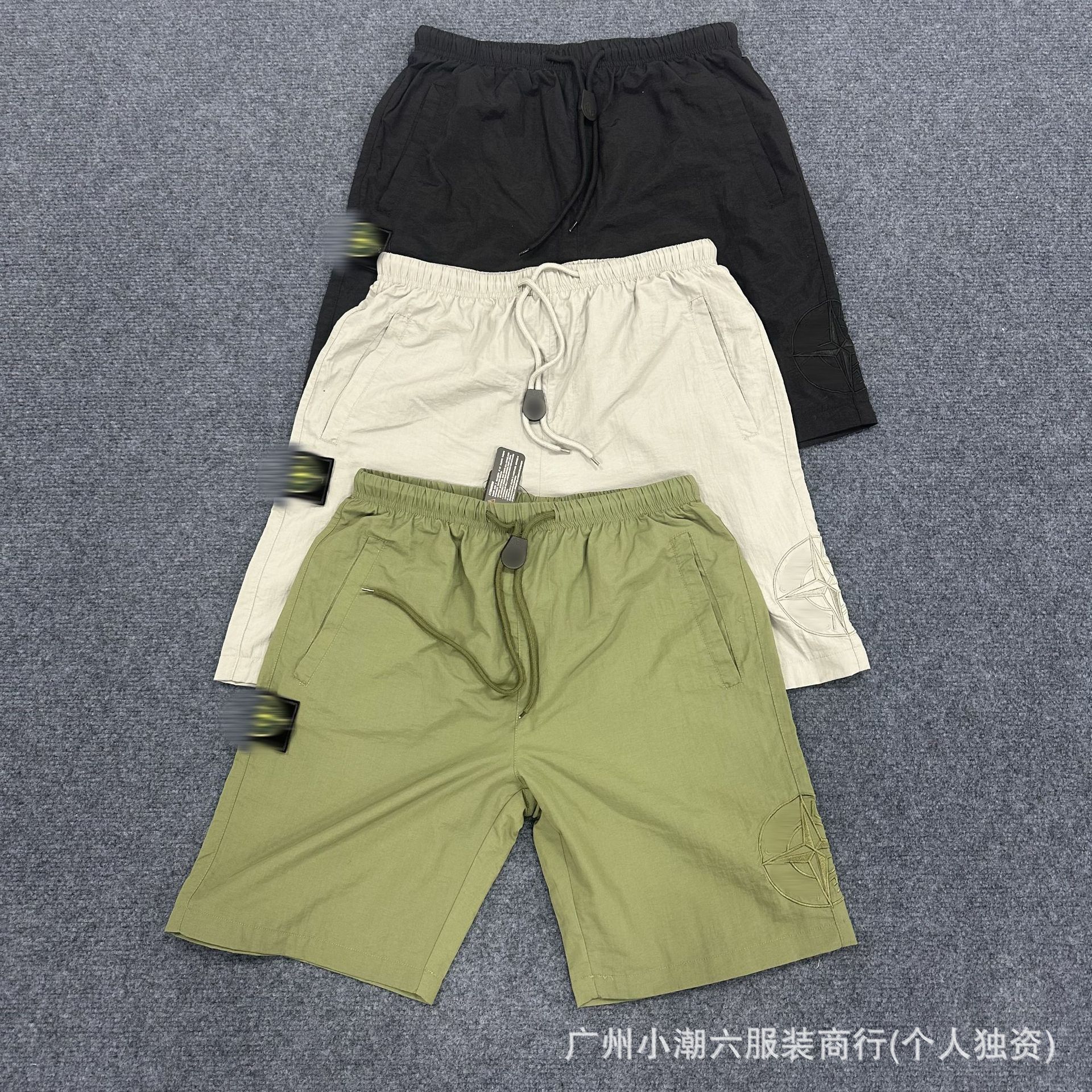 국경 간 공급 ST 스톤 홈 자수 Frock 반바지 남성 배지 컴퍼스 솔리드 컬러 데일리 드로우 스트링 하이 스트리트 바지