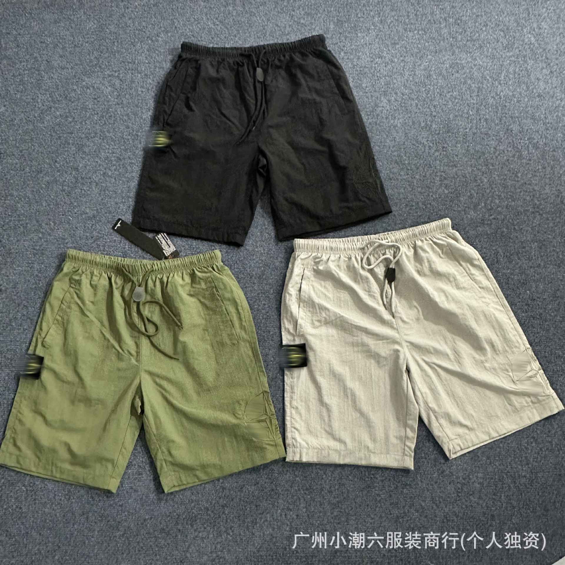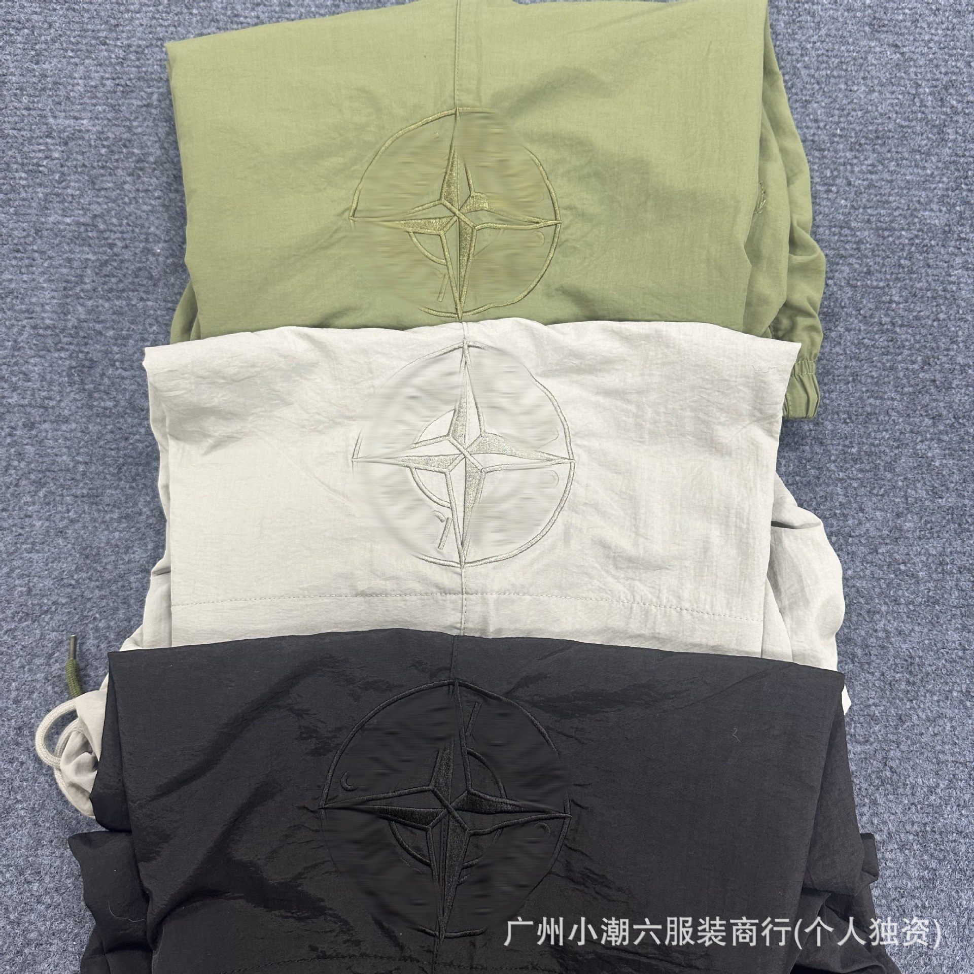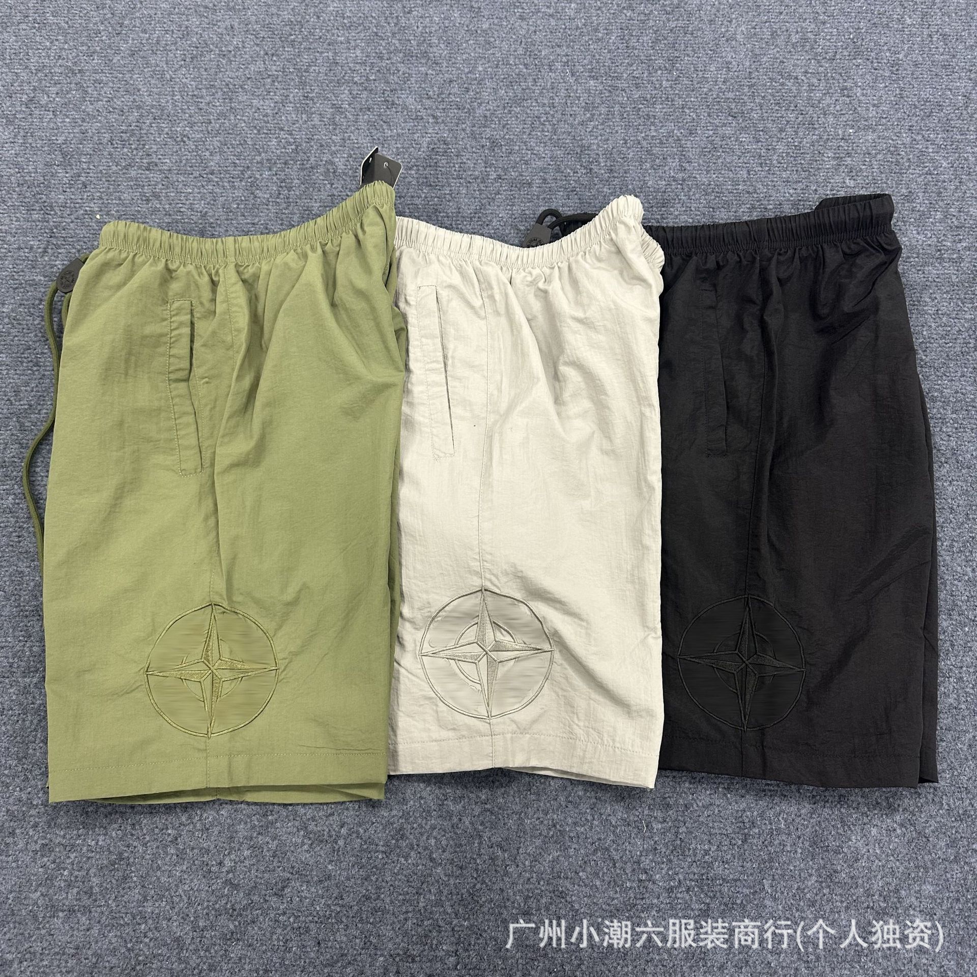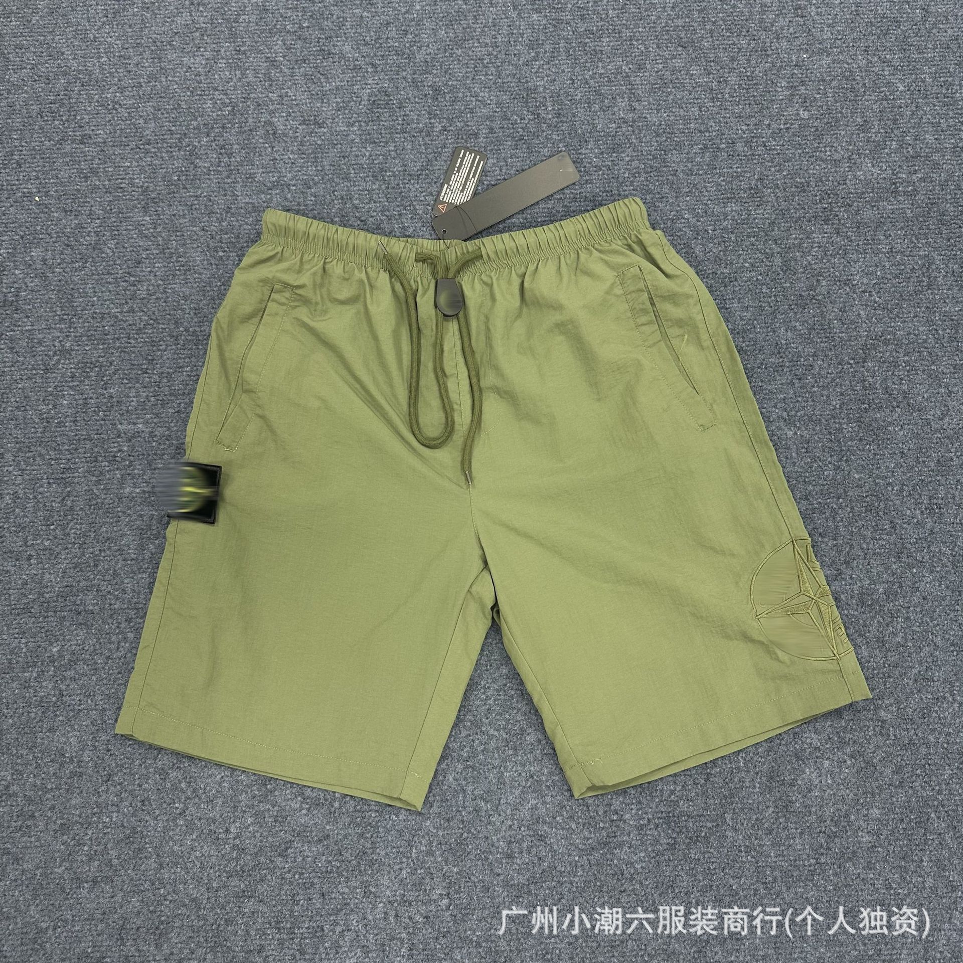 국경 간 공급 ST 스톤 홈 자수 Frock 반바지 남성 배지 컴퍼스 솔리드 컬러 데일리 드로우 스트링 하이 스트리트 바지