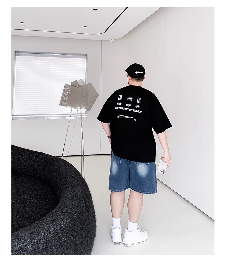여름 느슨한 반소매 티셔츠 남성용 아메리칸 스타일 트렌디 브랜드 심플 디자인 캐주얼 올 매치 코튼 라운드 넥 반소매 탑