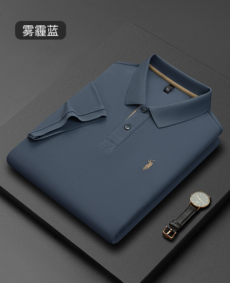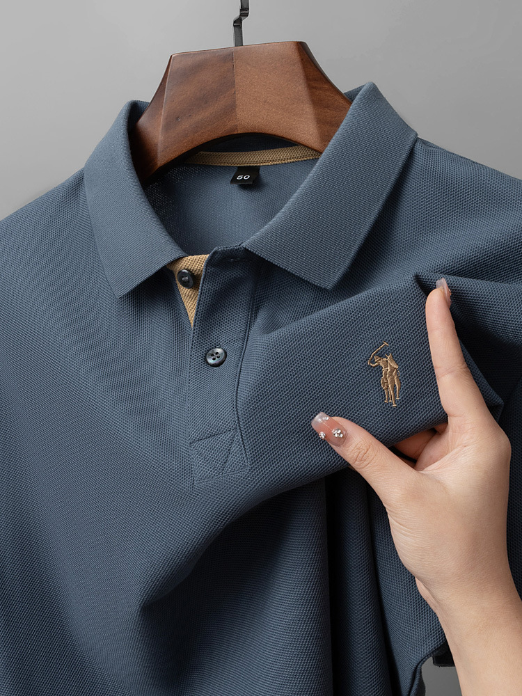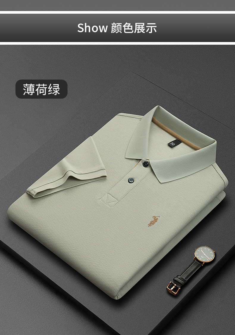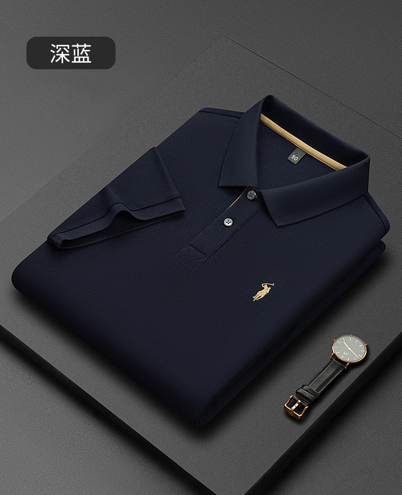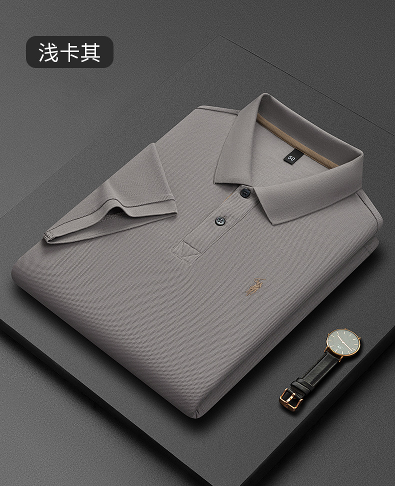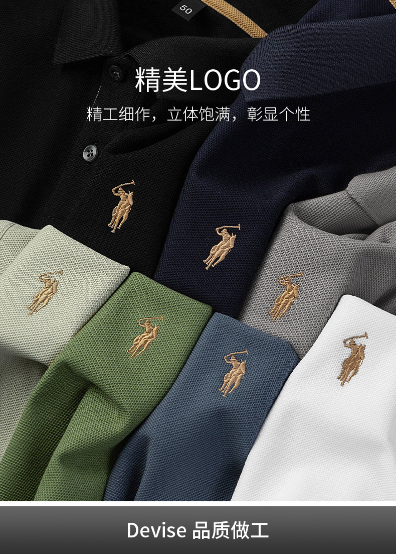 220g 육각형 비즈 머서라이즈 코튼 라펠 반팔 폴로 셔츠 남성용 하이 엔드 폴로 자수 폴로 셔츠 남성용