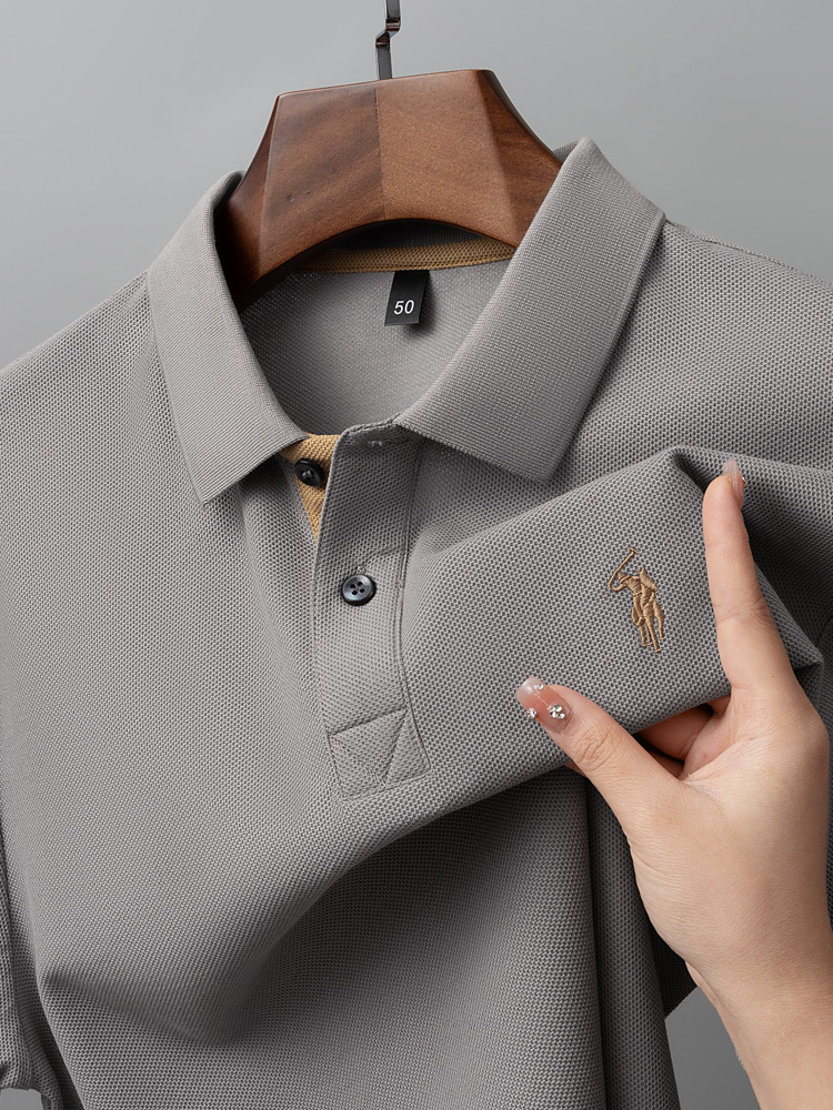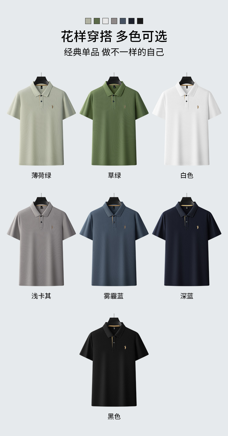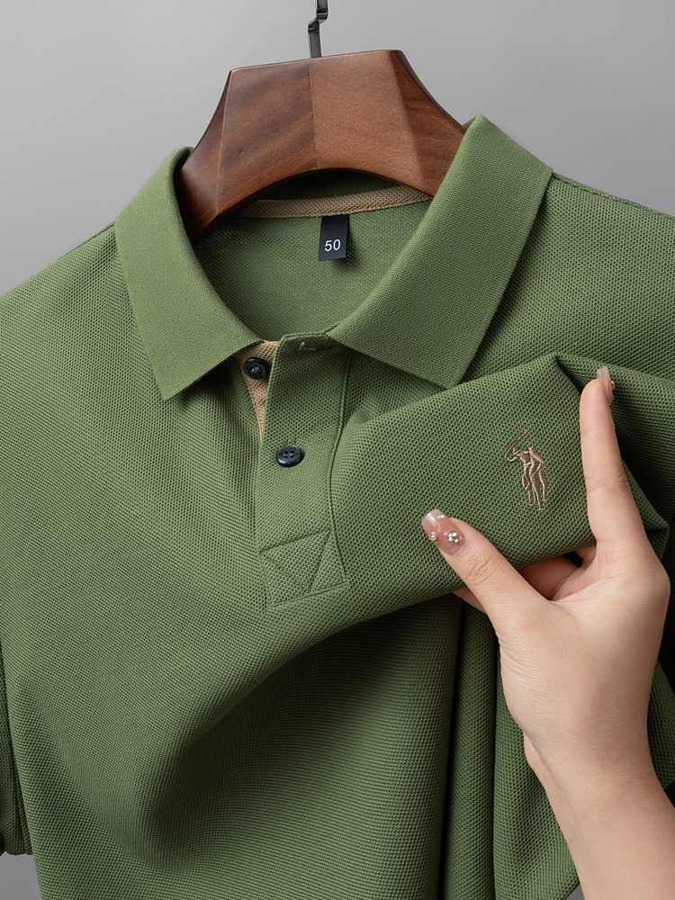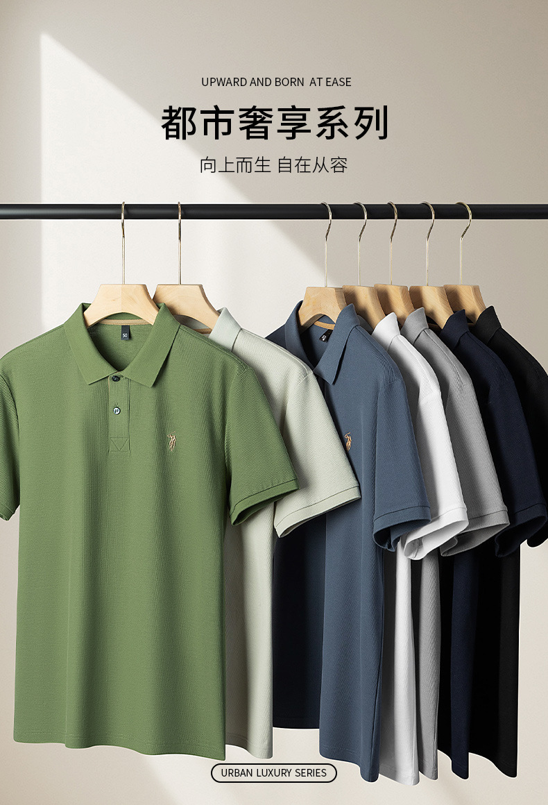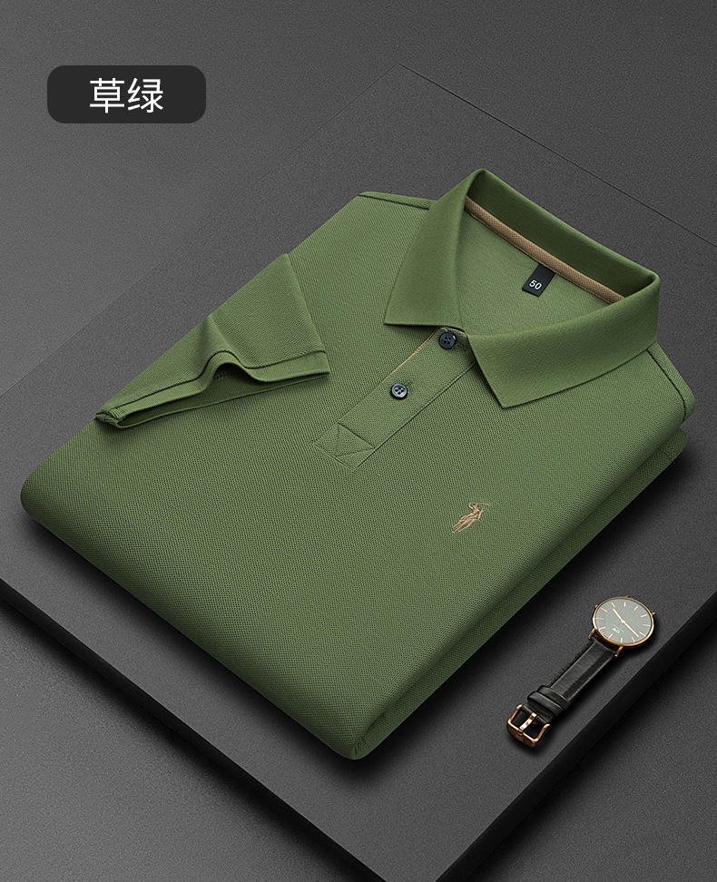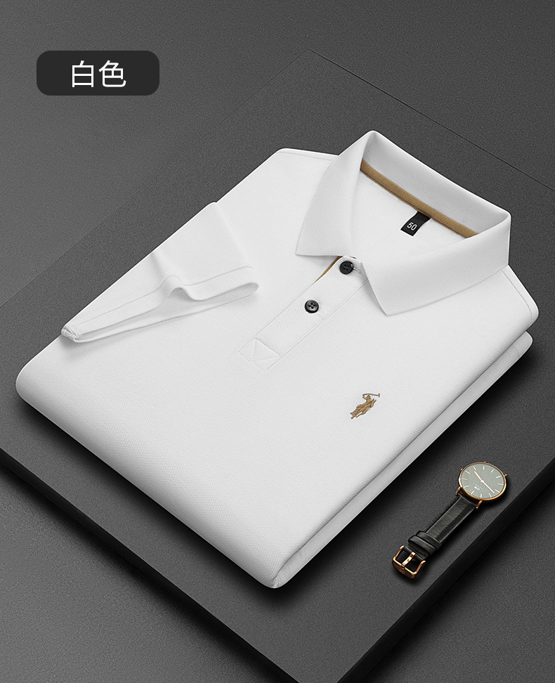 220g 육각형 비즈 머서라이즈 코튼 라펠 반팔 폴로 셔츠 남성용 하이 엔드 폴로 자수 폴로 셔츠 남성용
