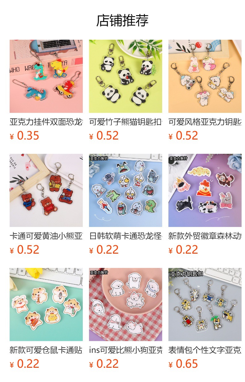 양면 아크릴 펜던트 동물 비터 곰 강아지 귀여운 만화 키 체인 스쿨백 작은 펜던트 키 체인 액세서리