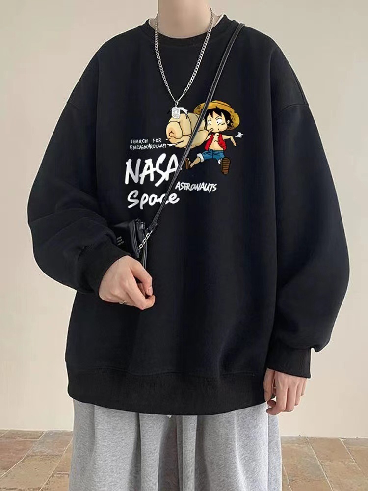 새로운 봄과 가을 후드 스웨터 무거운 느슨한 미국 스타일 트렌디베이스 셔츠 캐주얼 홍콩 스타일 남성 플러스 사이즈 탑