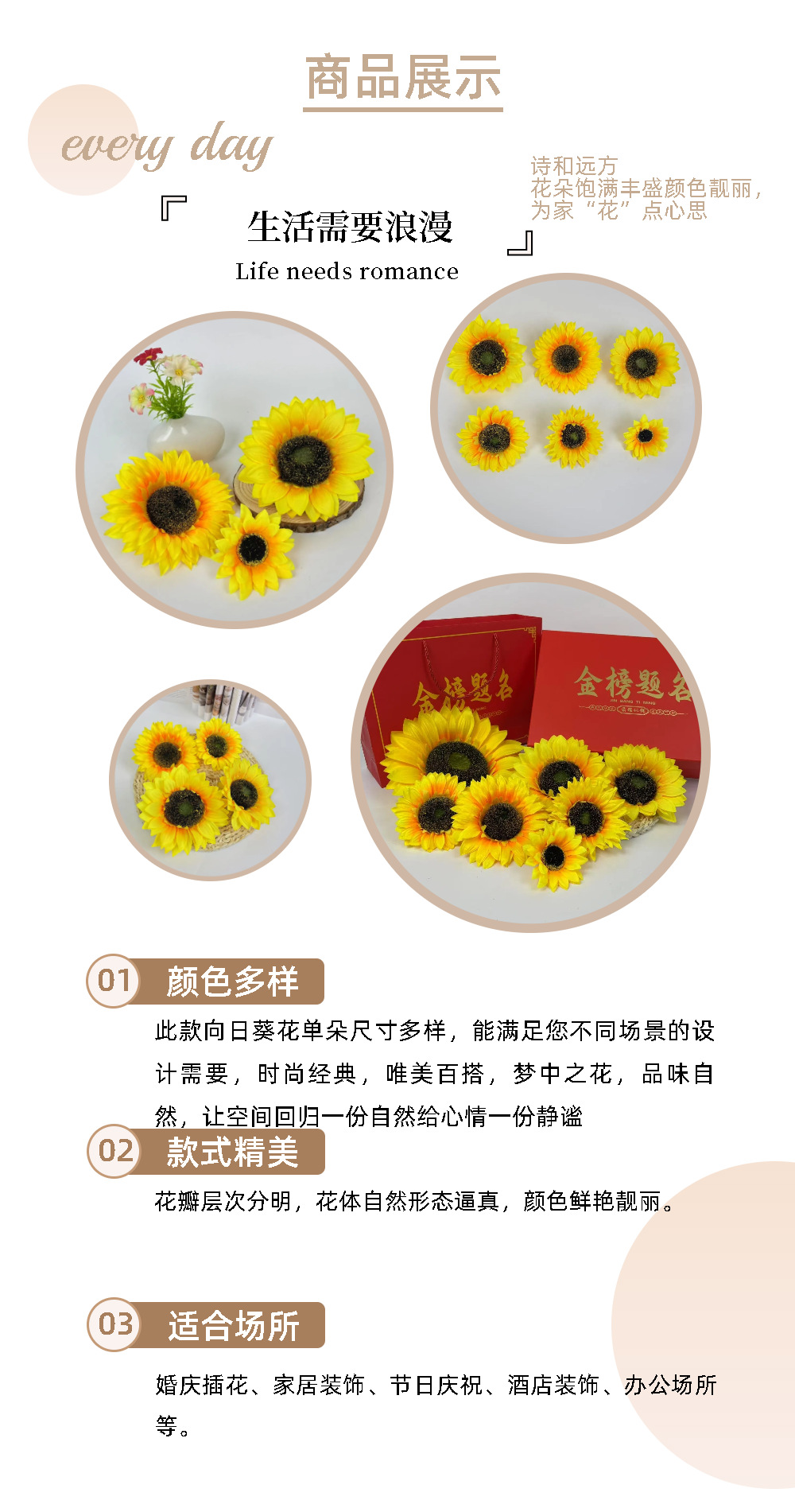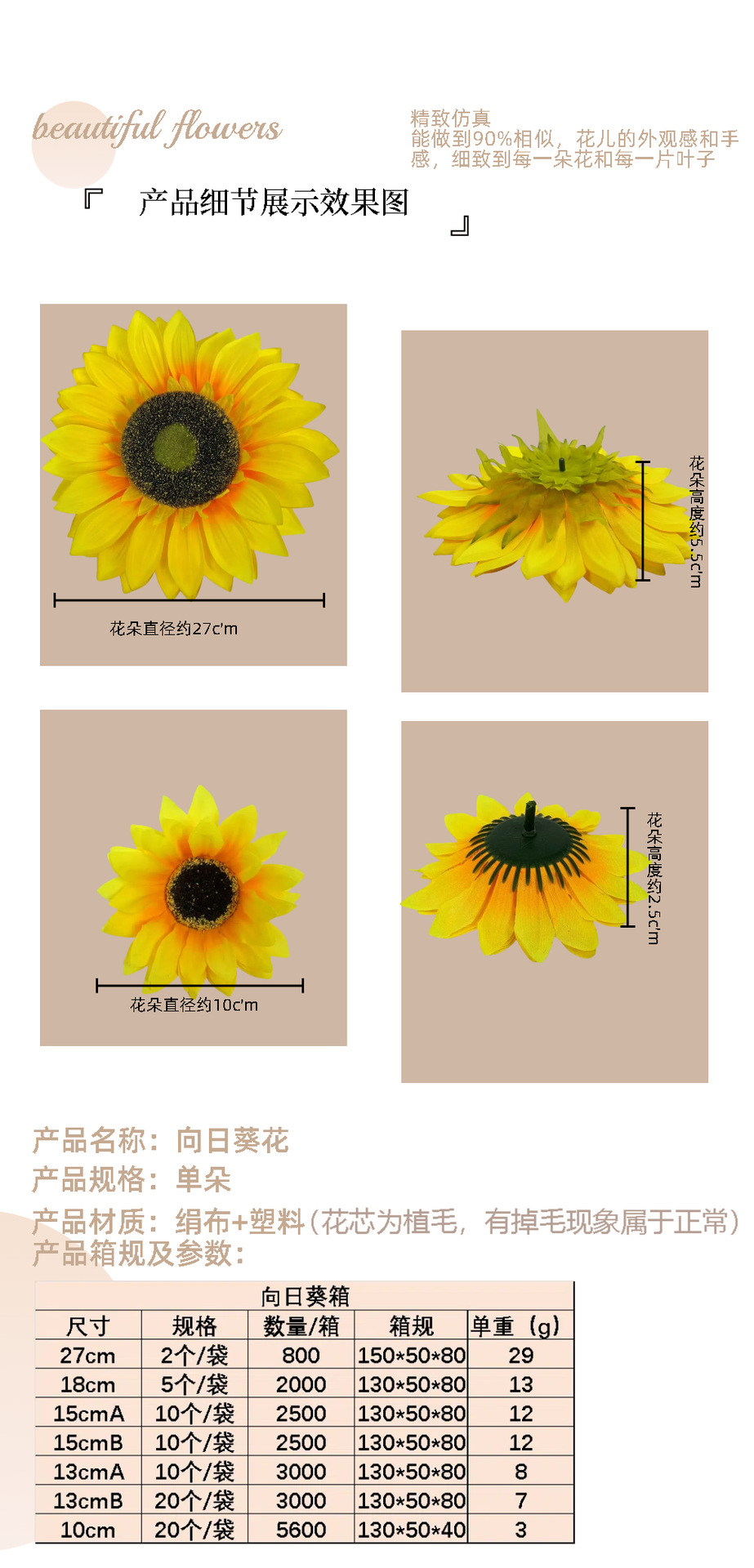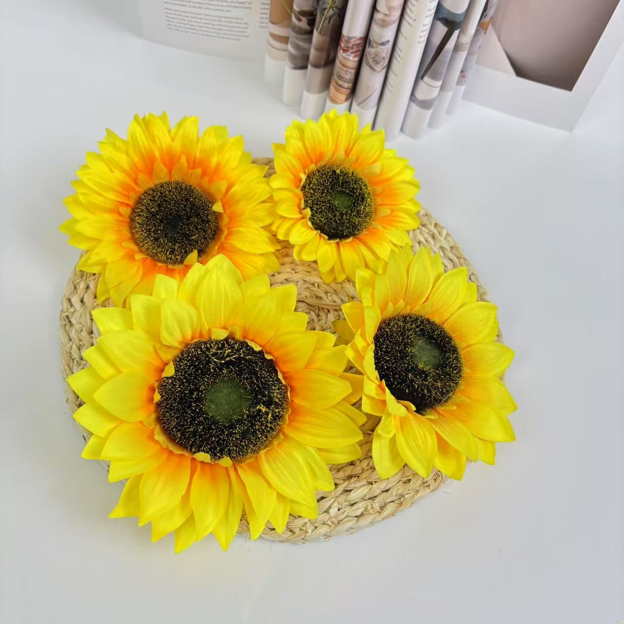 시뮬레이션 해바라기 머리 도매 사진 소품 학자 모자 책가방 의류 장식 홈 장식