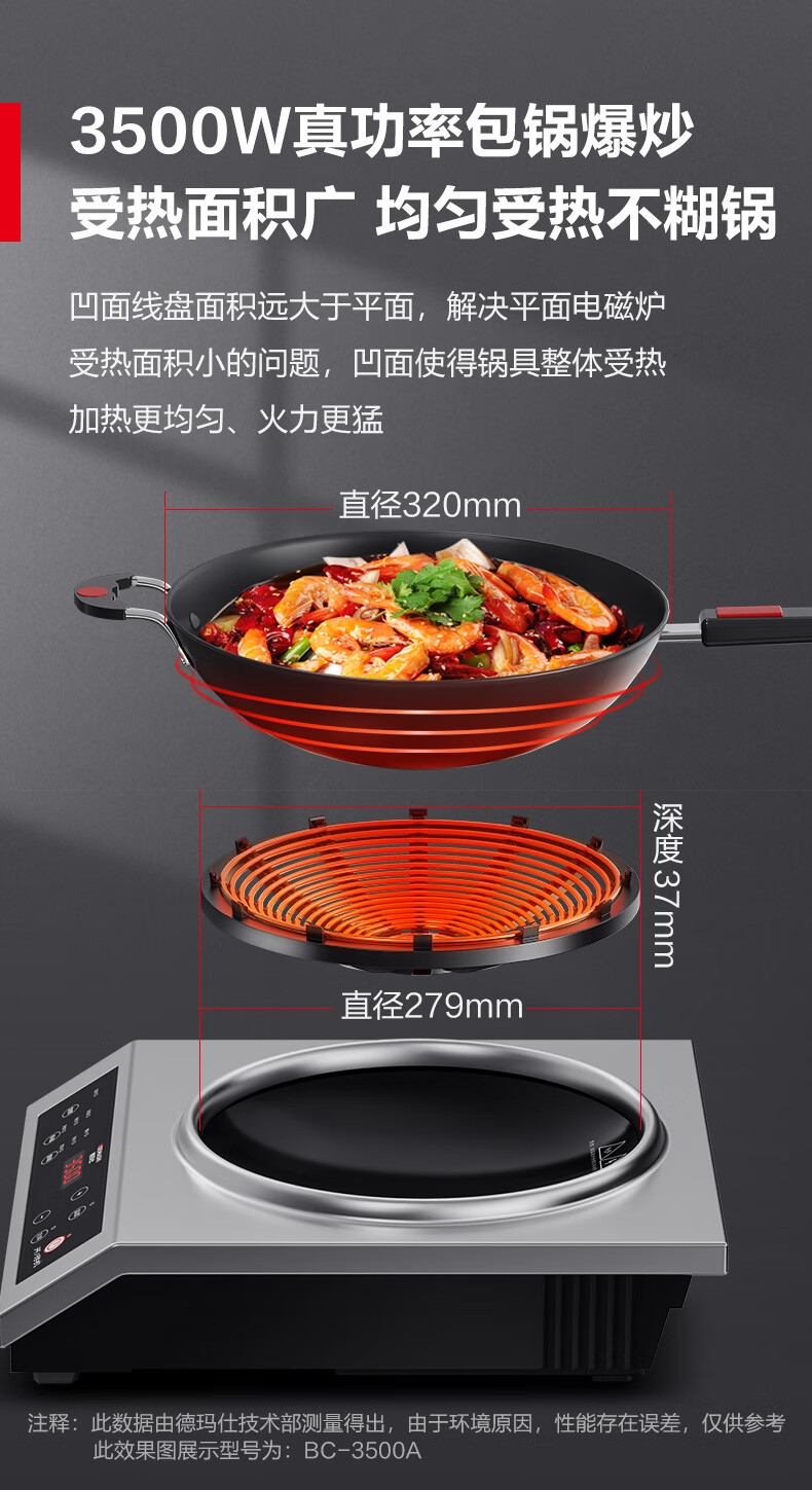 德玛仕商用凹面电磁炉3500w 大功率全铜线圈猛火爆炒火锅电炒炉