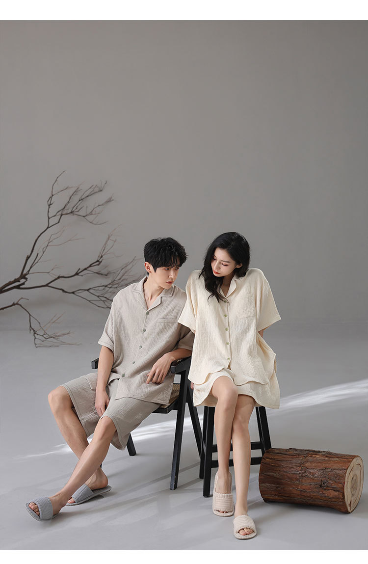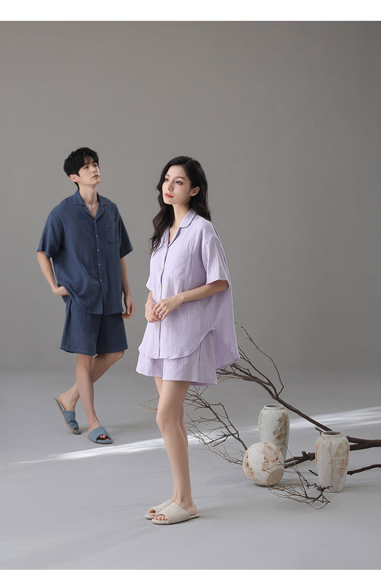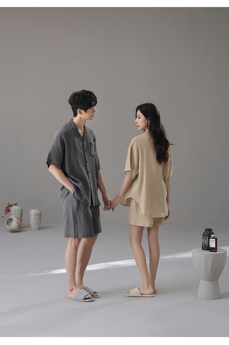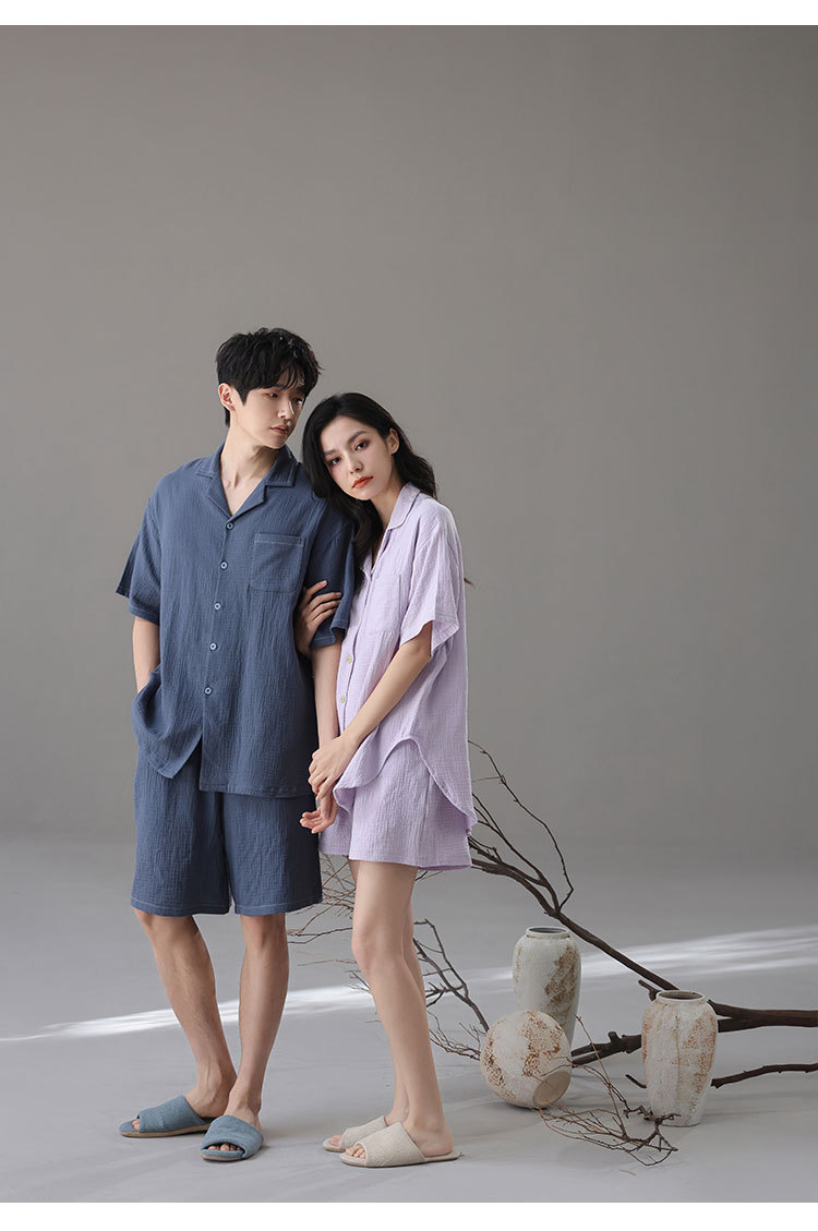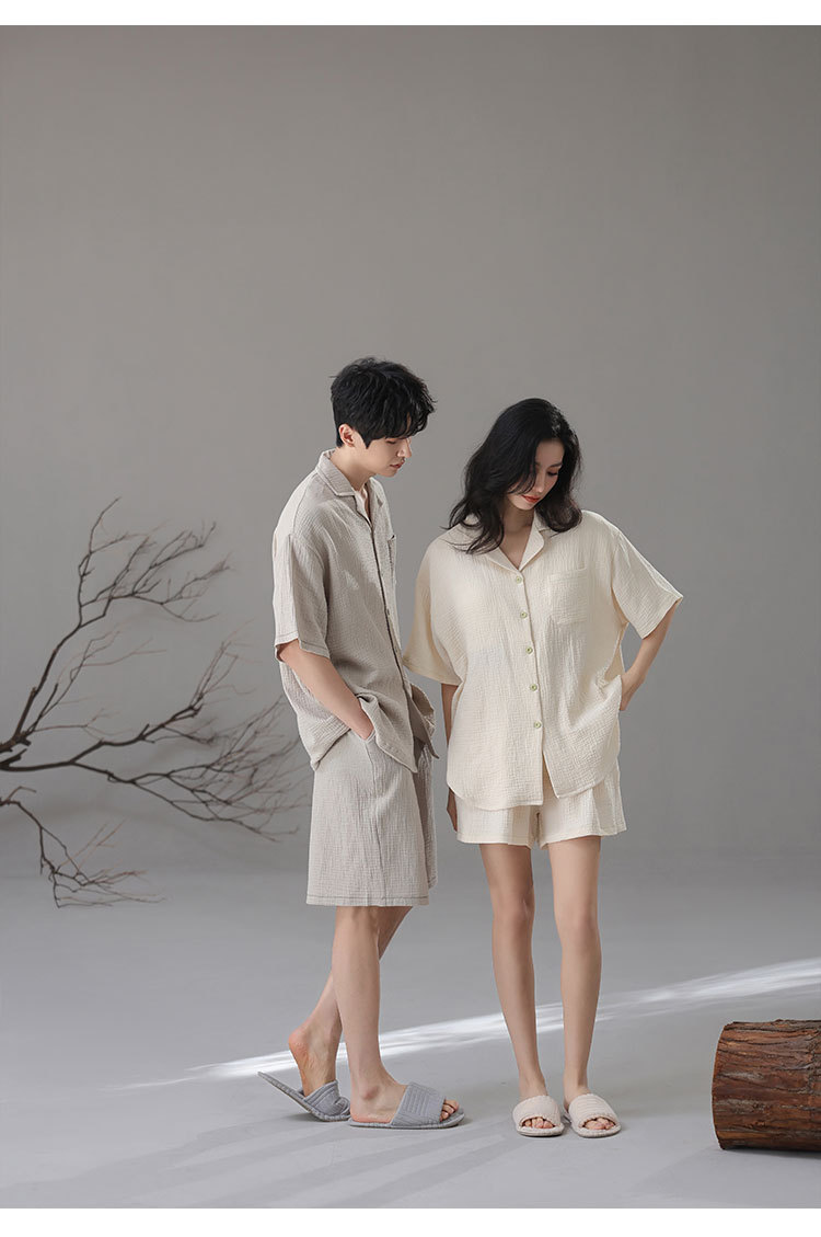 [클래스 A 이중 원사] 베이비 코튼 커플 잠옷 여름 잠옷 여성 가슴 패드 느슨한 통기성 남성 홈웨어 a