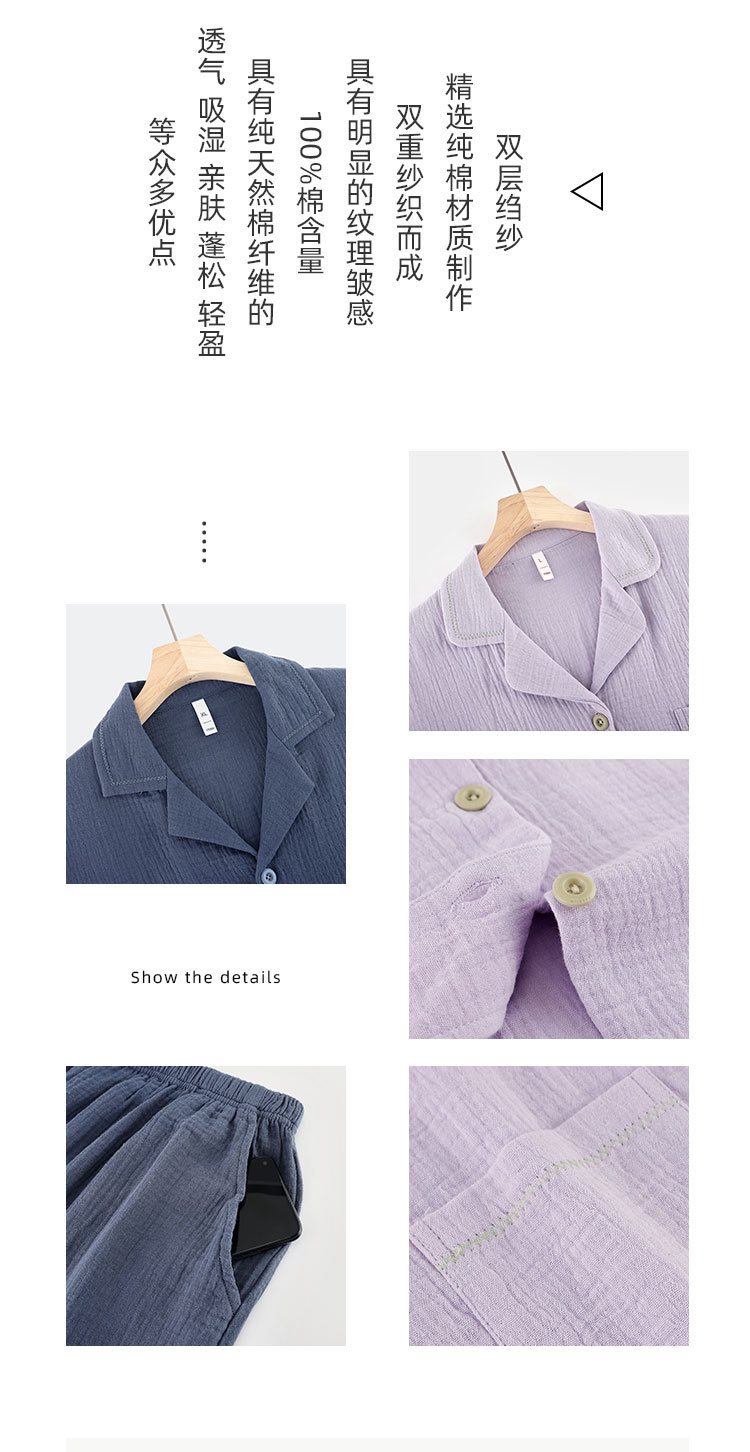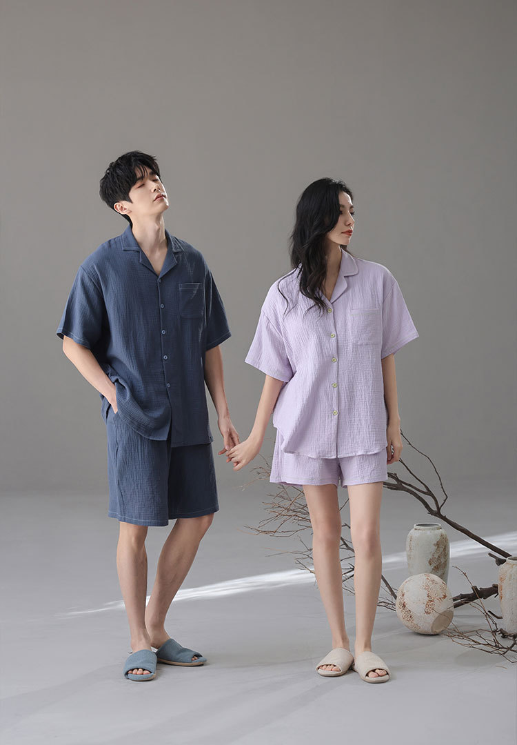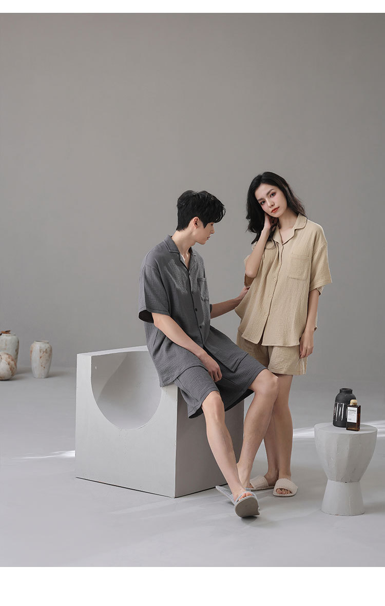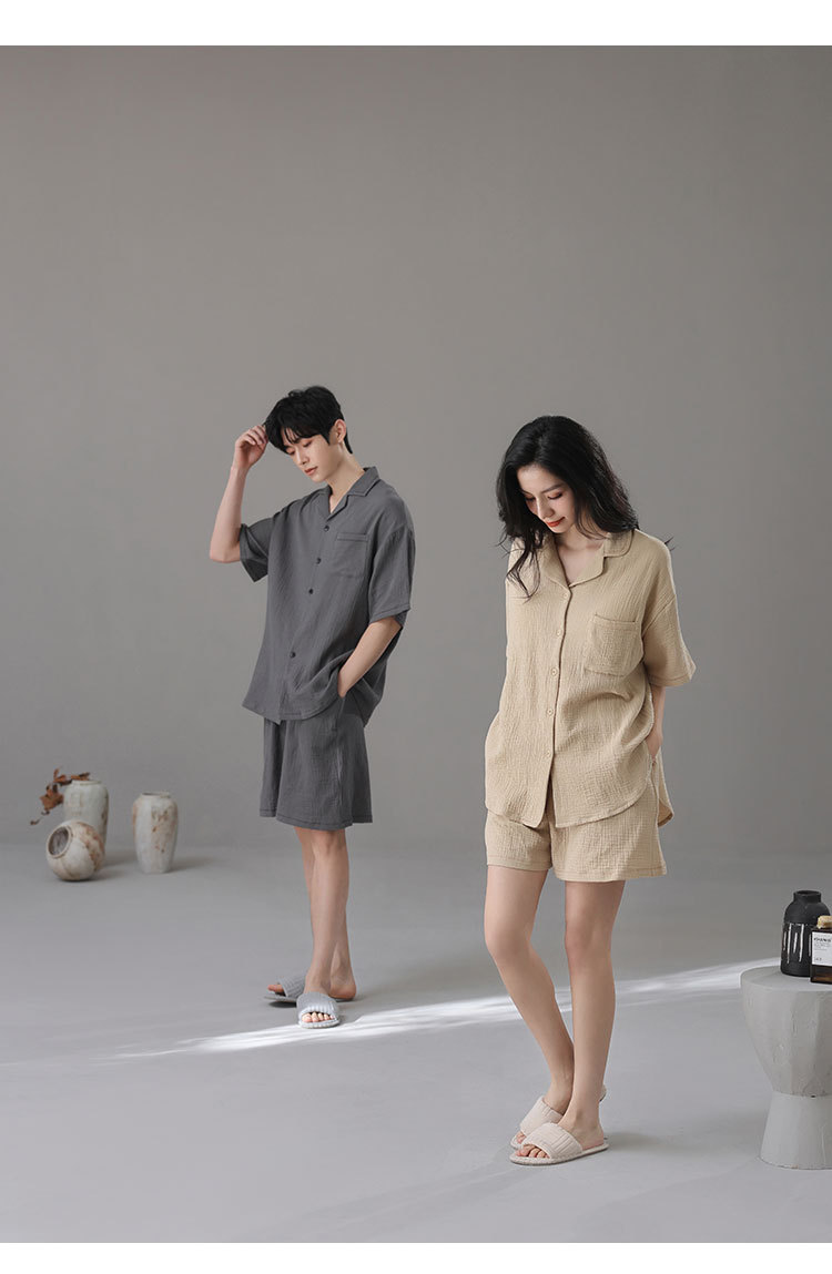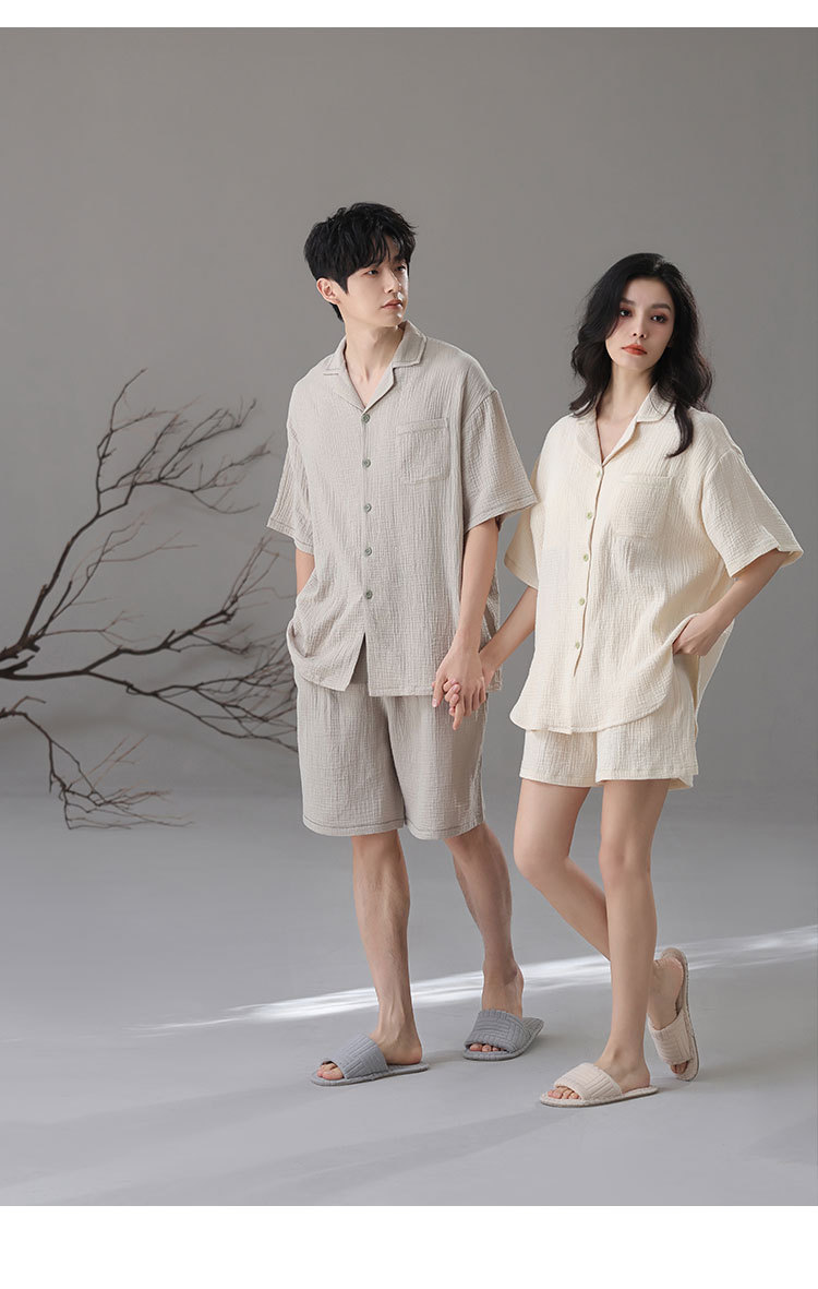 [클래스 A 이중 원사] 베이비 코튼 커플 잠옷 여름 잠옷 여성 가슴 패드 느슨한 통기성 남성 홈웨어 a