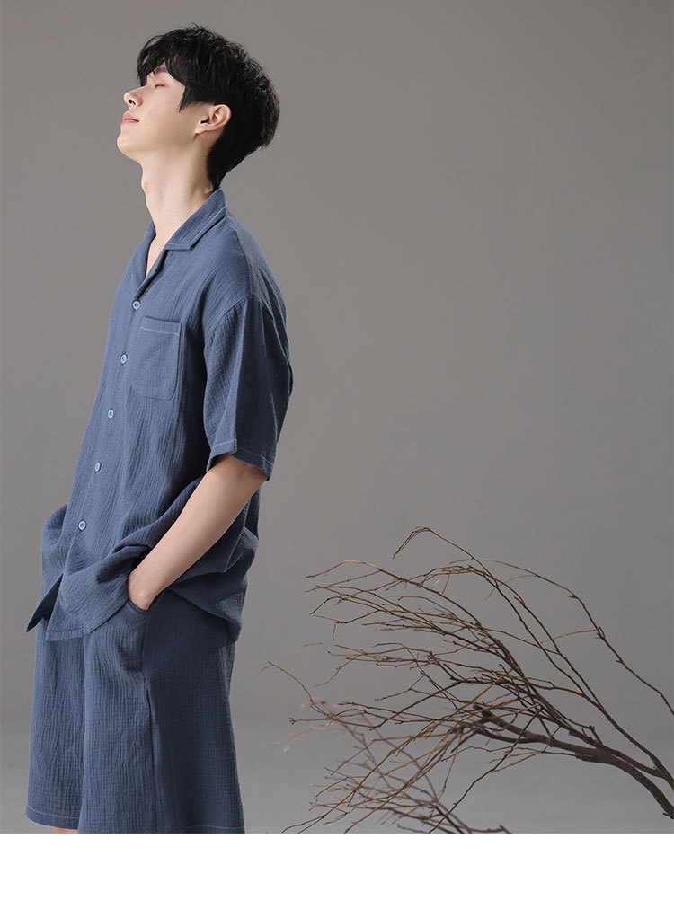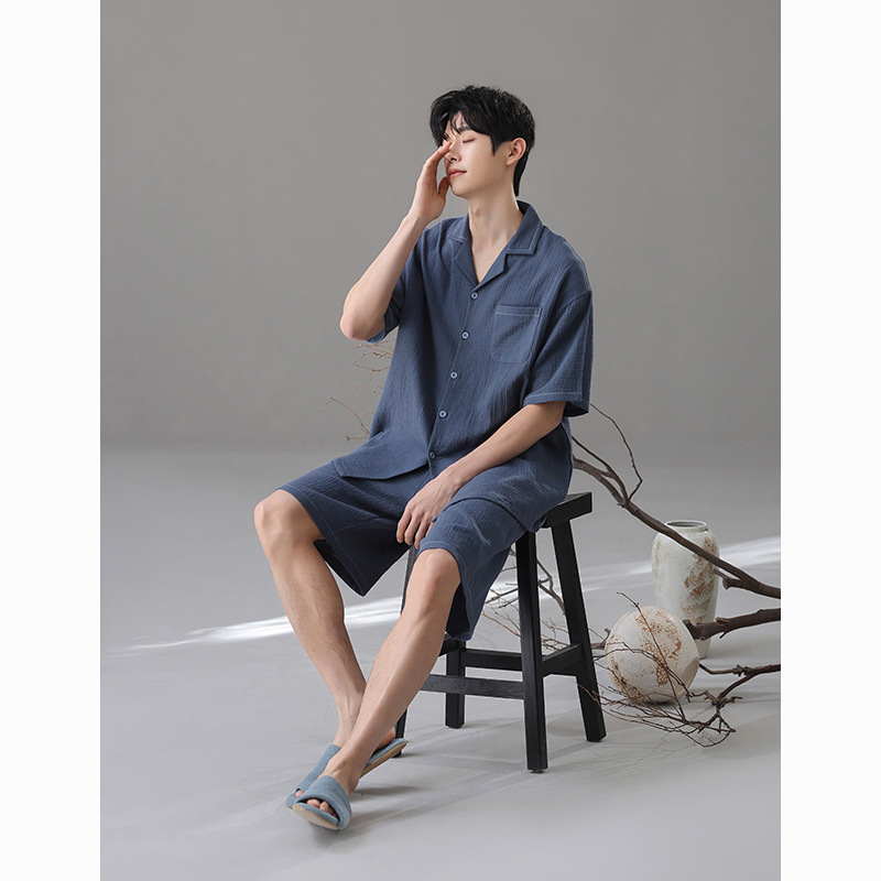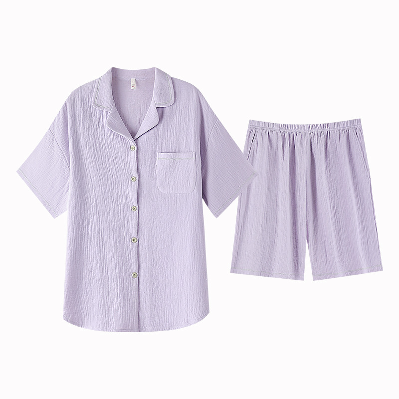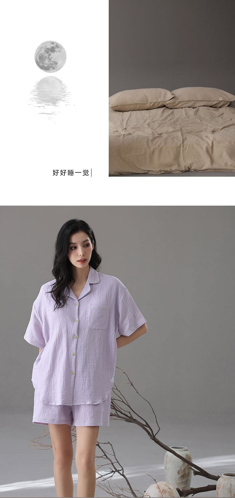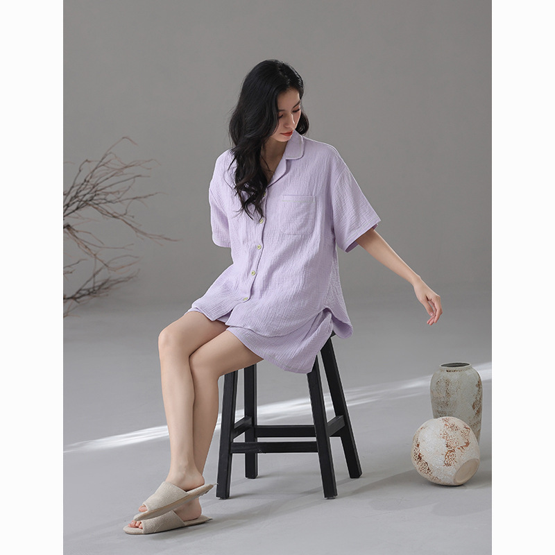 [클래스 A 이중 원사] 베이비 코튼 커플 잠옷 여름 잠옷 여성 가슴 패드 느슨한 통기성 남성 홈웨어 a