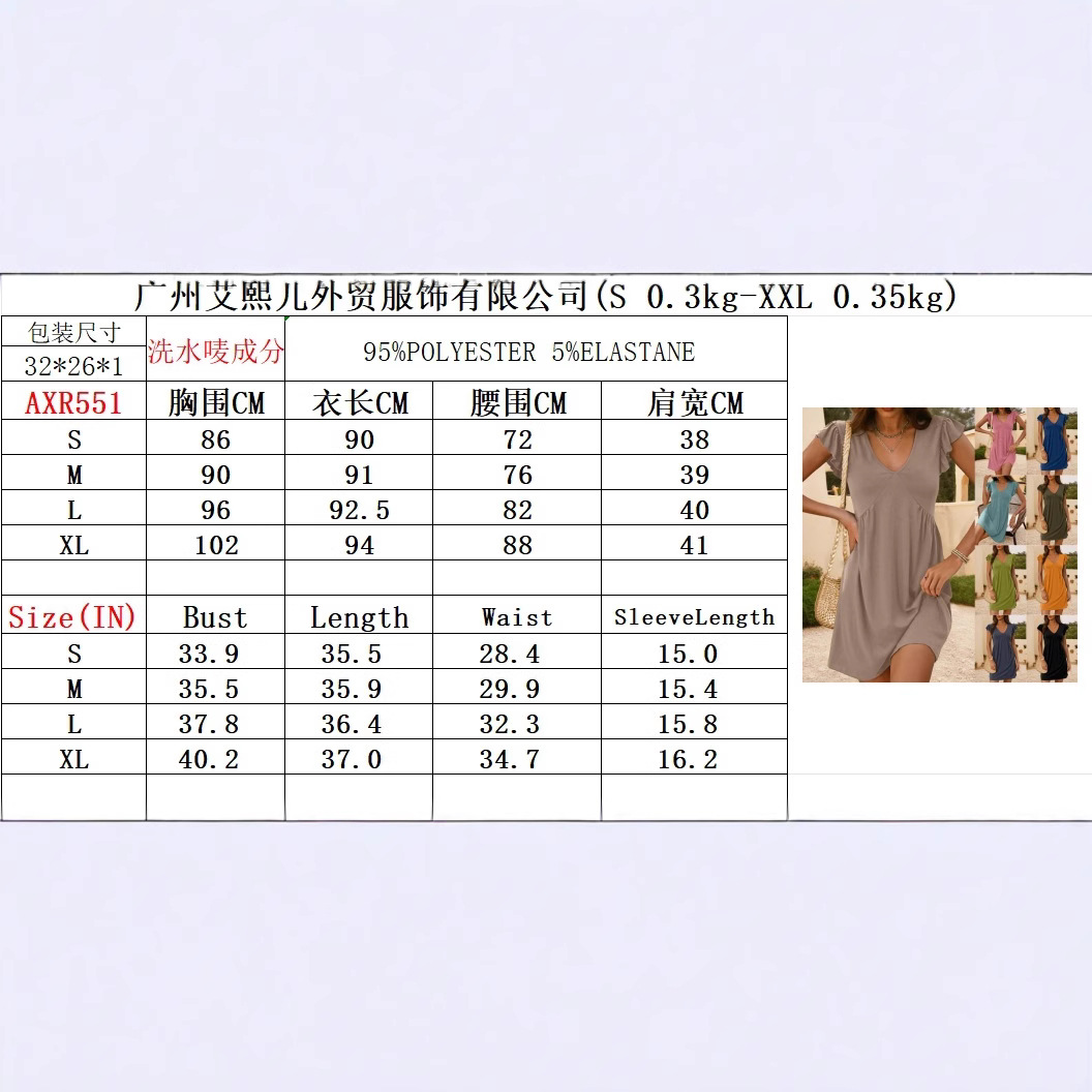 2026 봄 여름 아마존 크로스보더 드레스 비치 캐주얼 딥 브이넥 플리츠 러플 소매 루즈핏 베스트 드레스 여성용
