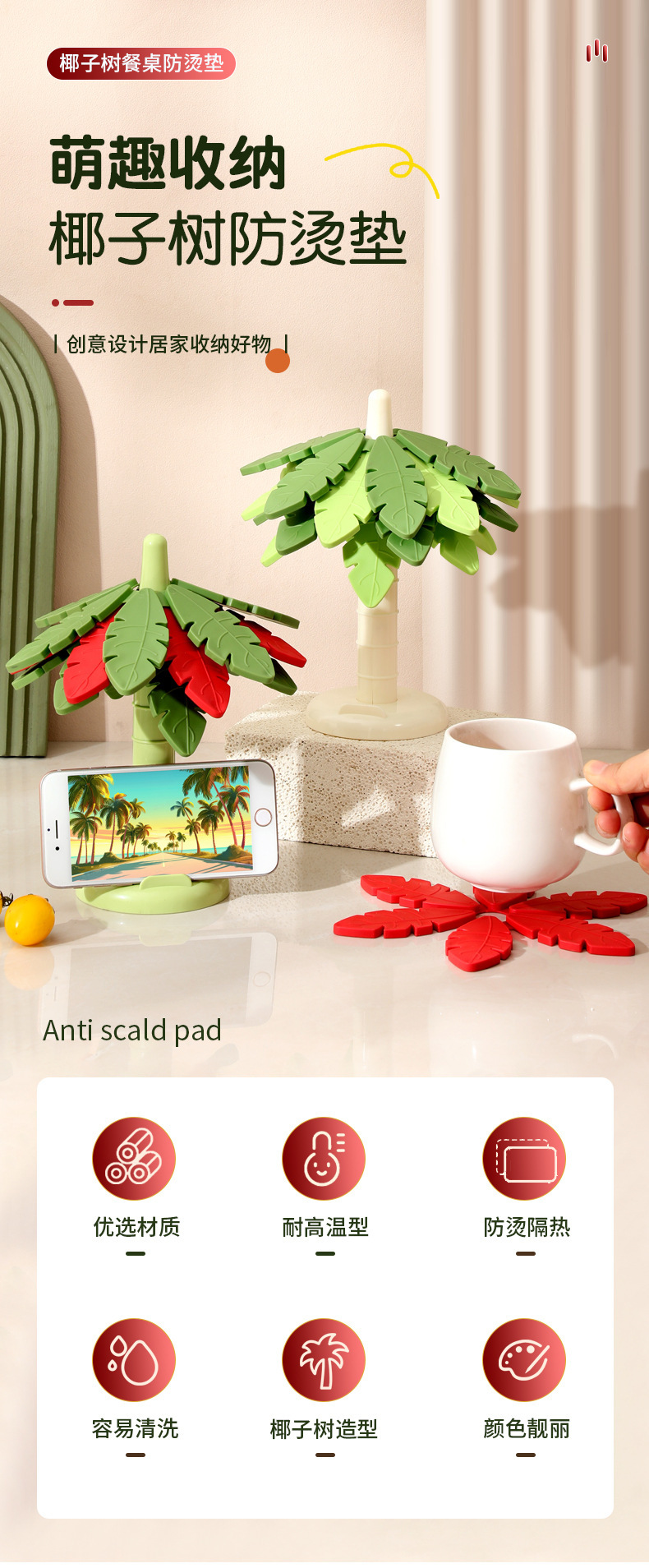 작은 나무 실리콘 단열 매트 식탁 매트 안티 스케일 매트 고온 내성 그릇 매트 냄비 매트 가정용 고급 감각 식사 컵 매트 도매