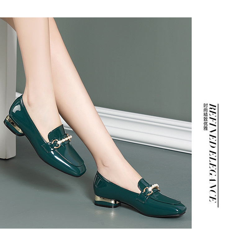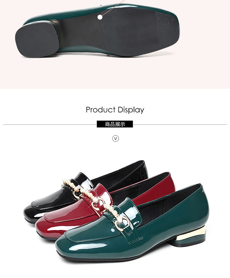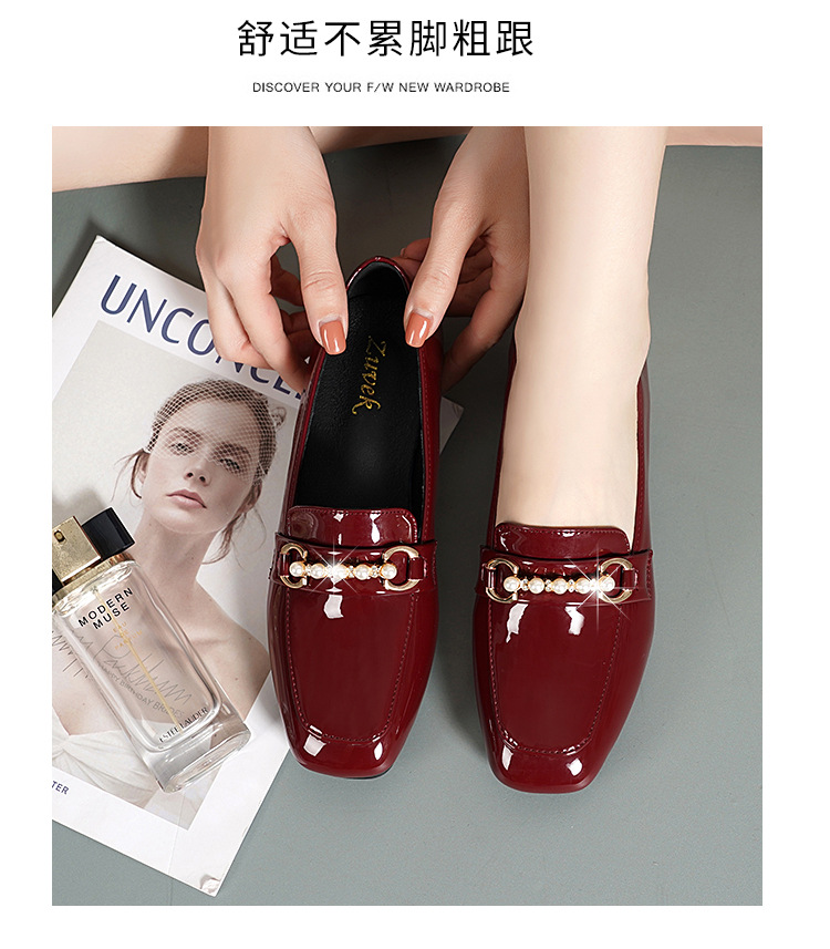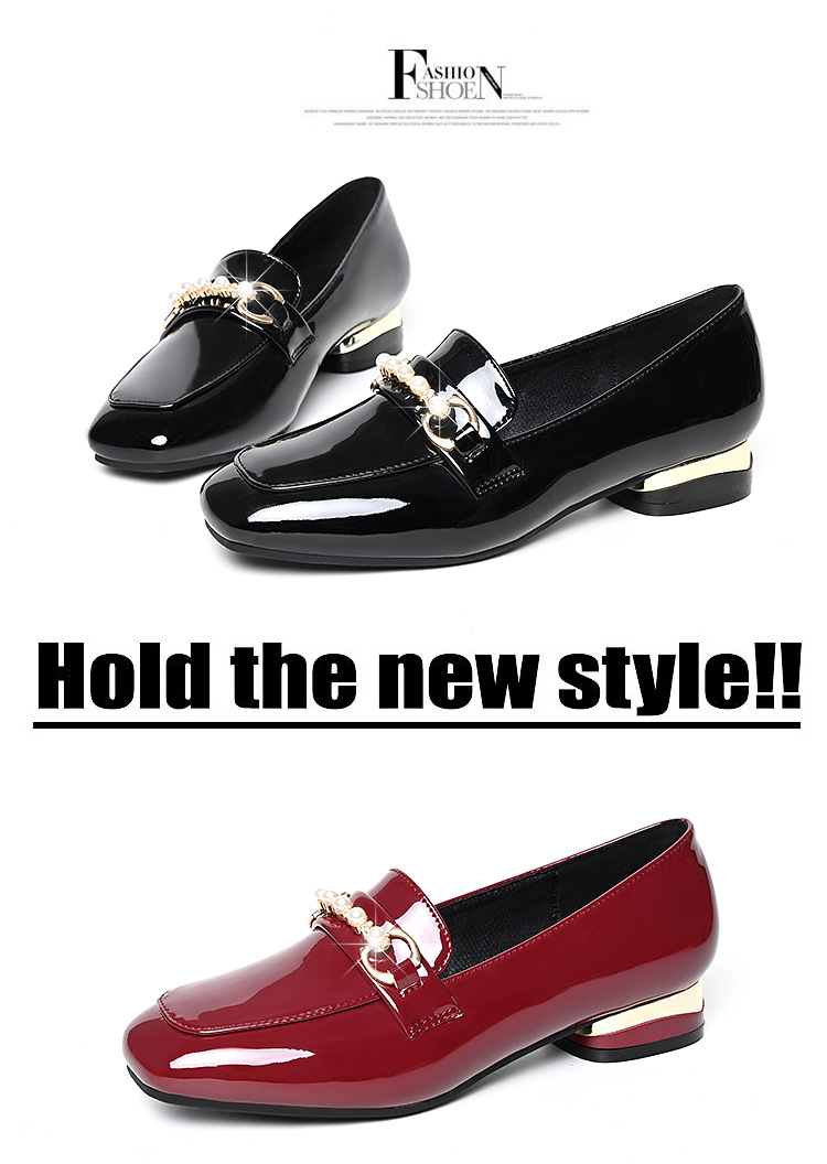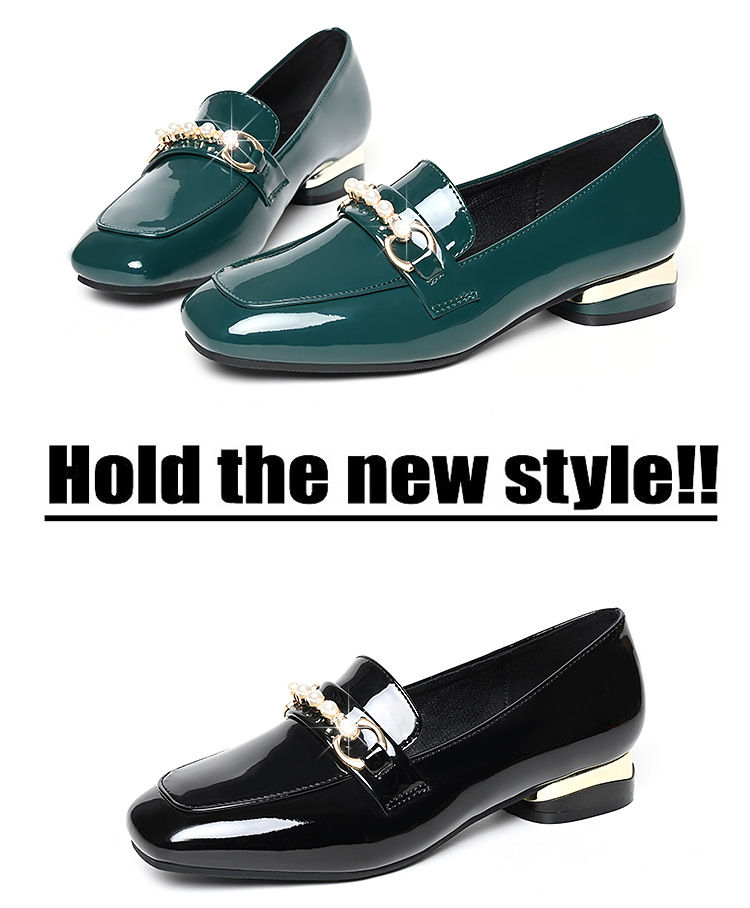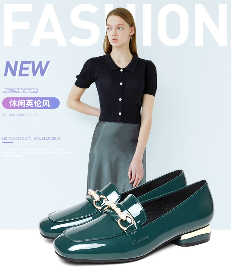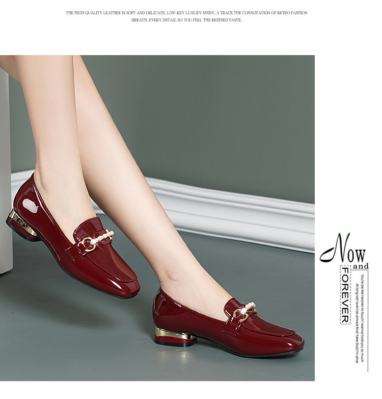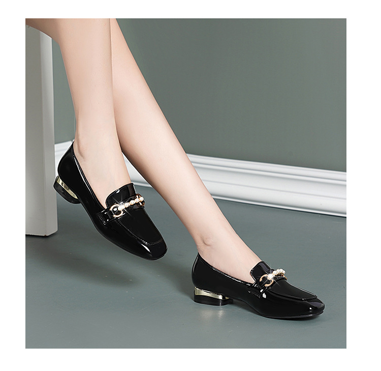 하이 퀄리티 2025 봄과 가을 새로운 특허 가죽 플랫 로우 힐 영국 여성 싱글 신발 전문 패션 미끄럼 방지 여성 가죽 신발