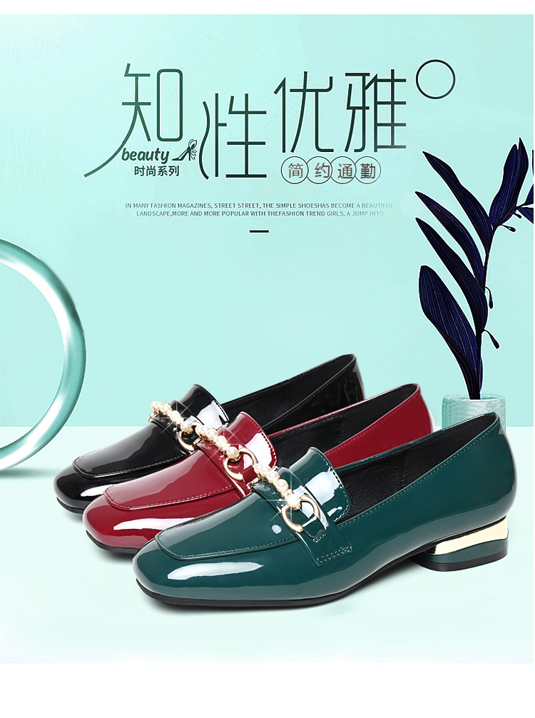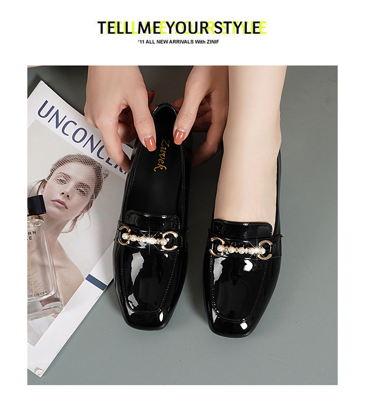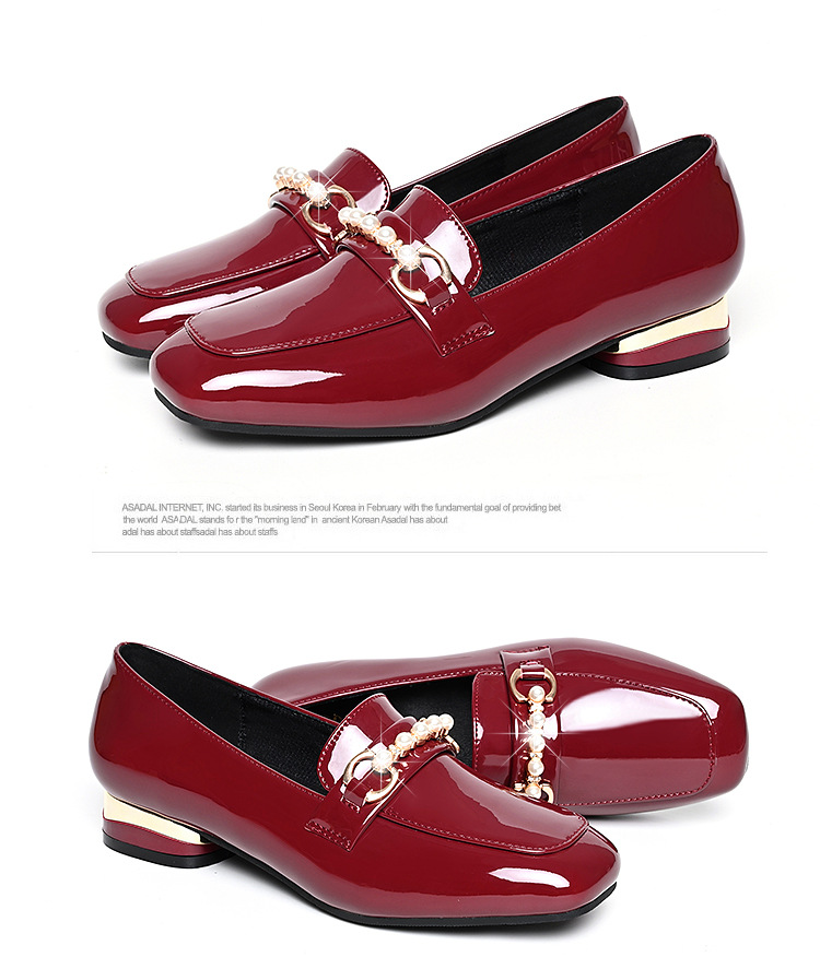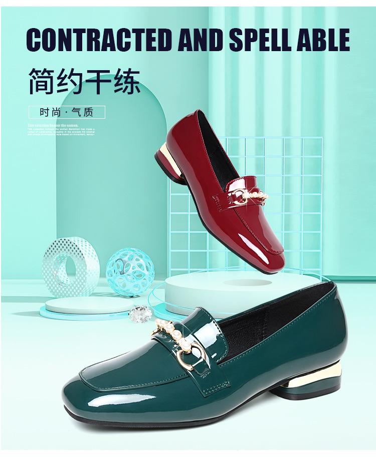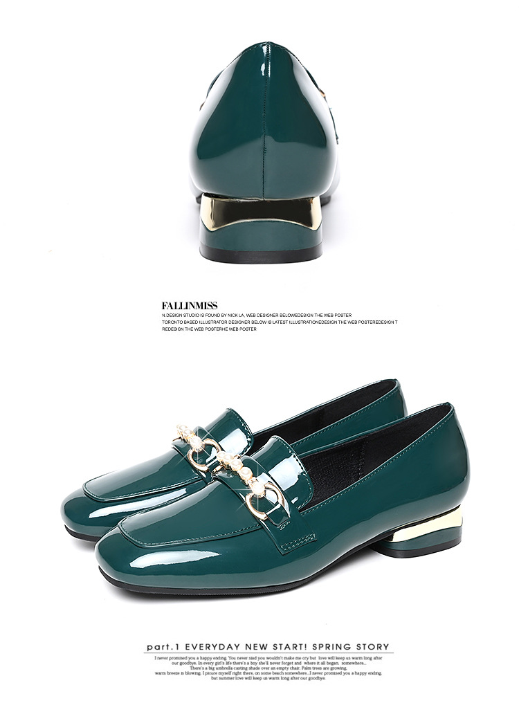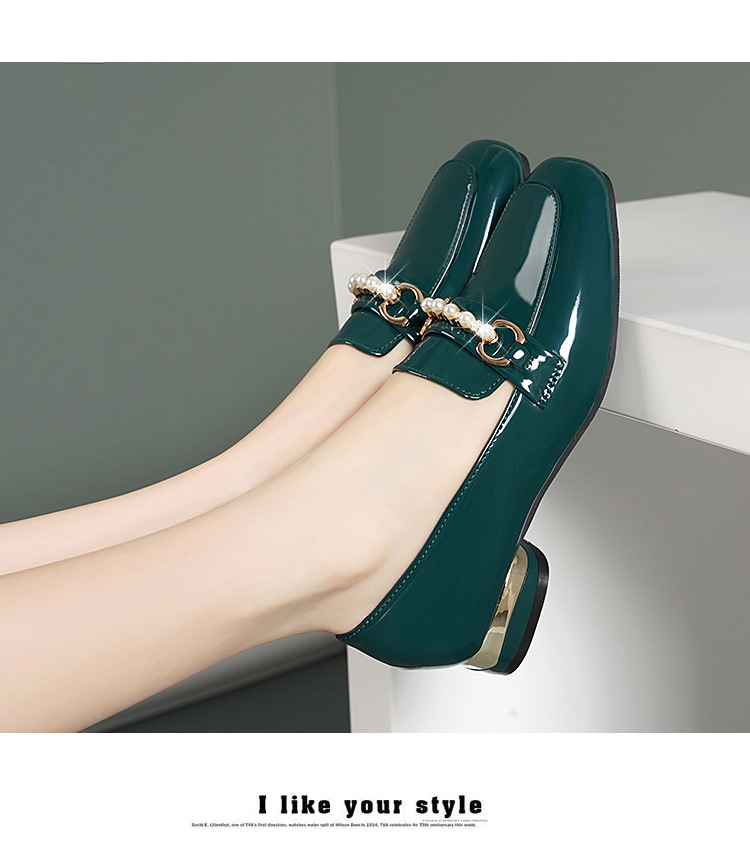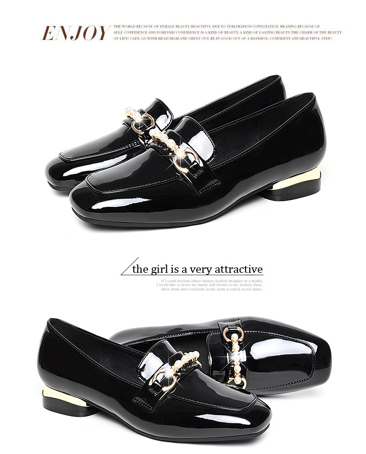하이 퀄리티 2025 봄과 가을 새로운 특허 가죽 플랫 로우 힐 영국 여성 싱글 신발 전문 패션 미끄럼 방지 여성 가죽 신발