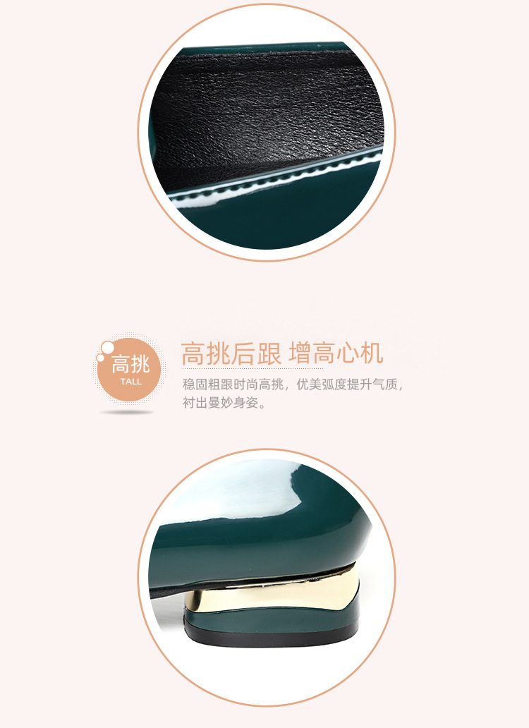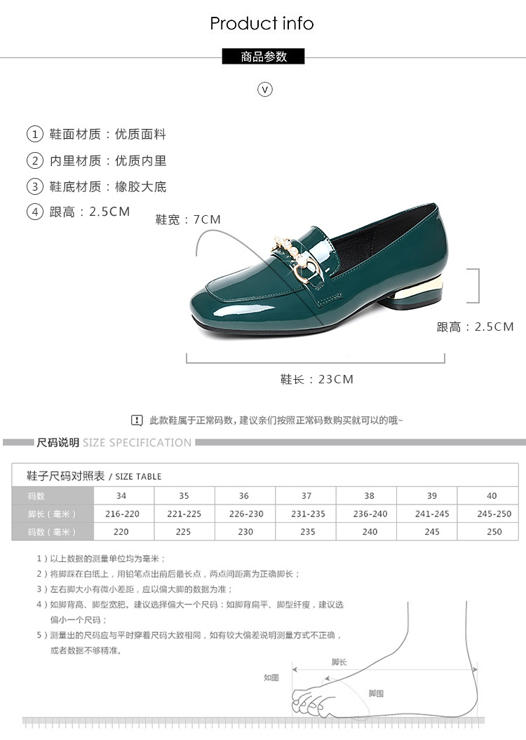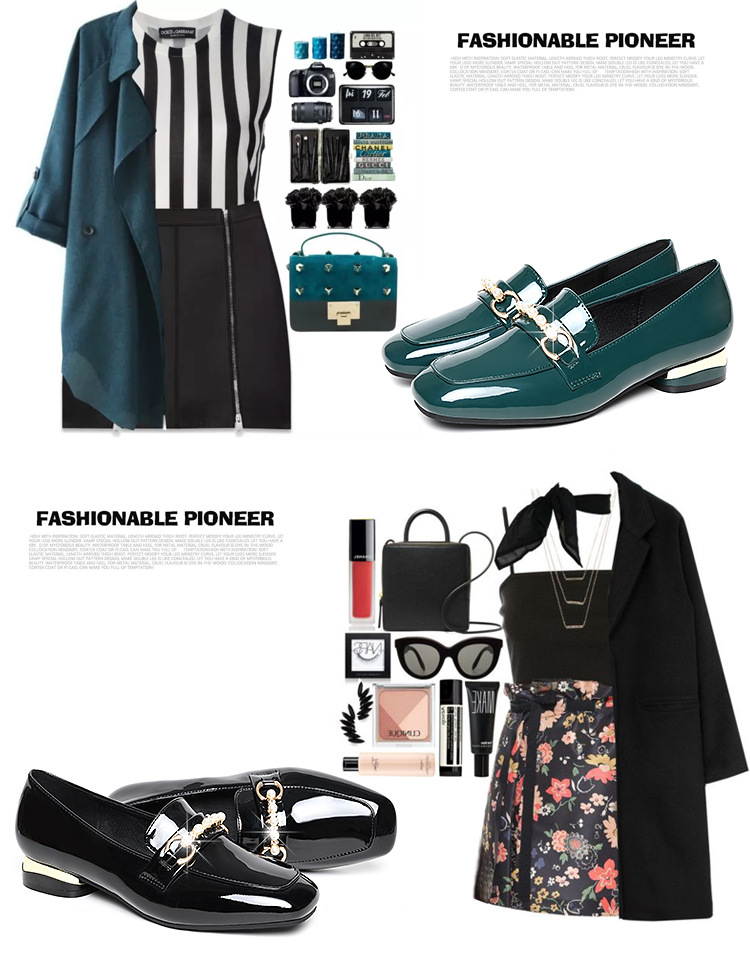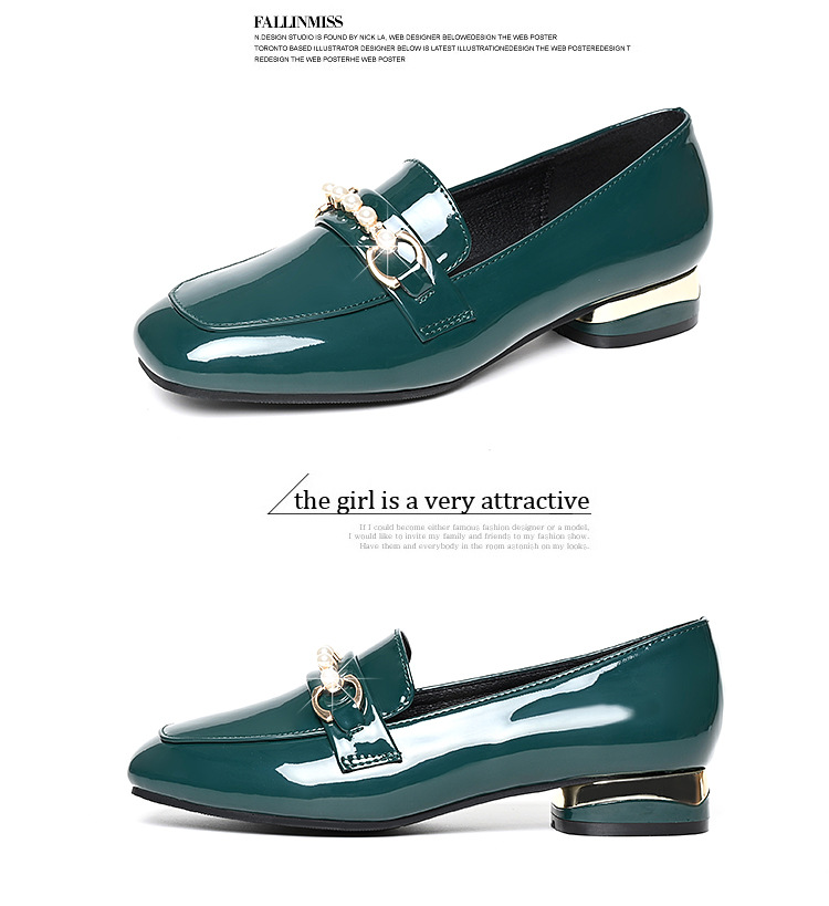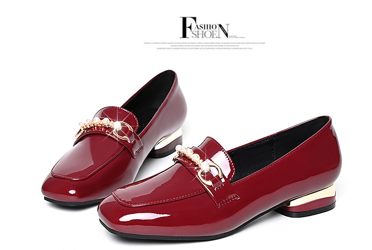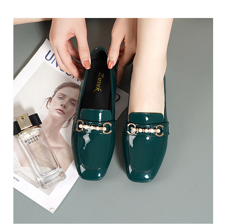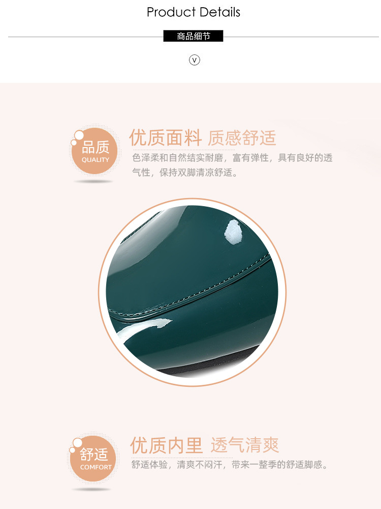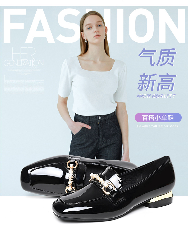 하이 퀄리티 2025 봄과 가을 새로운 특허 가죽 플랫 로우 힐 영국 여성 싱글 신발 전문 패션 미끄럼 방지 여성 가죽 신발