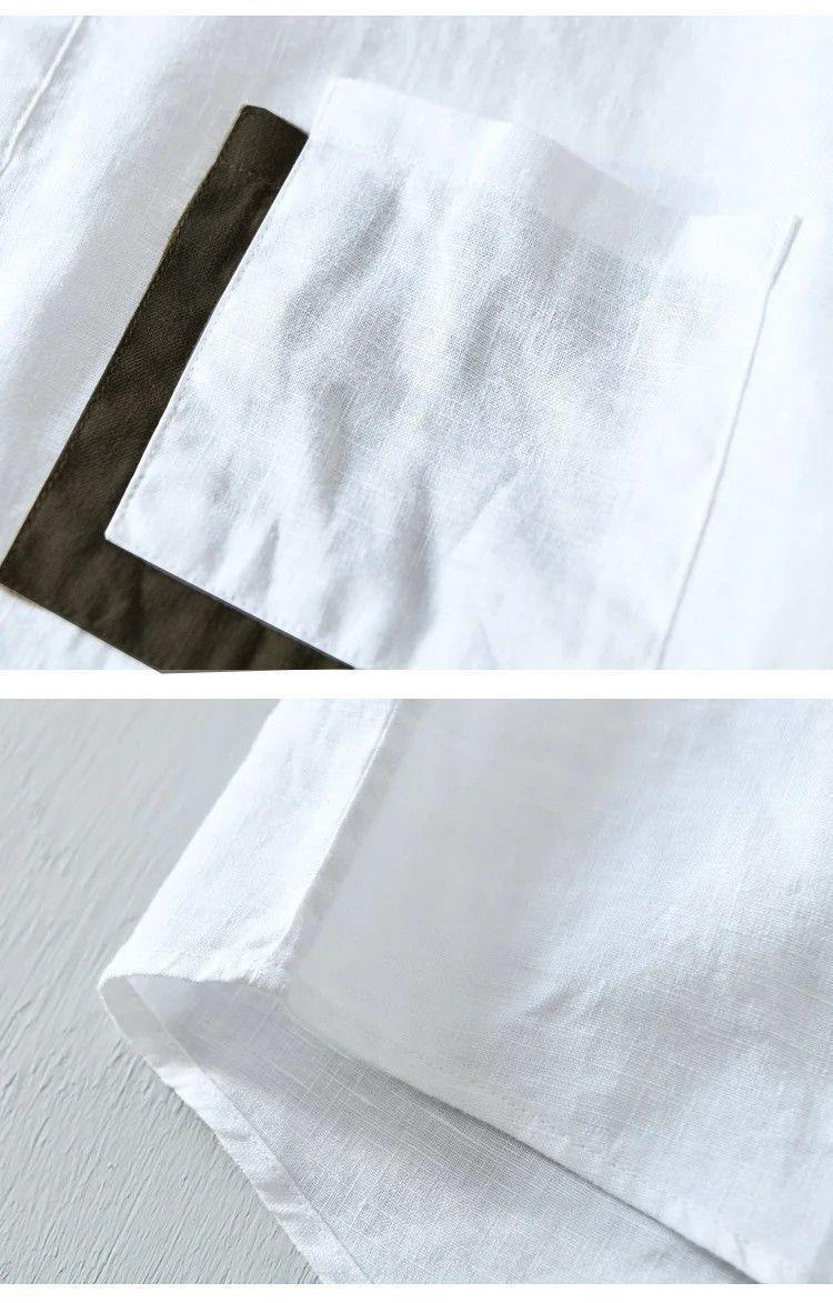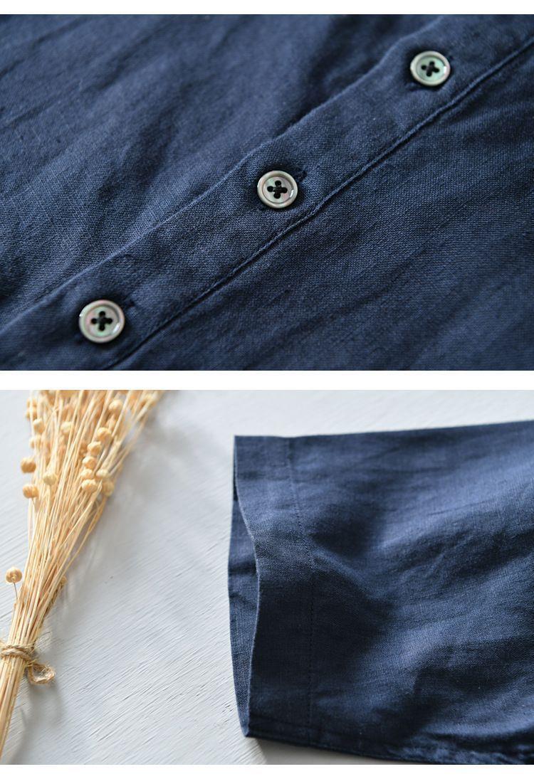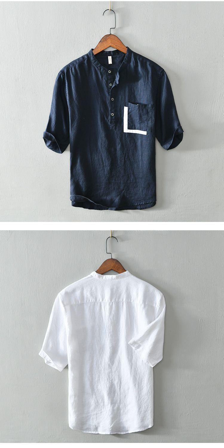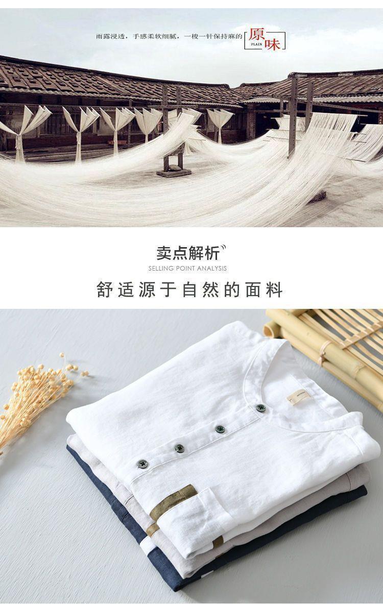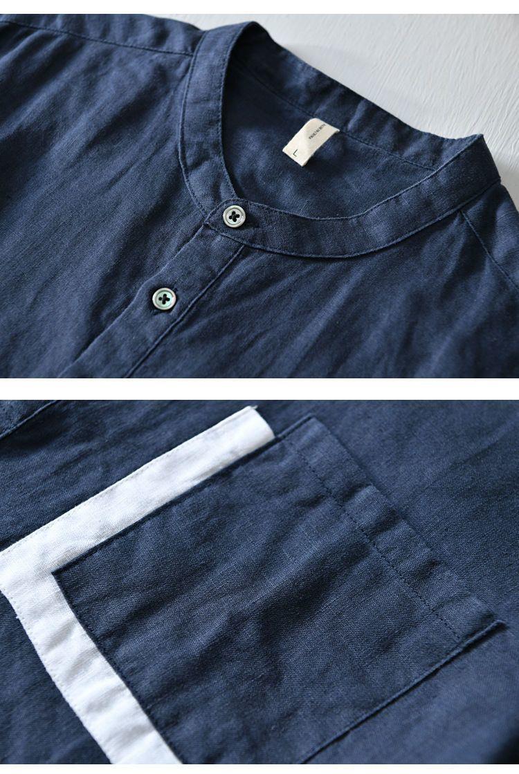 중국 스타일 봄과 여름 느슨한 고급 남성 리넨 반소매 코튼 및 리넨 캐주얼 통기성 5 점 반소매 셔츠 칼라 티셔츠 남성용