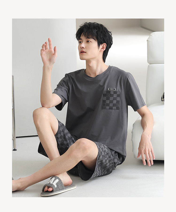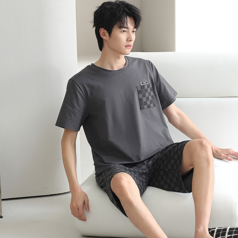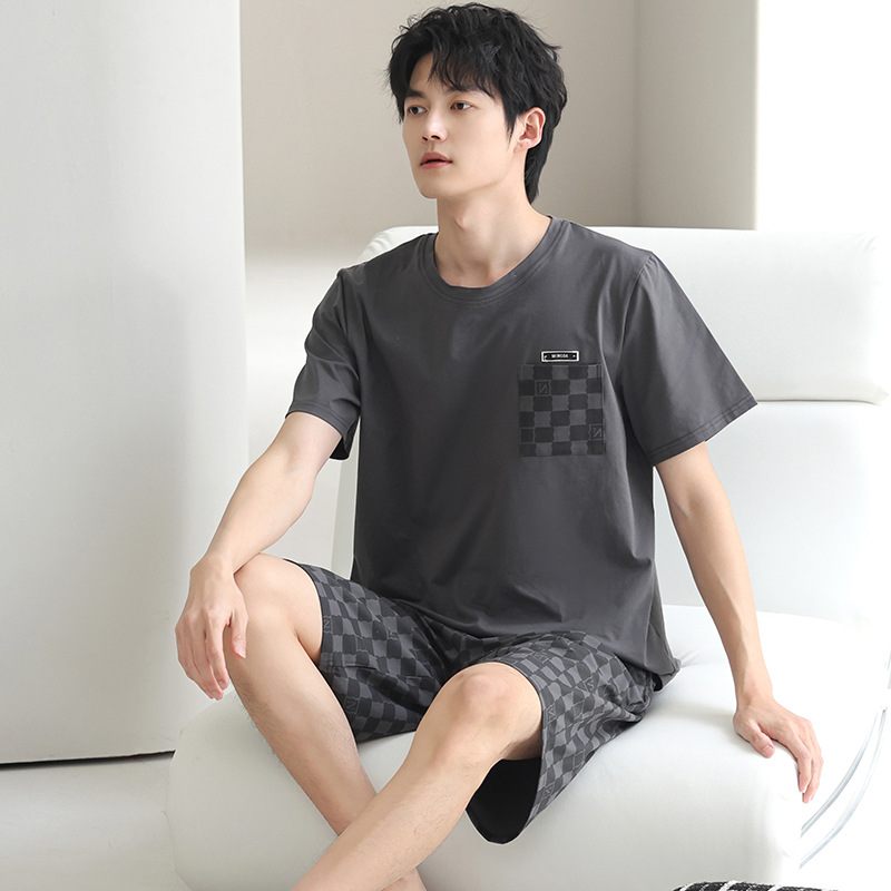 2025 모달 파자마 남자 여름 반팔 반바지 풀오버 크루 넥 간단한 캐주얼 편안한 남성 홈 의류 세트