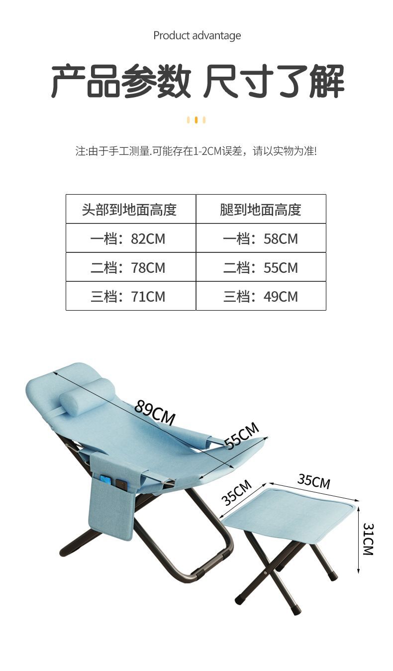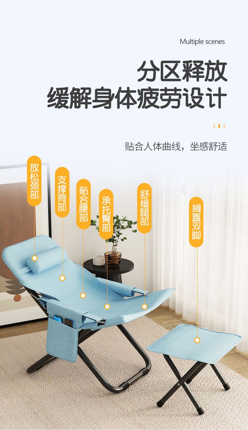 간단한 Recliner 점심 식사 접이식 의자 사무실 낮잠 레저 등받이 의자 홈 발코니 휴대용 게으른 소파 의자