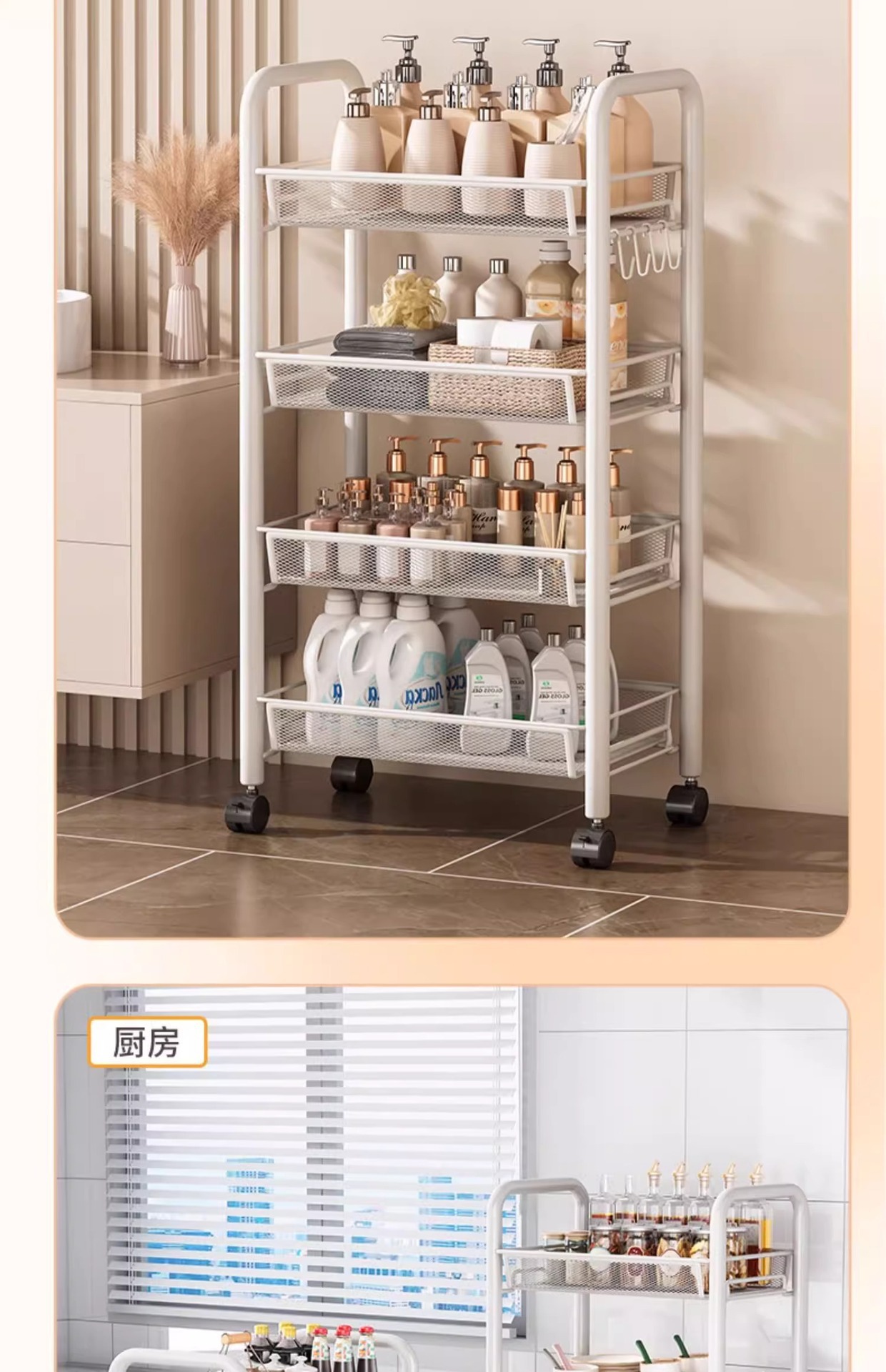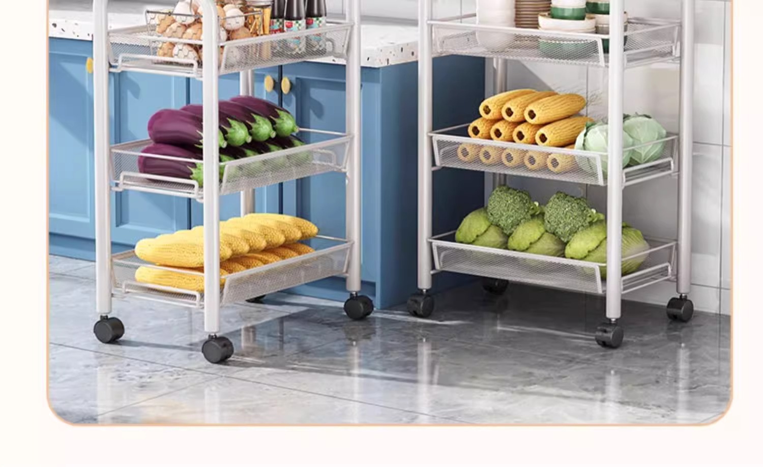 주방 다기능 저장 랙 이동식 야채 선반 바닥 스낵 선반 다층 저장 트롤리 야채 바구니