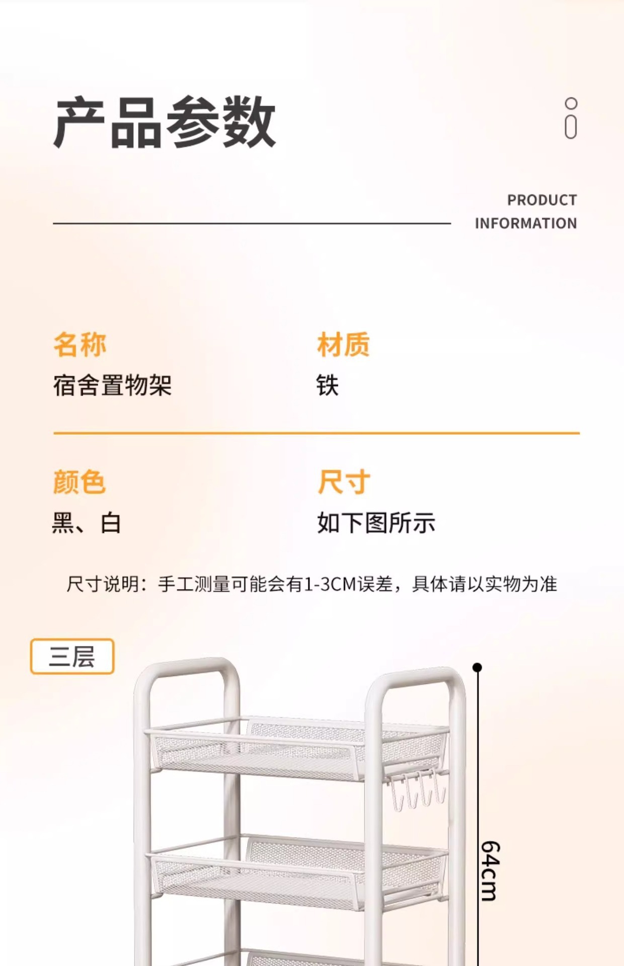 업그레이드된 3단 화이트 [행잉버킷+도르래+후크]