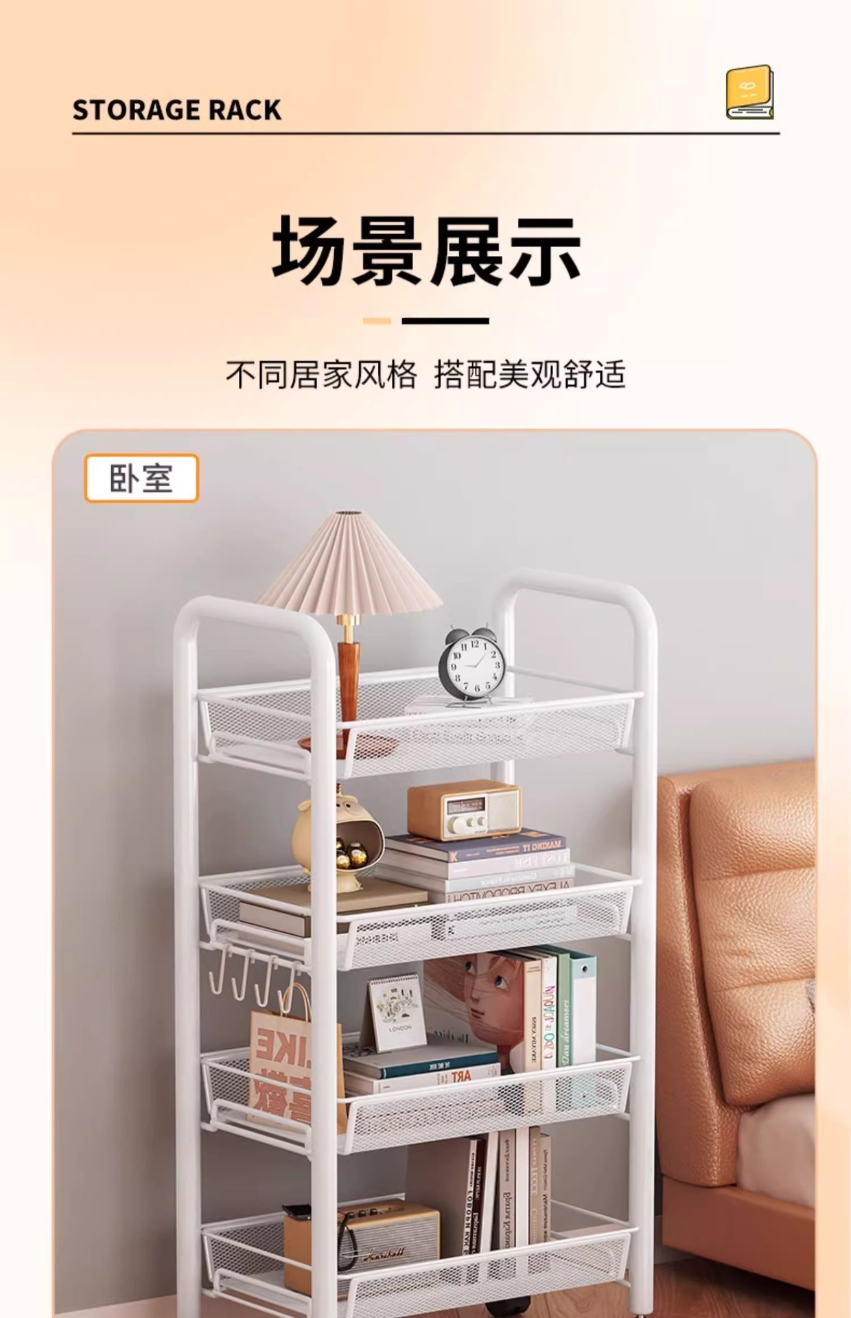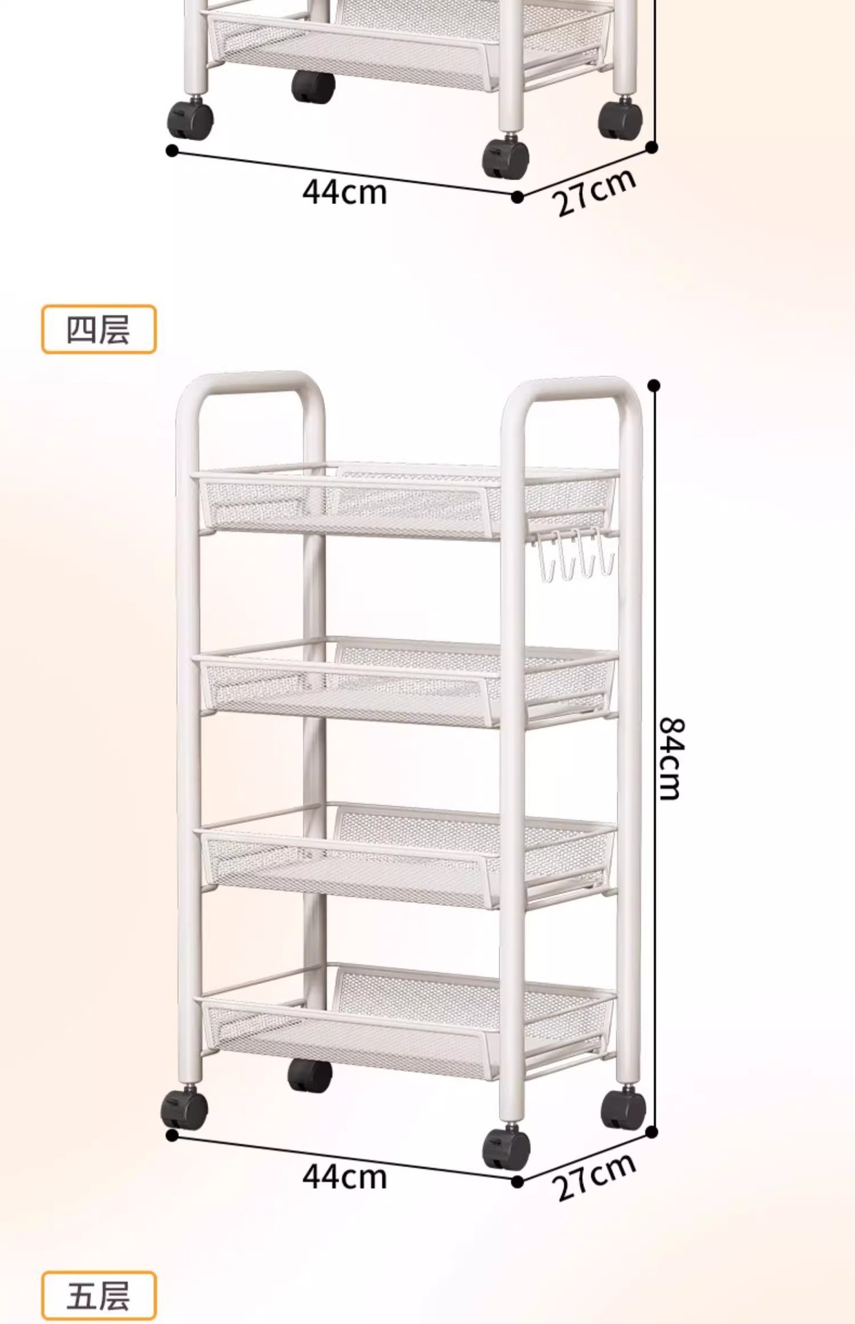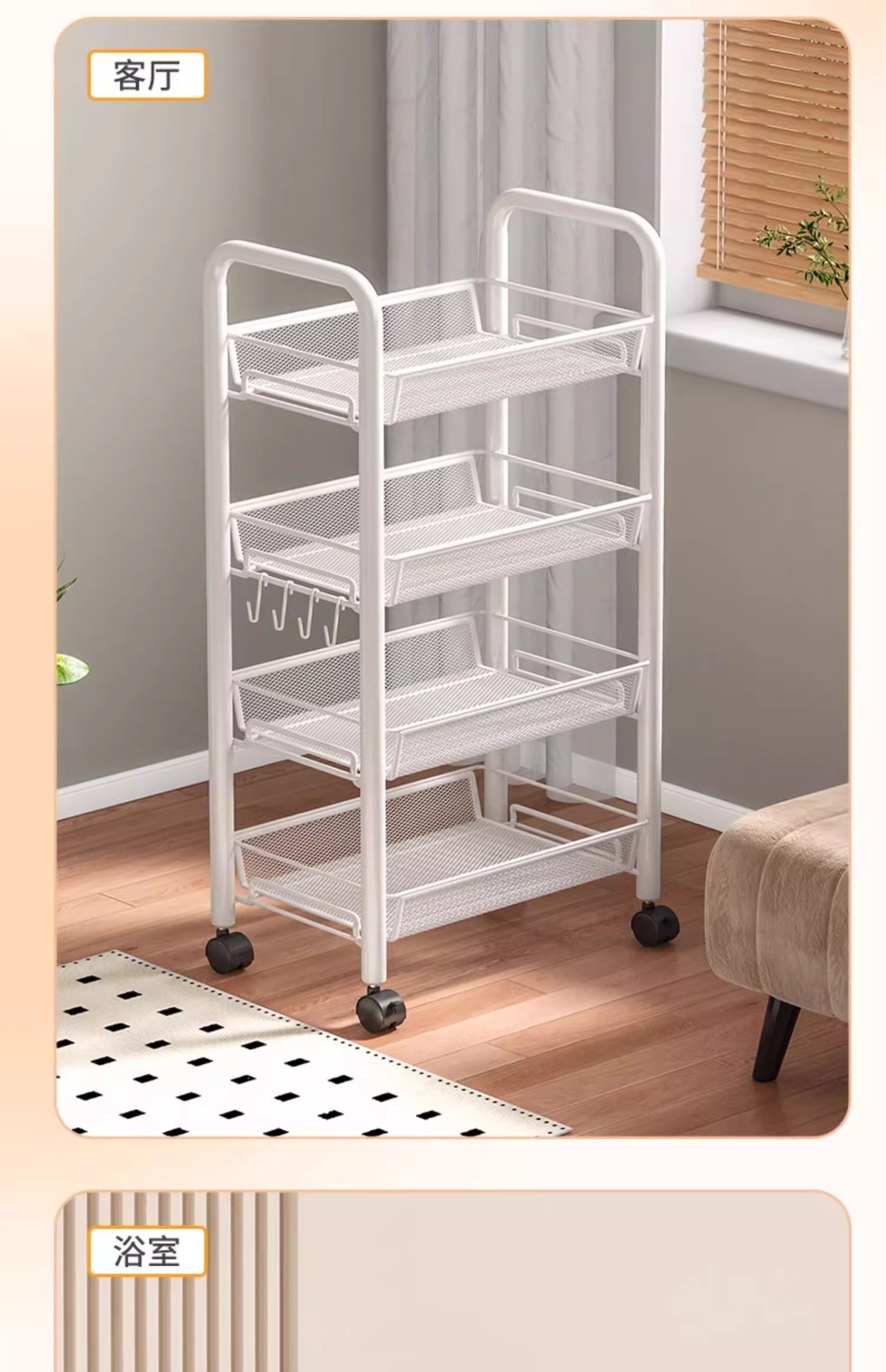 업그레이드된 4단 화이트 [행잉버킷+도르래+후크]