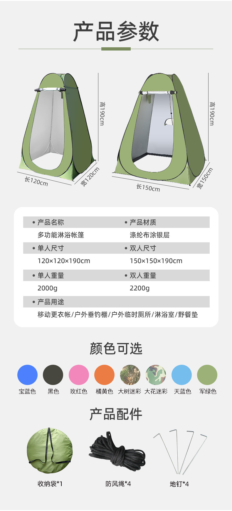 야외용 두꺼운 보온 샤워 비상 화장실 단층 방수 야외 탈의 및 샤워 텐트 빠른 설치 휴대용 캠핑