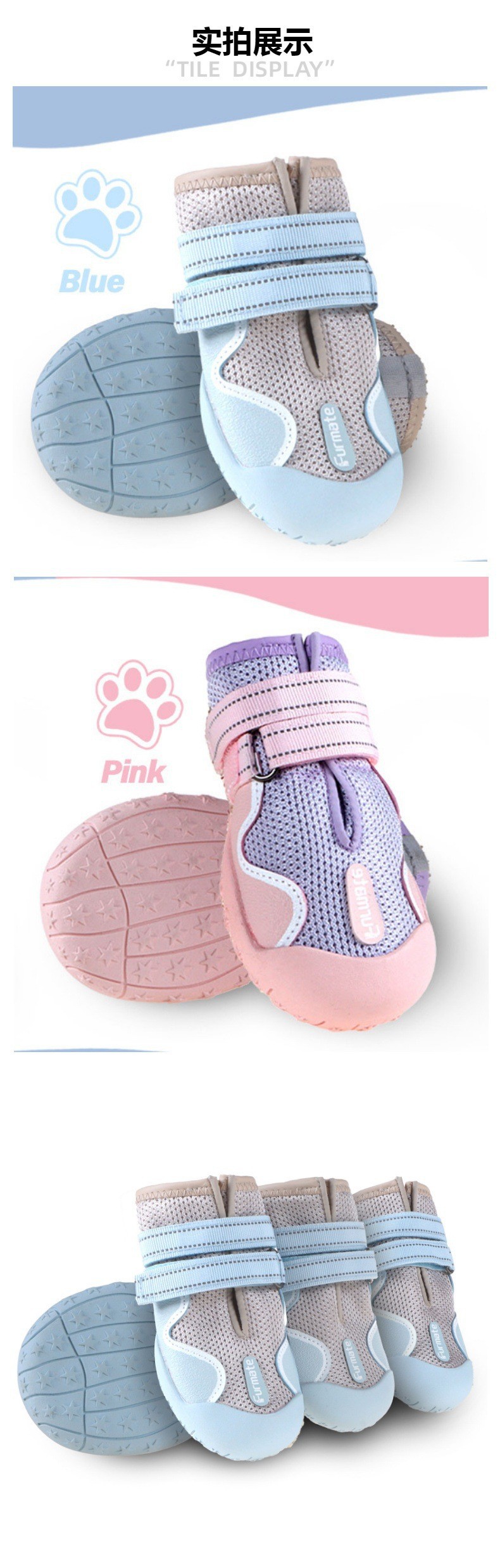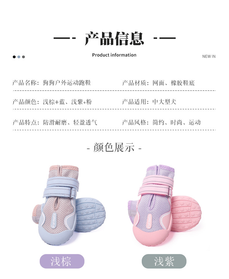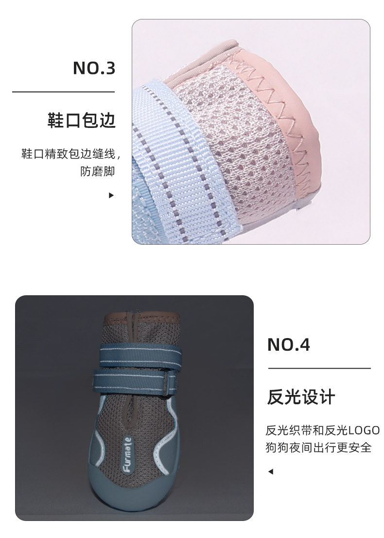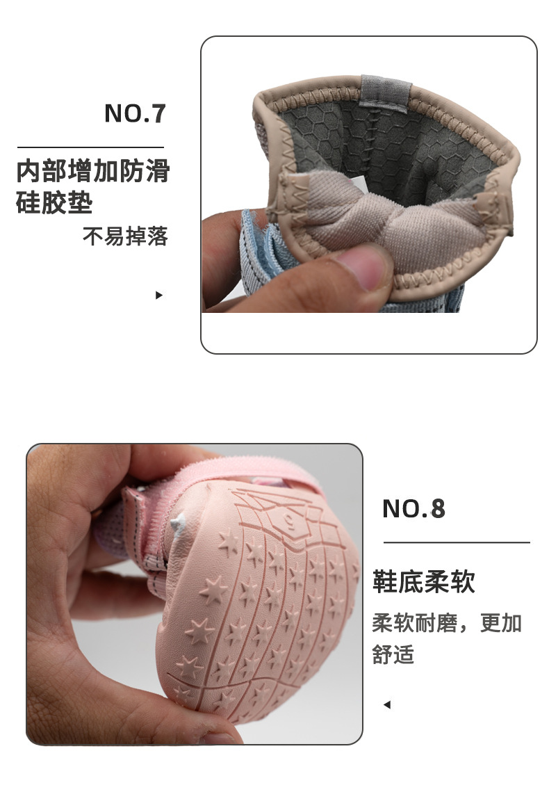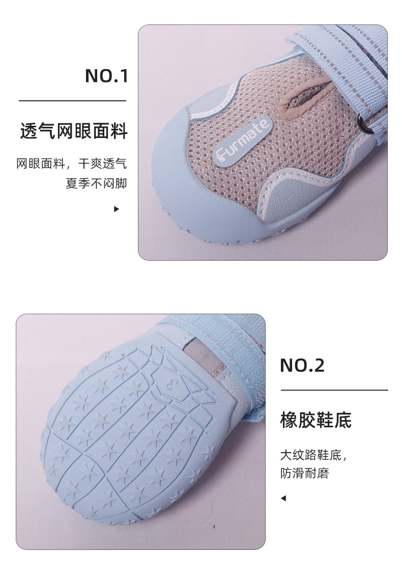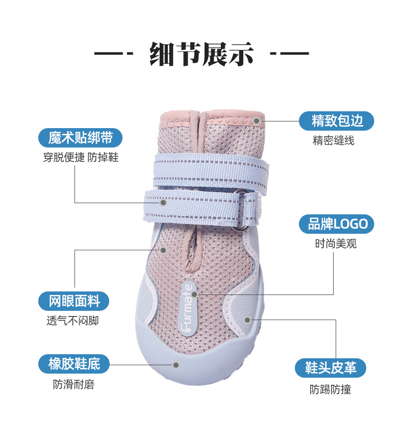 중대형견 신발 해외 도매 메쉬 통기성 강아지 신발 탈락 방지 미끄럼 방지 고무 밑창 야외 신발