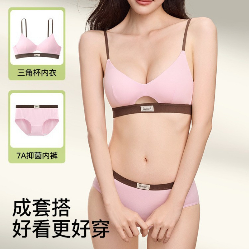 새로운 2025 편안한 라이트 스포츠 속옷 여성의 작은 가슴 푸시 업 프랑스 트라이앵글 컵 트레이드리스 모달 브라 세트