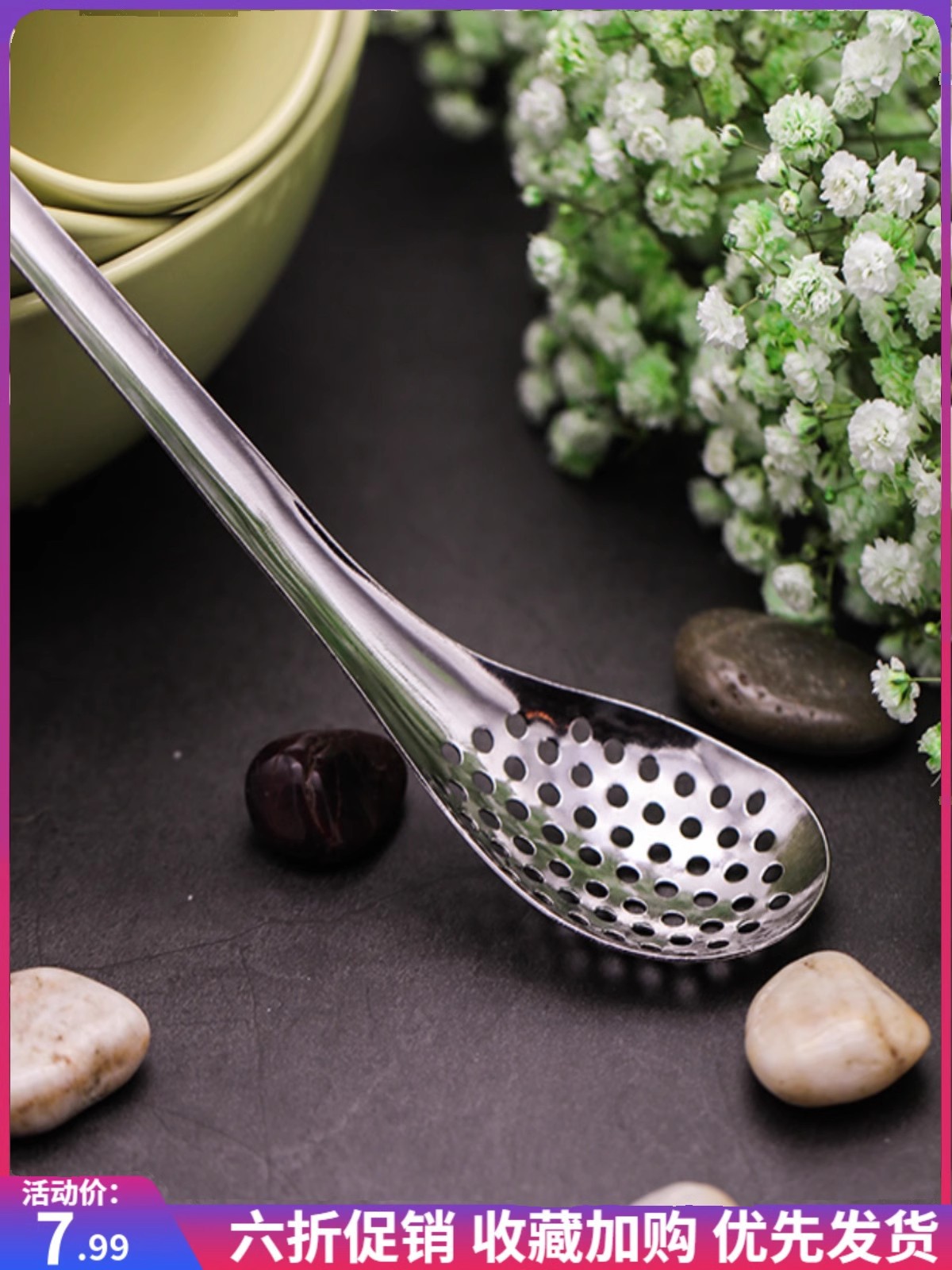 녹 강철 누출 숟가락 필터 숟가락 소쿠리 캐비아 숟가락 냄비 작은 소쿠리 창조적 인 도구 요리 숟가락