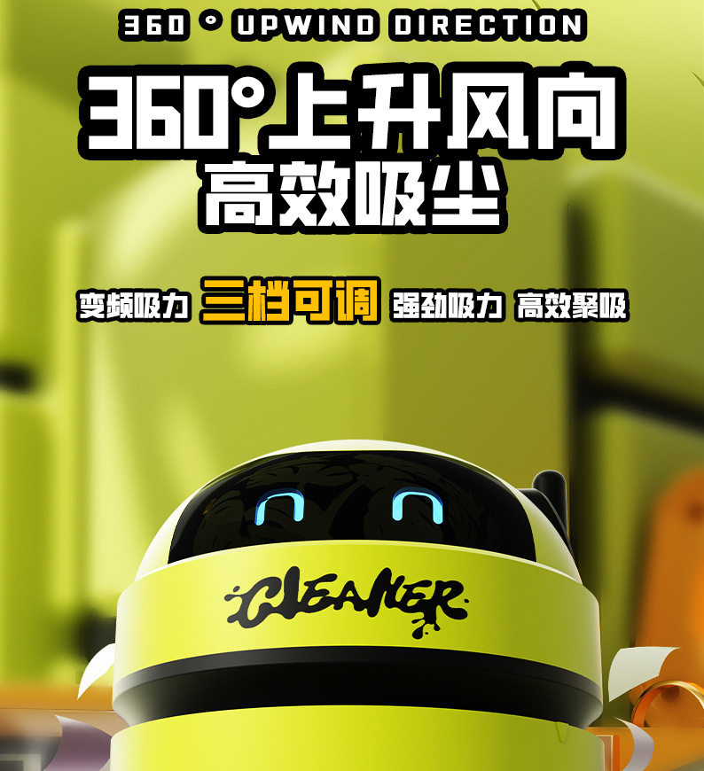 627 데스크탑 진공청소기 [노란색-USB 충전] 라이트 영어 버전