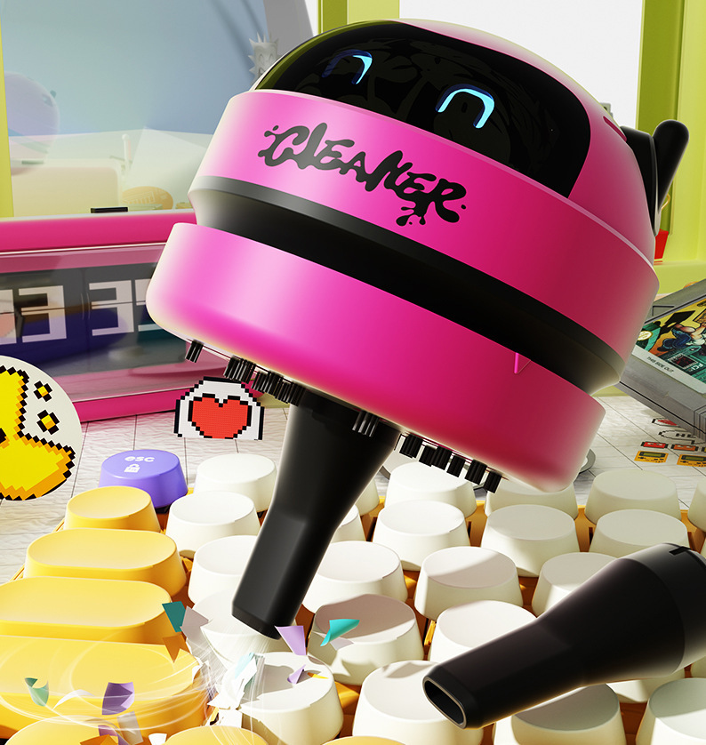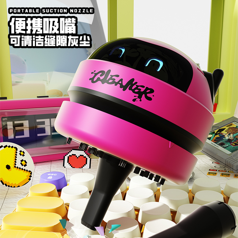 627 데스크탑 진공청소기 [핑크-USB 충전] 라이트 영어 버전