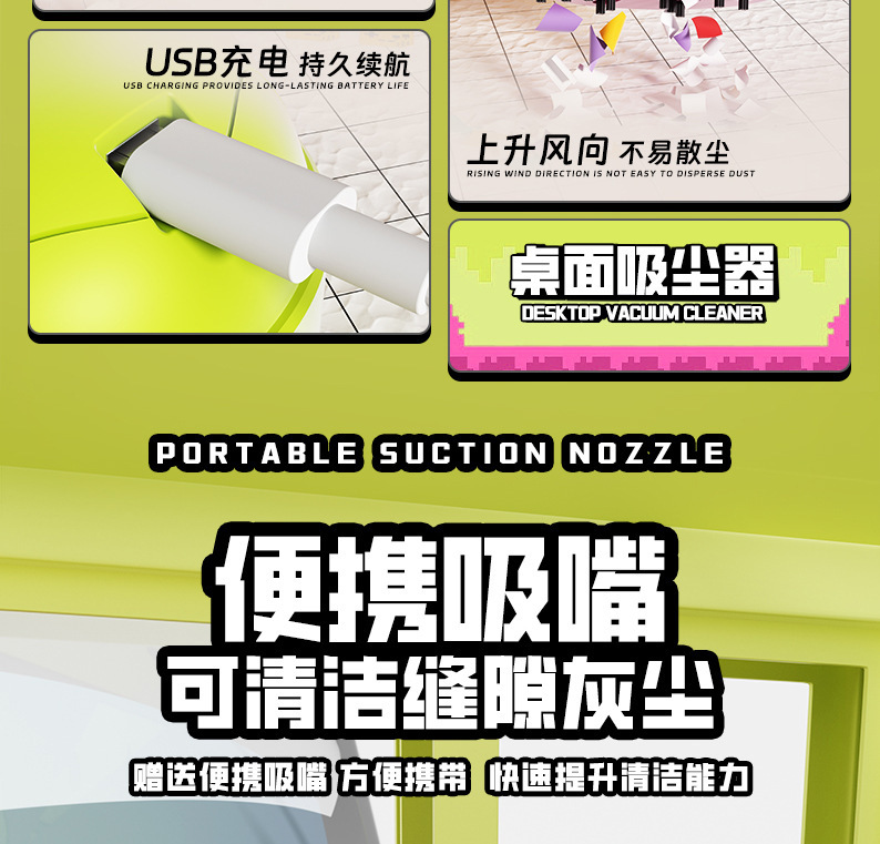 국경 간 데스크탑 진공 청소기 휴대용 강한 진공 초등학교 학생 연필 부스러기 고무 부스러기 USB 충전 청소기
