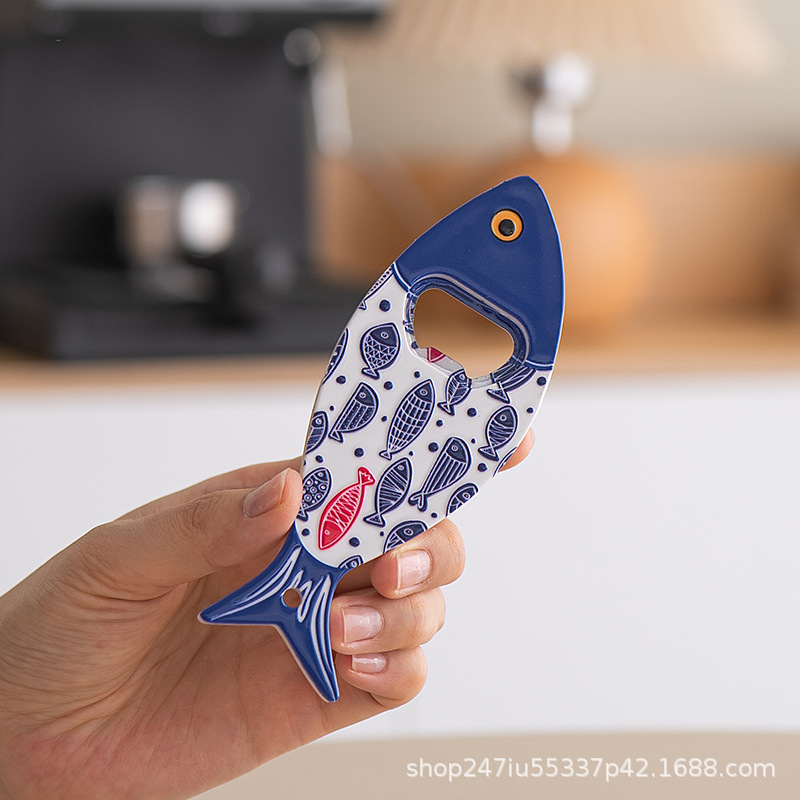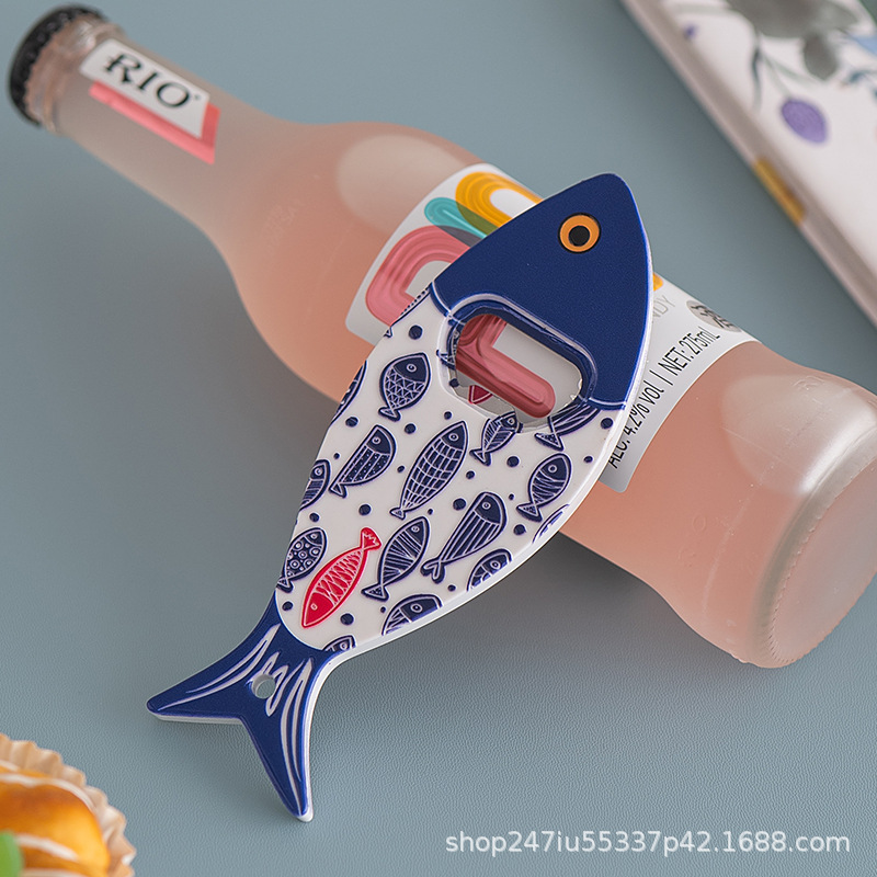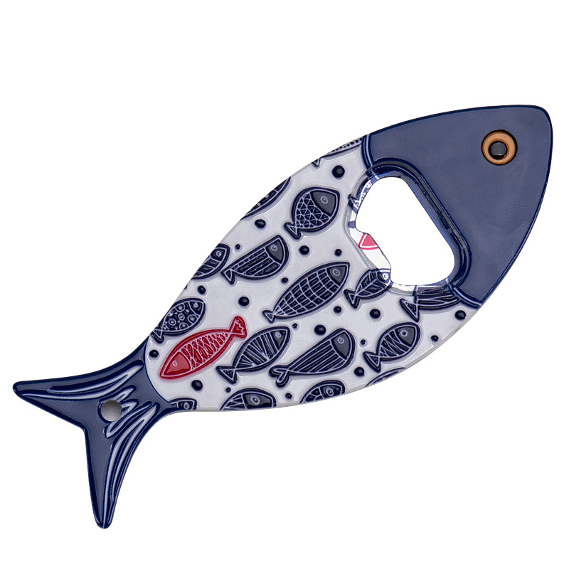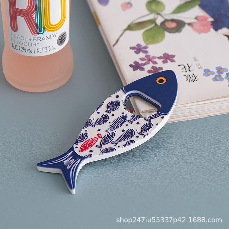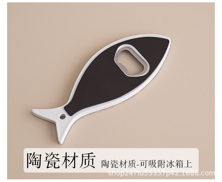 새로운 창조적 인 물고기 병 오프너 냉장고 스티커 세라믹 소재 구호 질감 청동 가공 3 차원 강한 냉장고 스티커