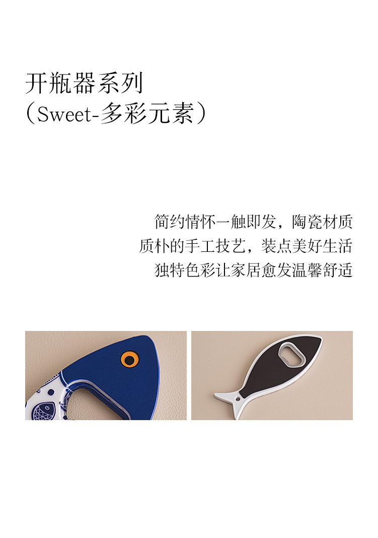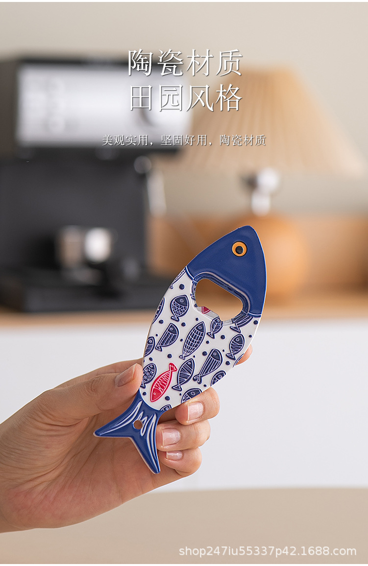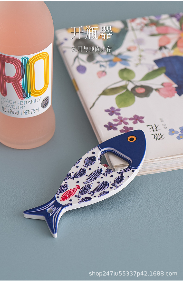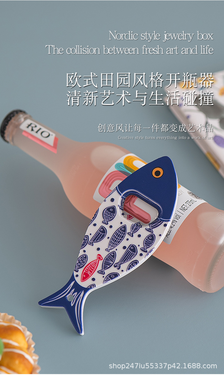 새로운 창조적 인 물고기 병 오프너 냉장고 스티커 세라믹 소재 구호 질감 청동 가공 3 차원 강한 냉장고 스티커