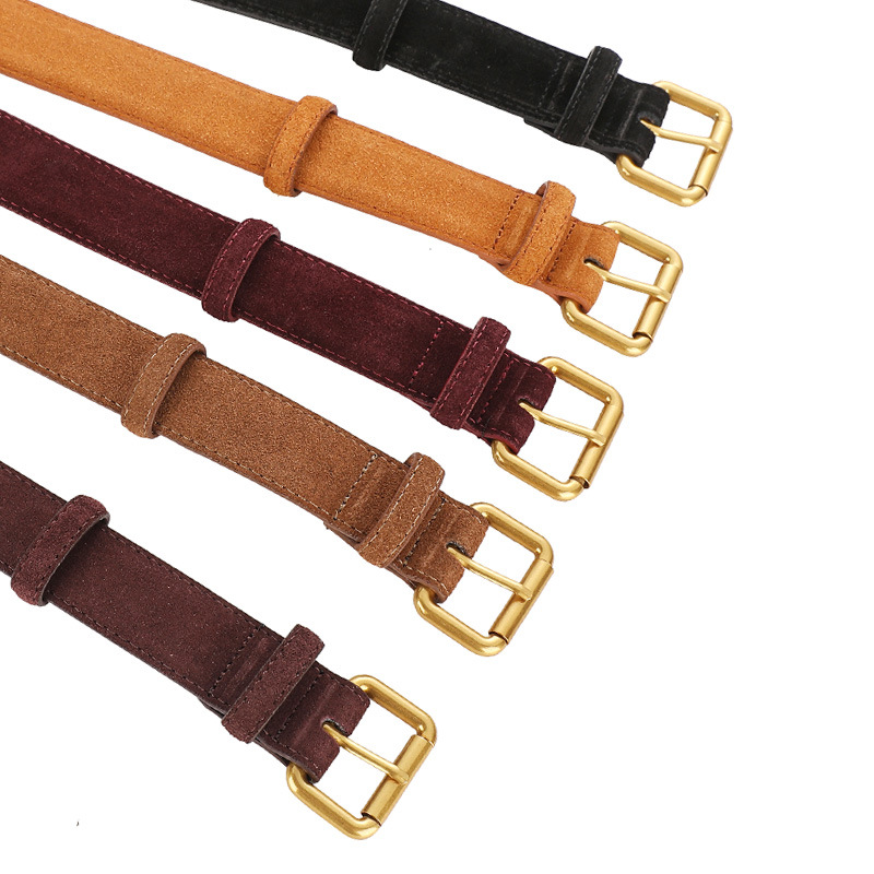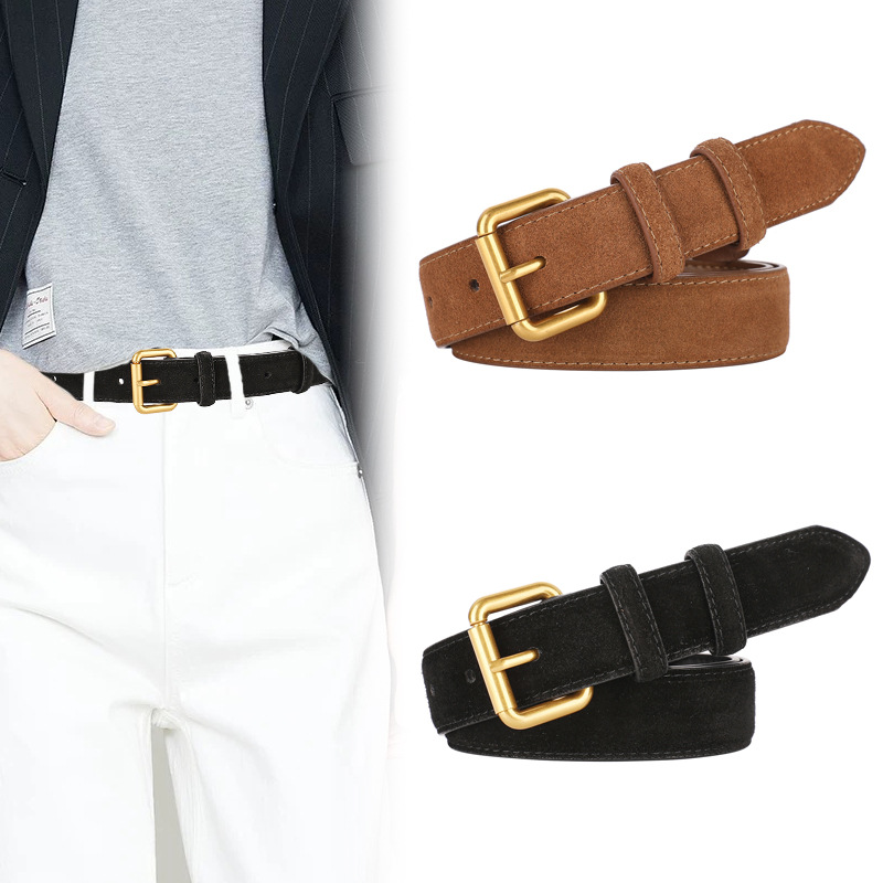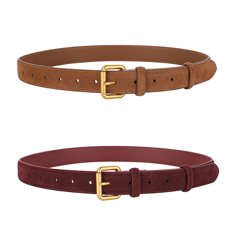 청바지 벨트 여성 Maillard 다크 브라운 Cowhide 벨트 틈새 디자인 부티크 장식 바지 벨트 패션 액세서리