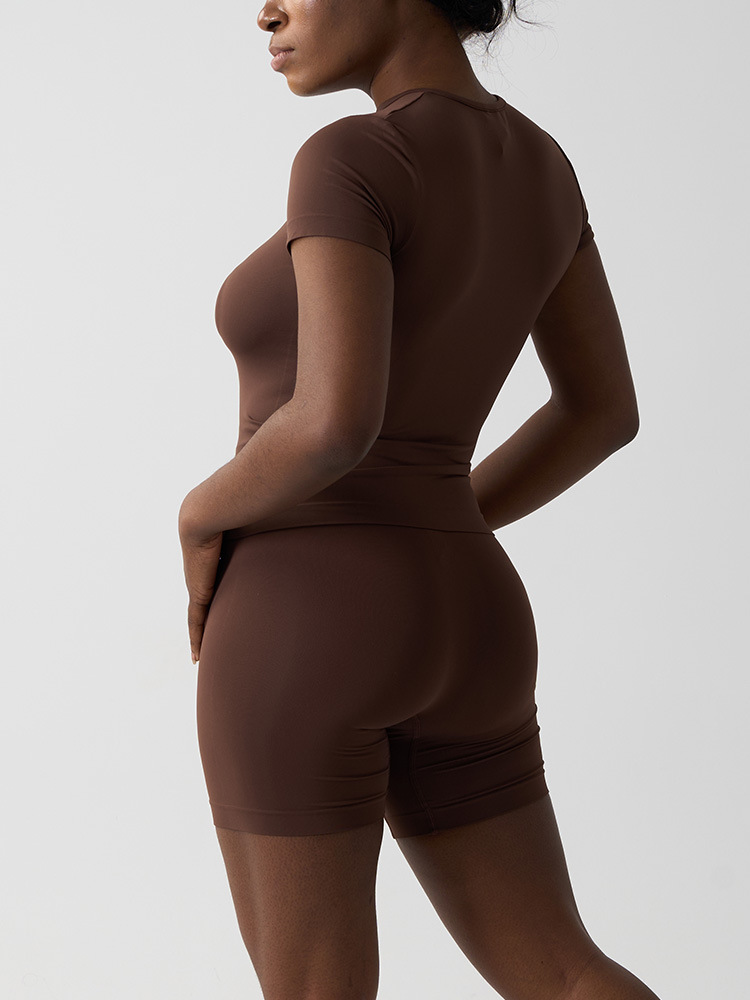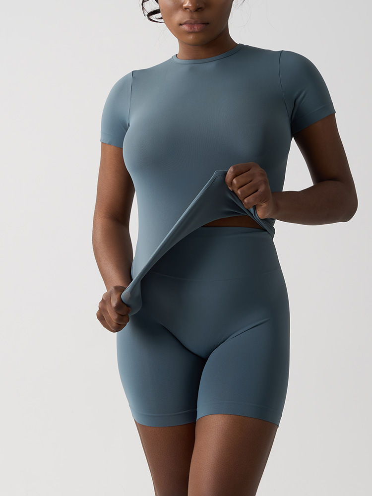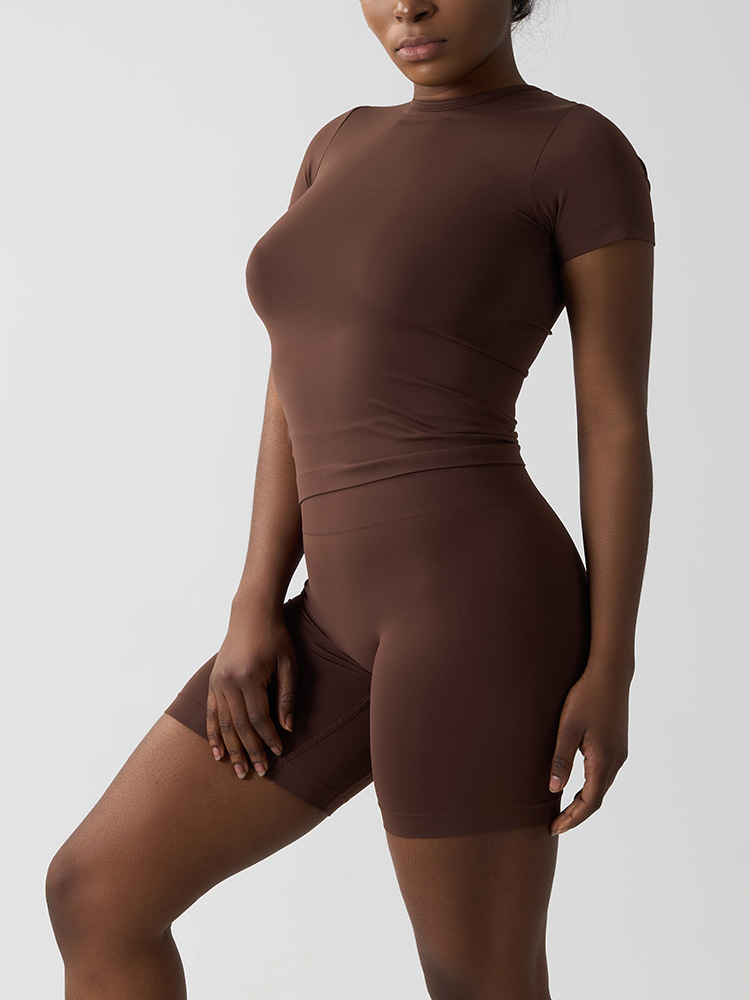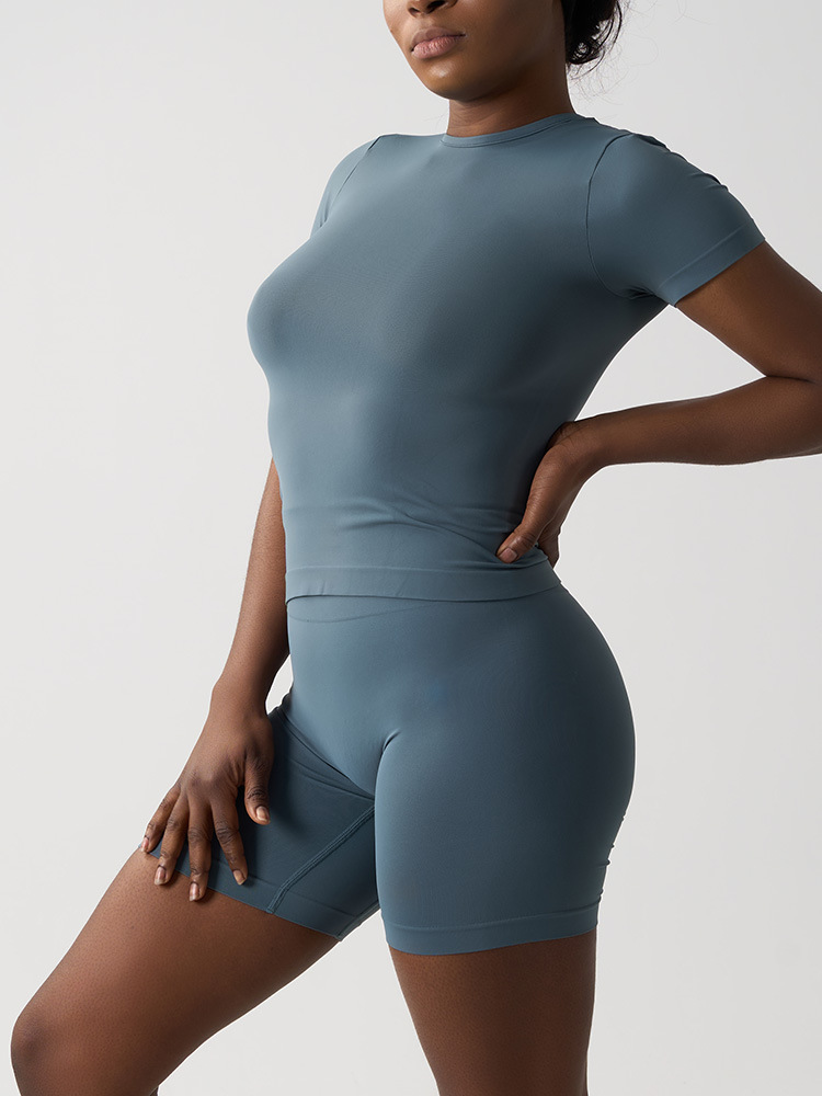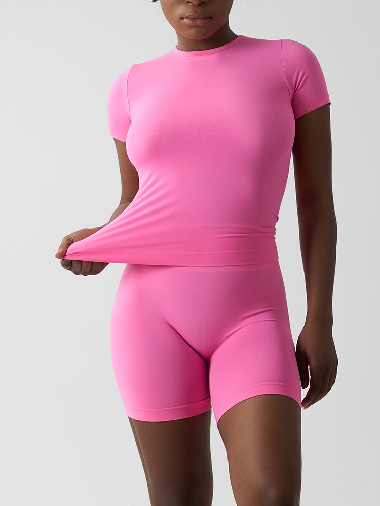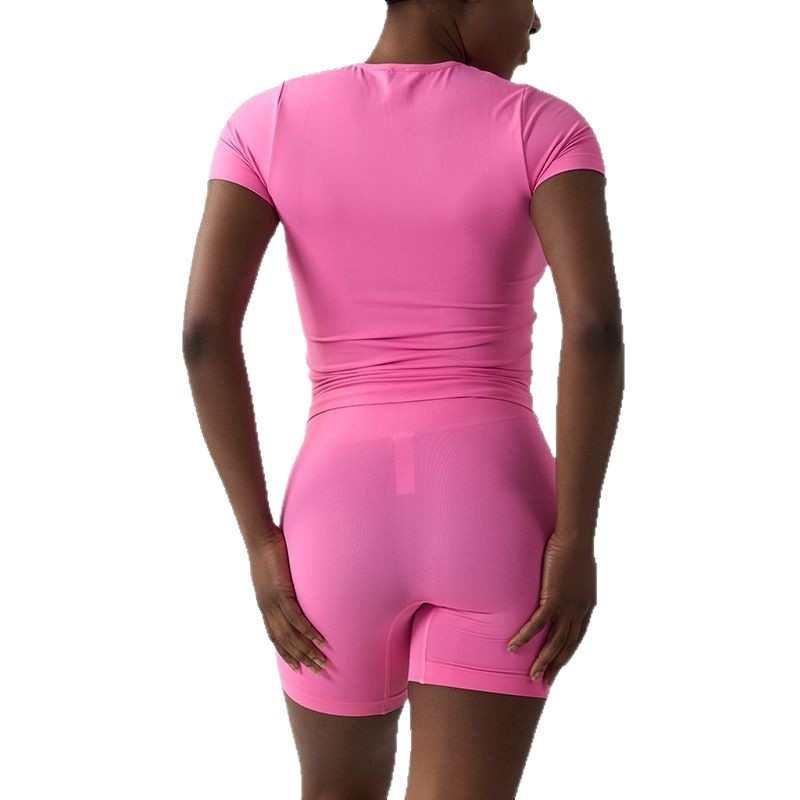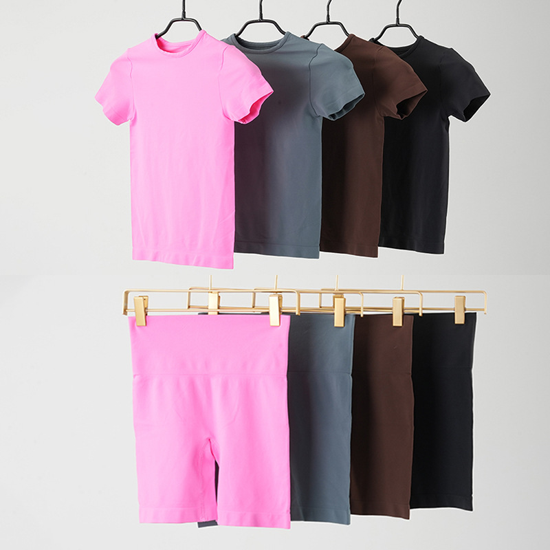 국경 간 원활한 여성 클라우드 감각 타이트핏 반팔 요가 세트 세트 캐주얼 빠른 건조 피트니스 세트 달리기 스포츠 세트