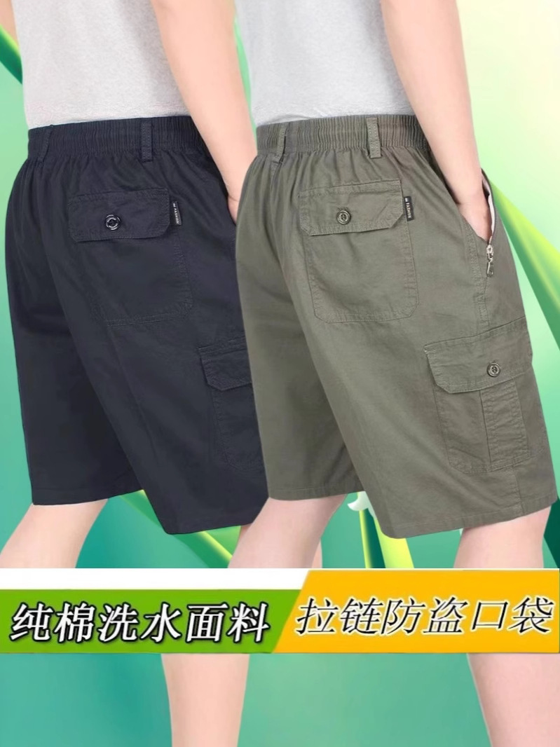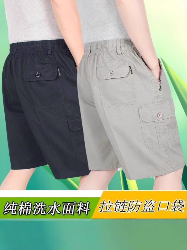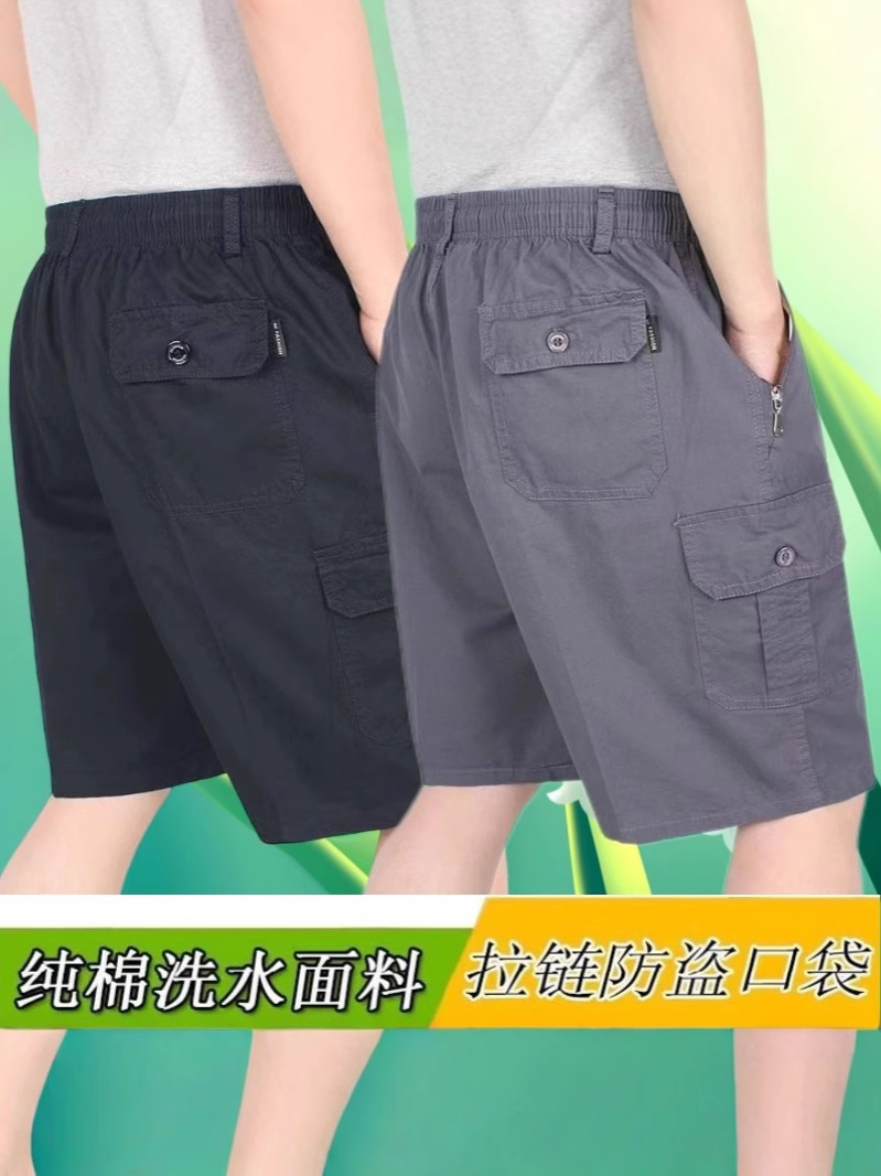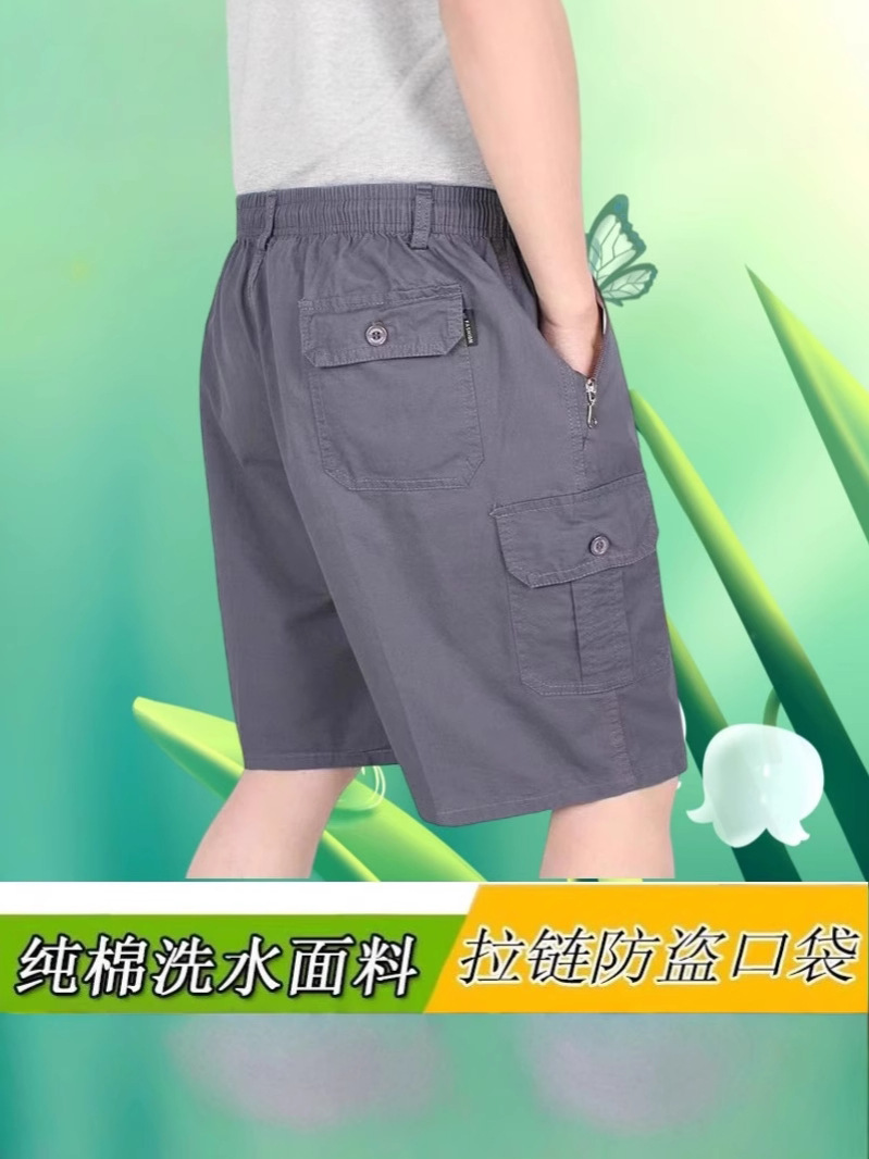 여름 중년 남성 반바지 순수면 느슨한 플러스 사이즈 아빠를위한 캐주얼 대형 반바지 중년 및 노인 얇은 바지