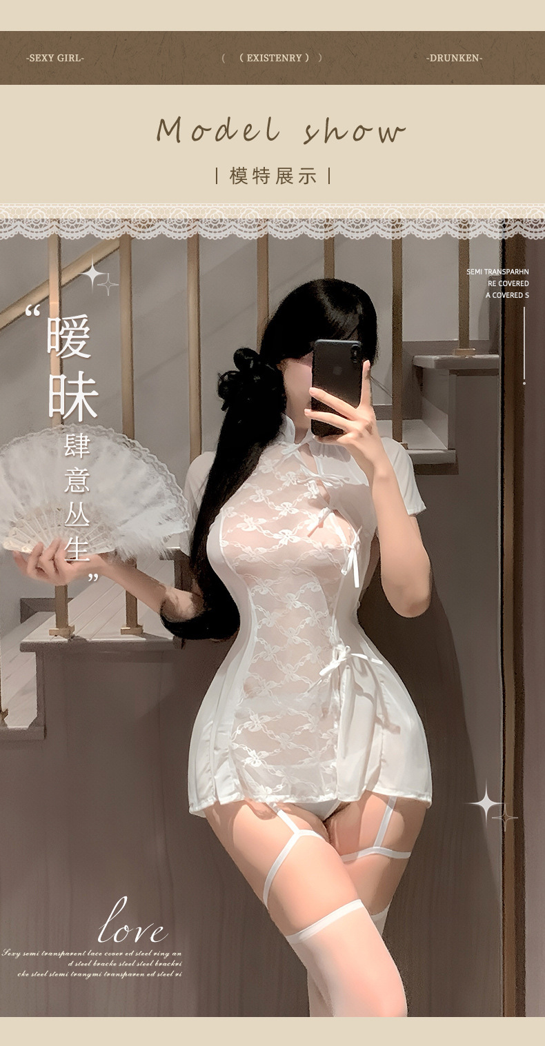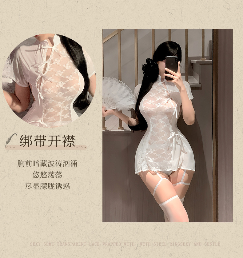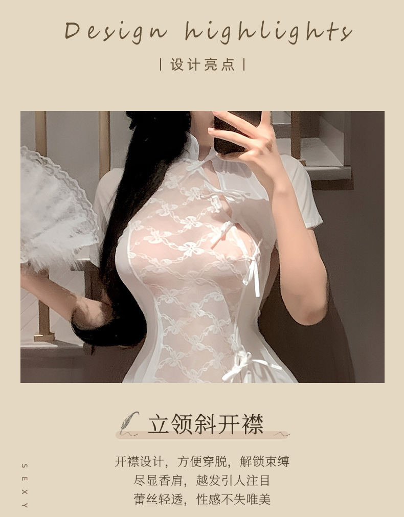 멋진 새로운 섹시한 속옷 중국 스타일 cheongsam 레이스 여성 슬릿 기계 복고풍 원피스 관점 잠옷