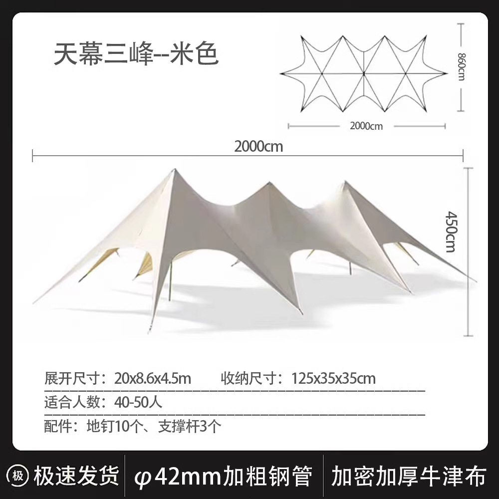 험프 캐노피 야외 캠핑 텐트 대형 캠프 완충 산 선 스크린 비방 단일 봉우리 더블 봉우리 3 개 각성