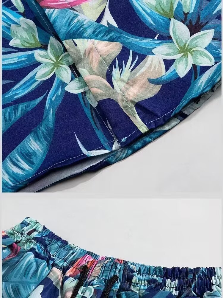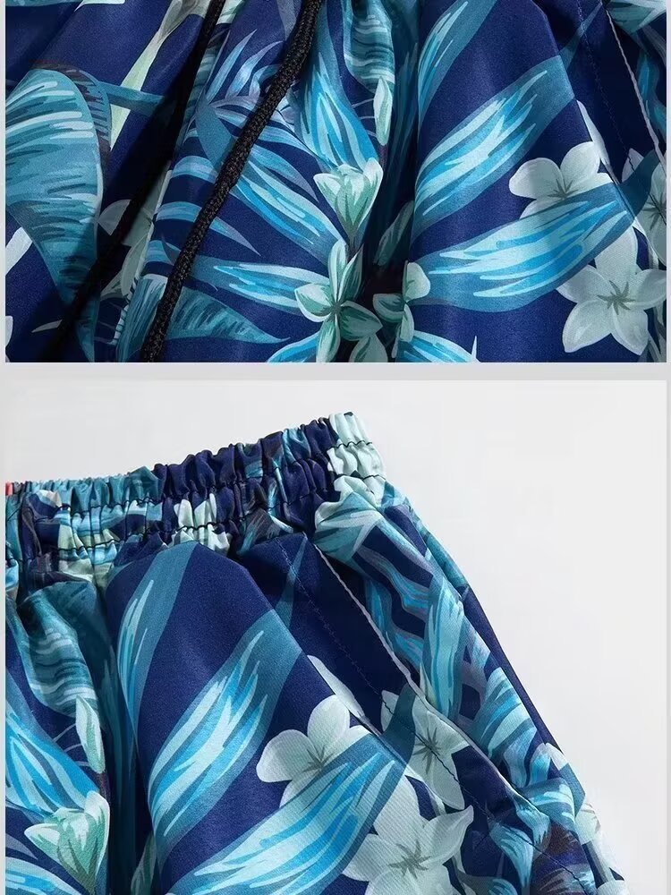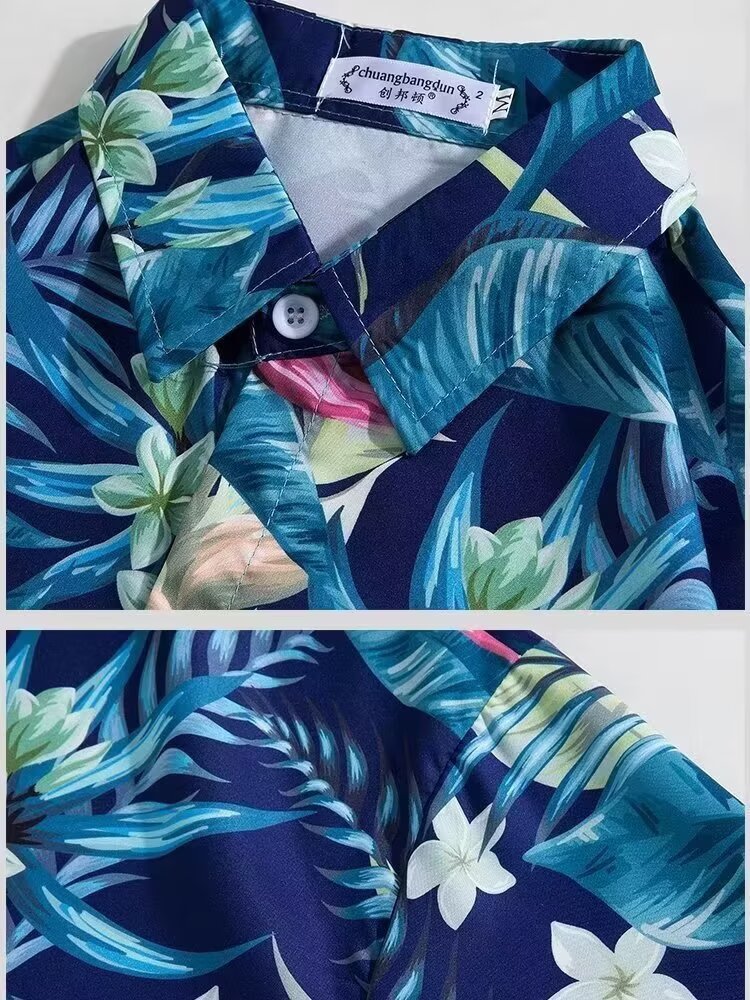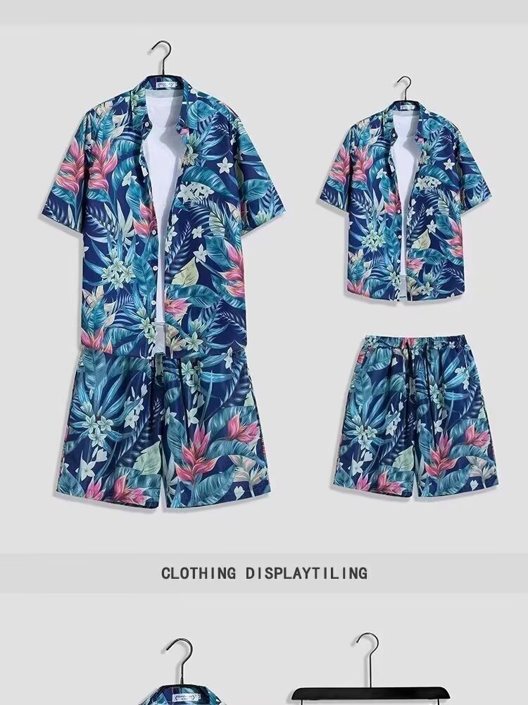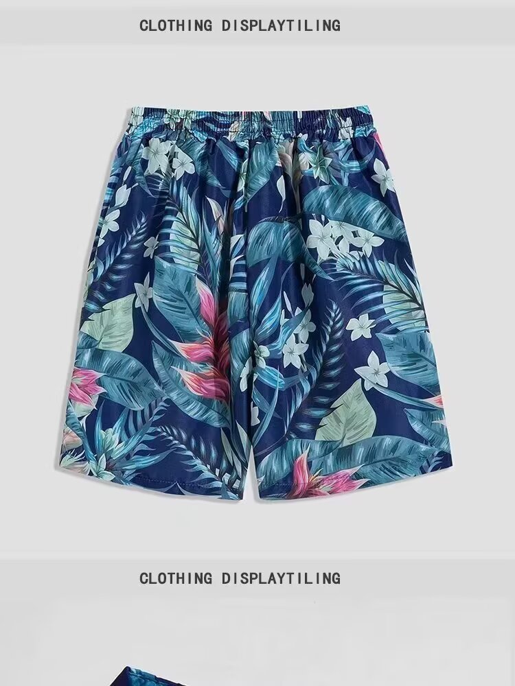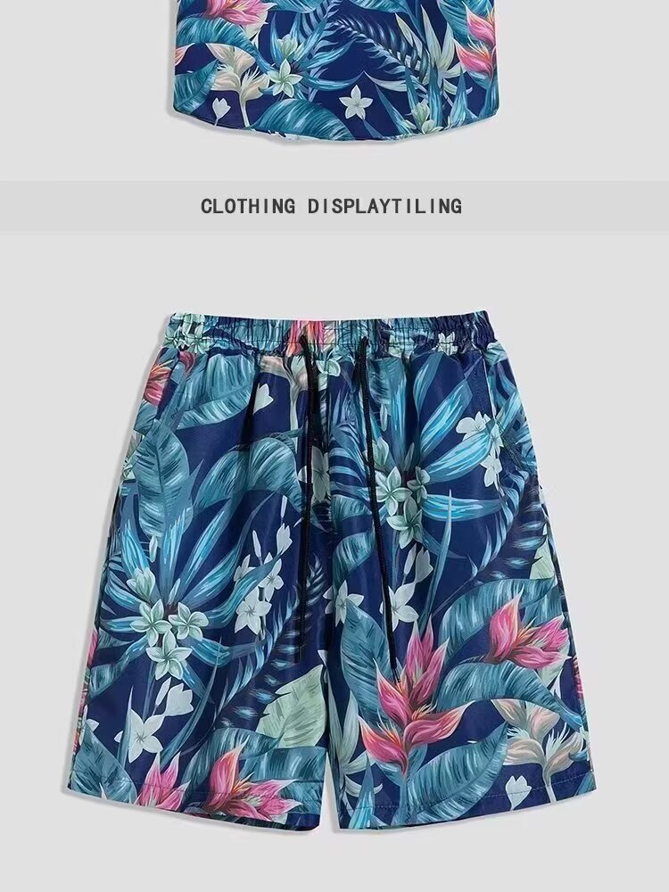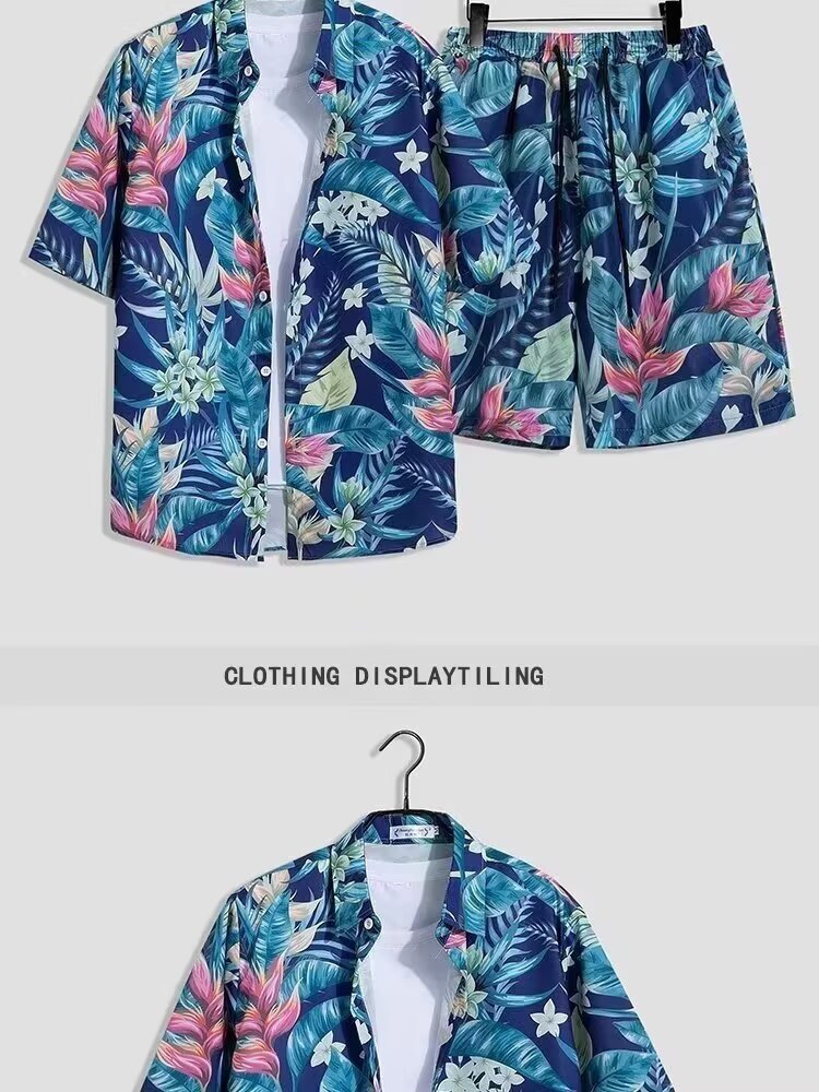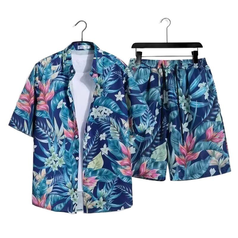 해변 꽃 셔츠 남자 하와이 반팔 느슨한 여름 얇은 유행 캐주얼 남성 세트 투피스 셔츠