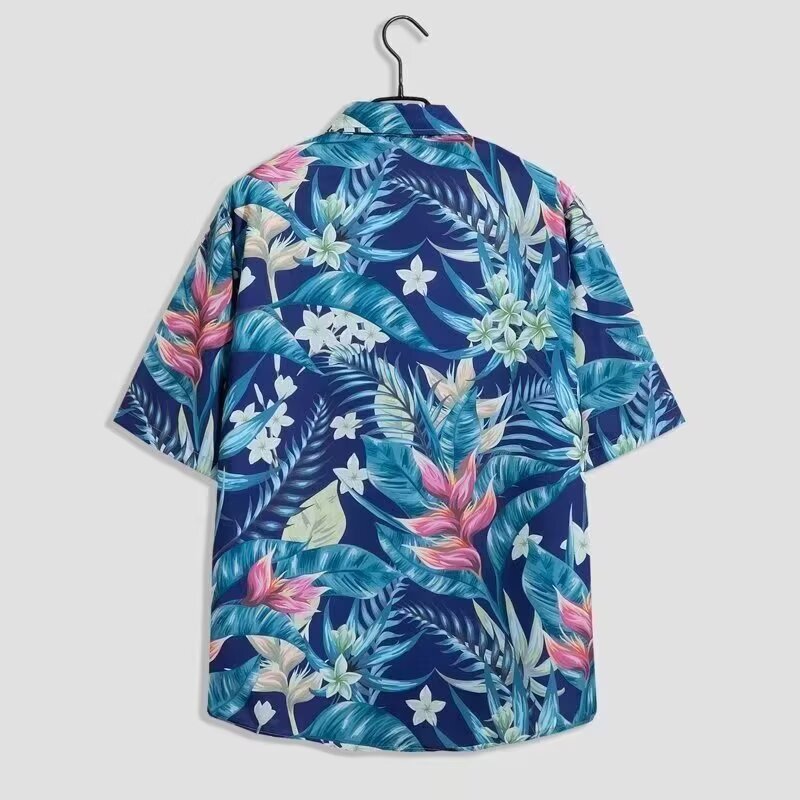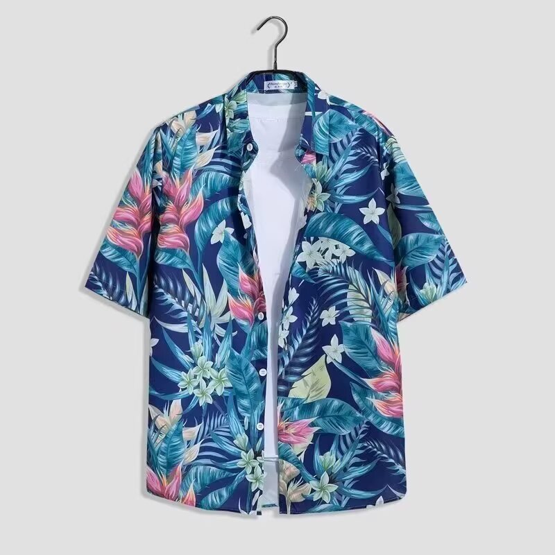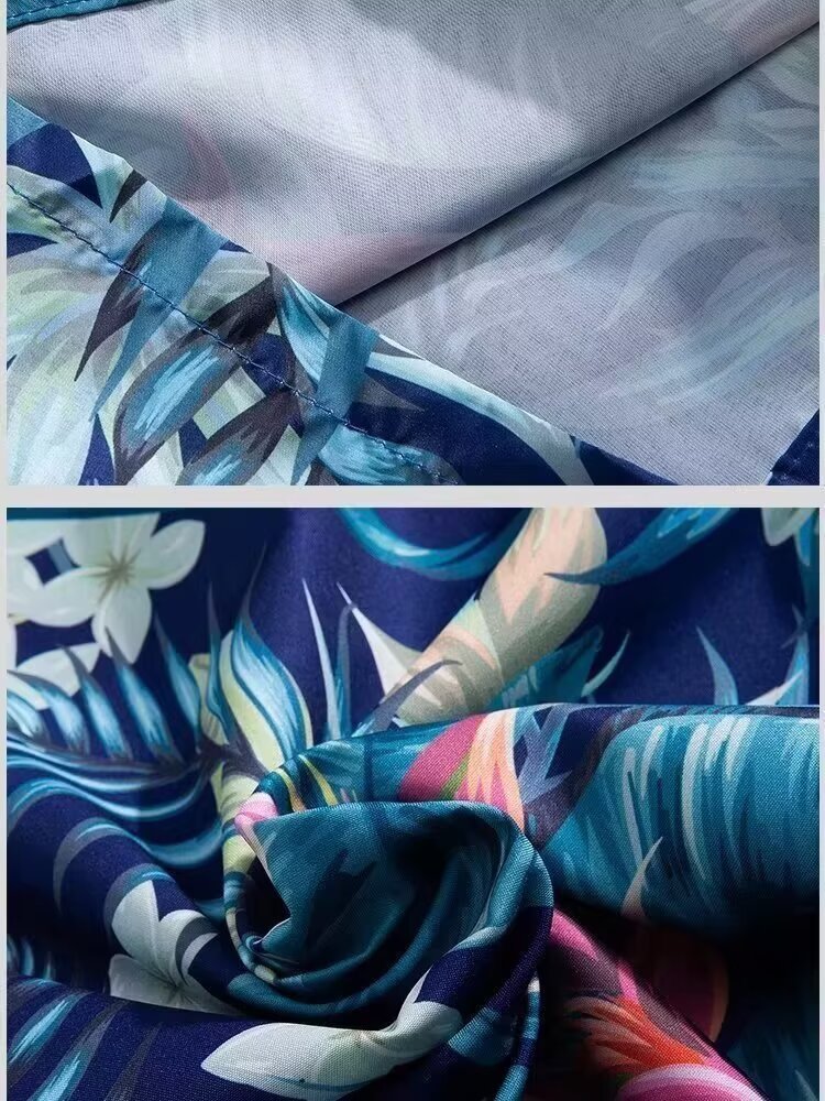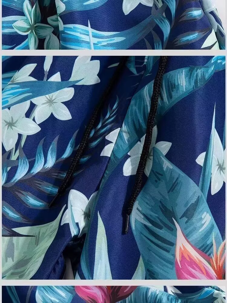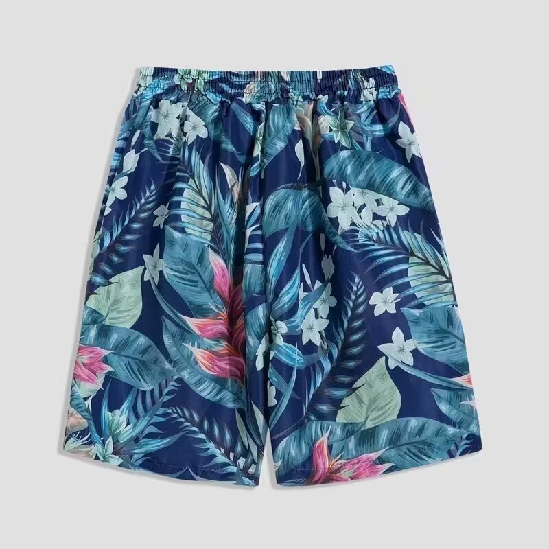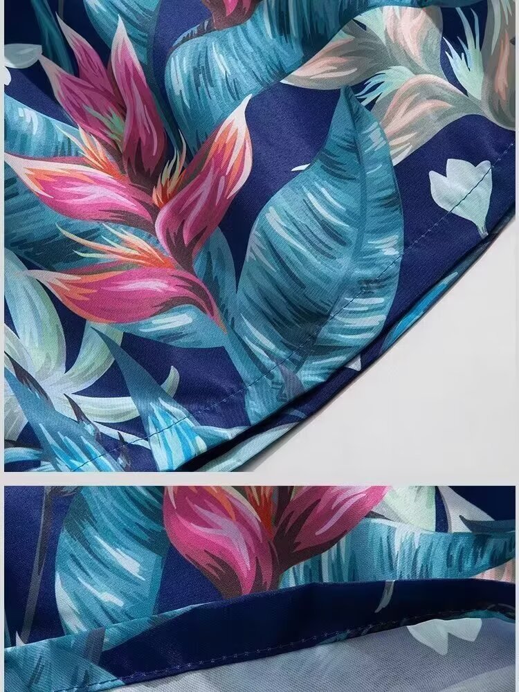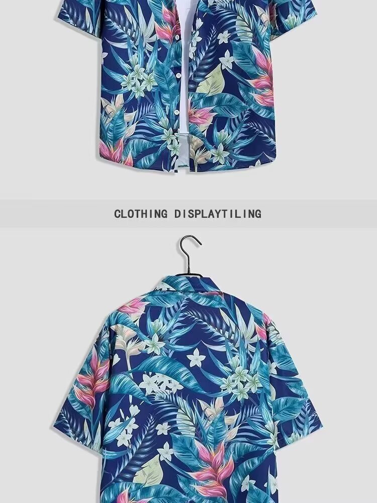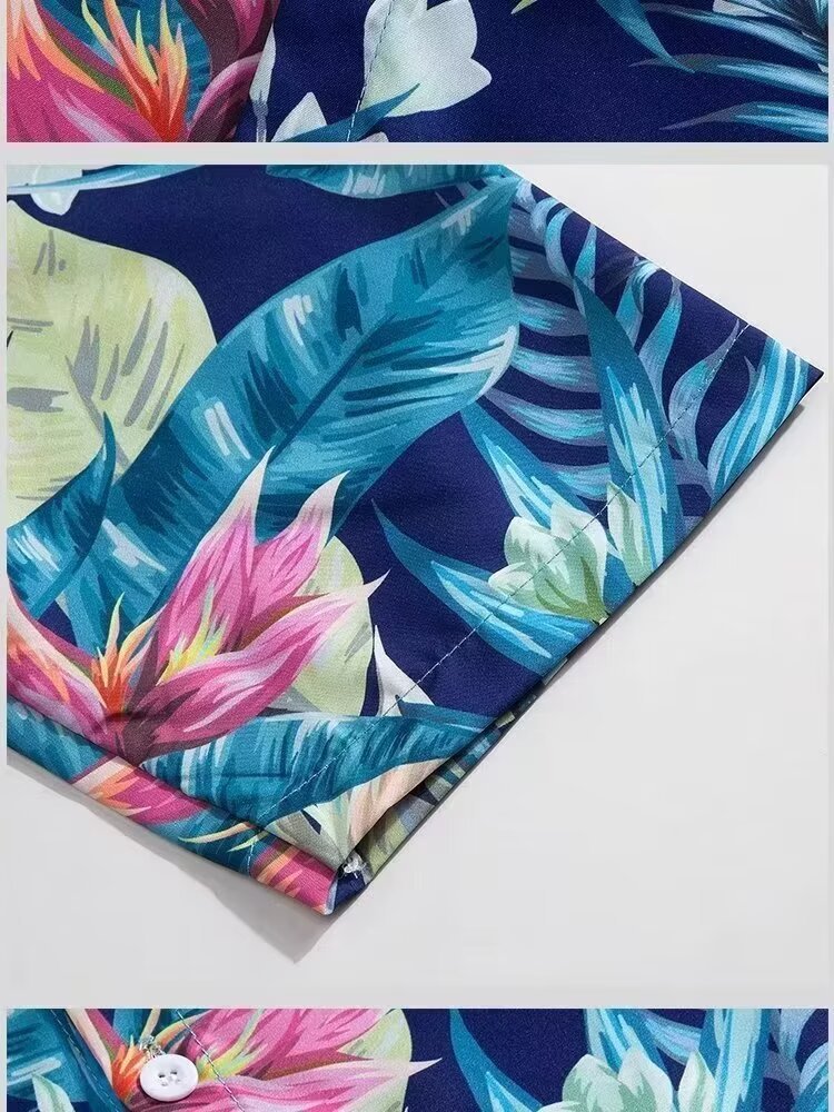해변 꽃 셔츠 남자 하와이 반팔 느슨한 여름 얇은 유행 캐주얼 남성 세트 투피스 셔츠