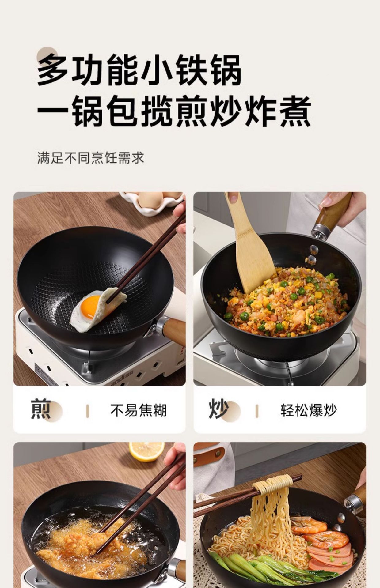 미니 작은 아이언 팬 가정용 야외 작은 워크 유도 쿠커 팬 비 스틱 팬 1 인 식품 작은 프라이팬 코팅되지 않은 팬