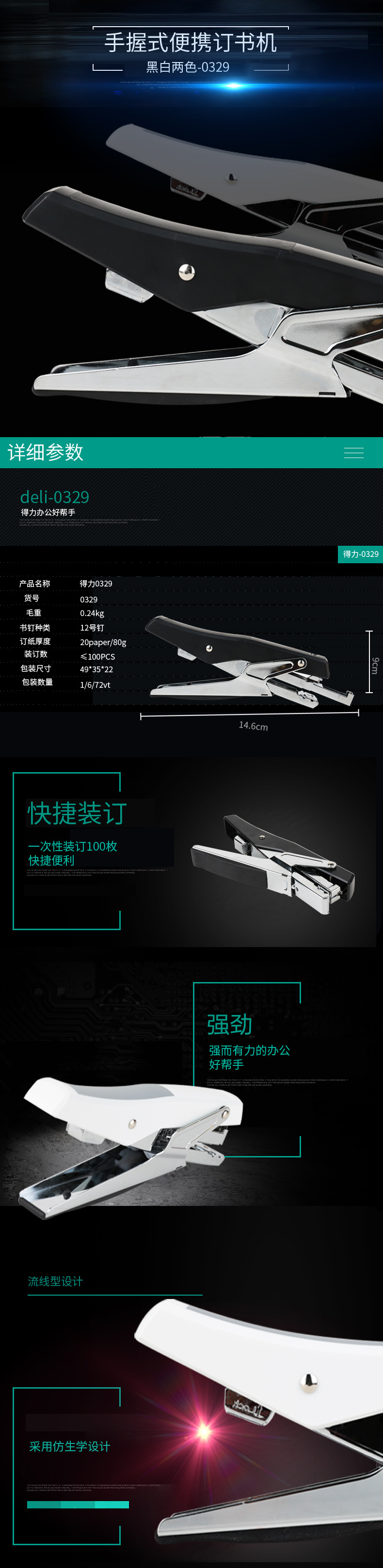 【도매】델리 핸드헬드 스테이플러 0329 스테이플러 12개 일반 스테이플 문구 사무용품 노동 절약